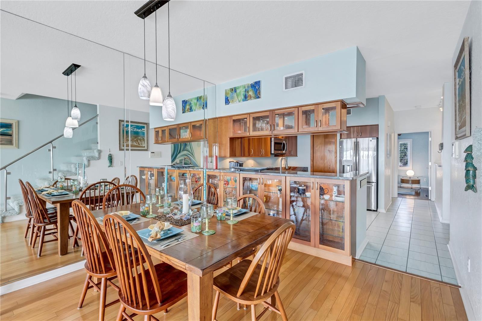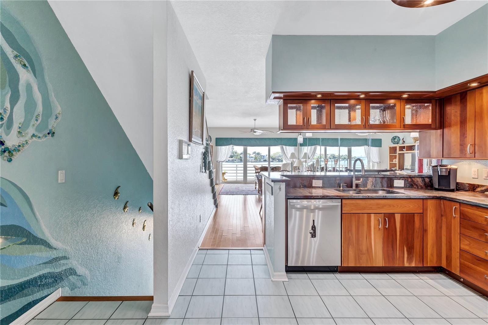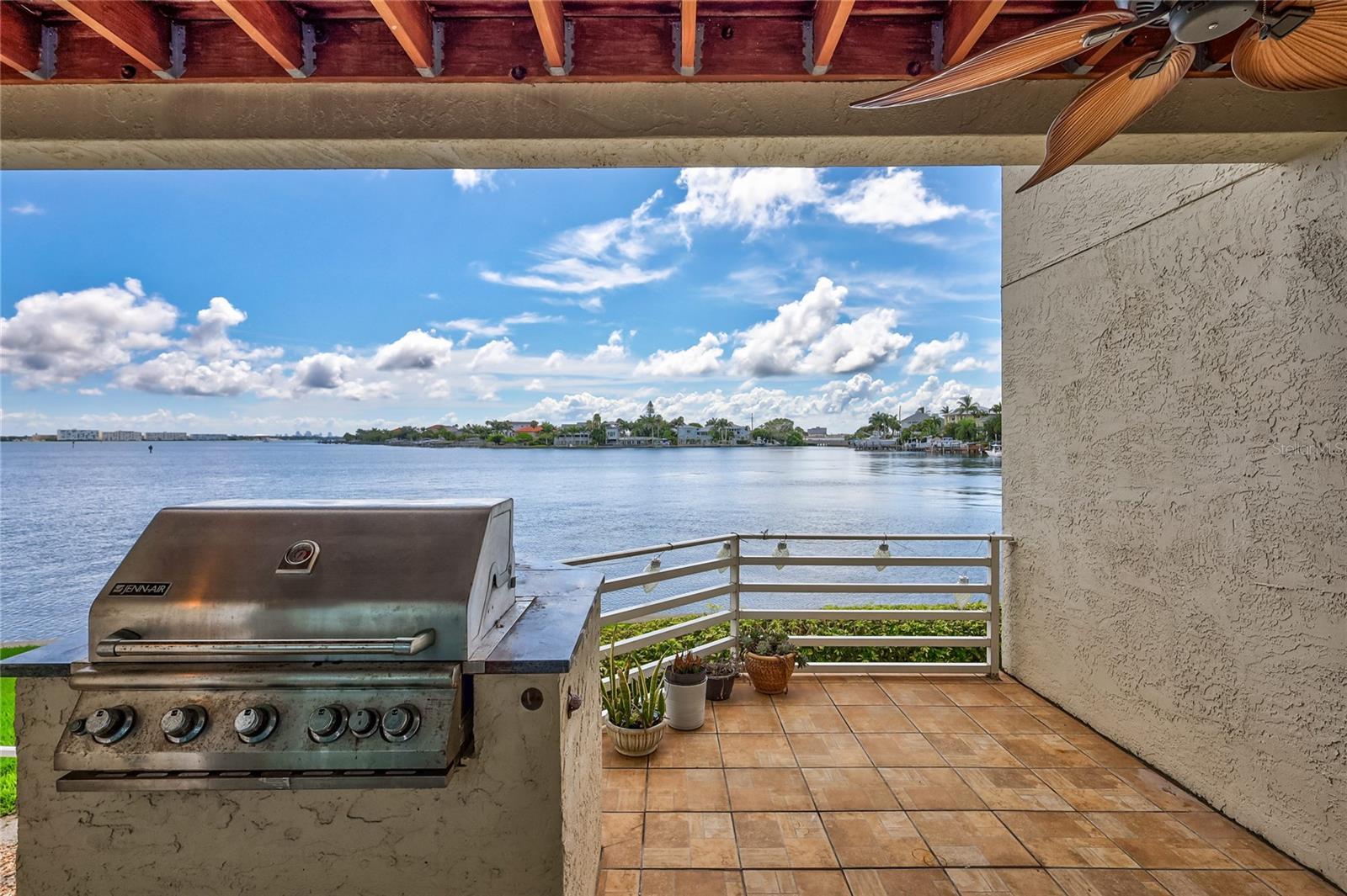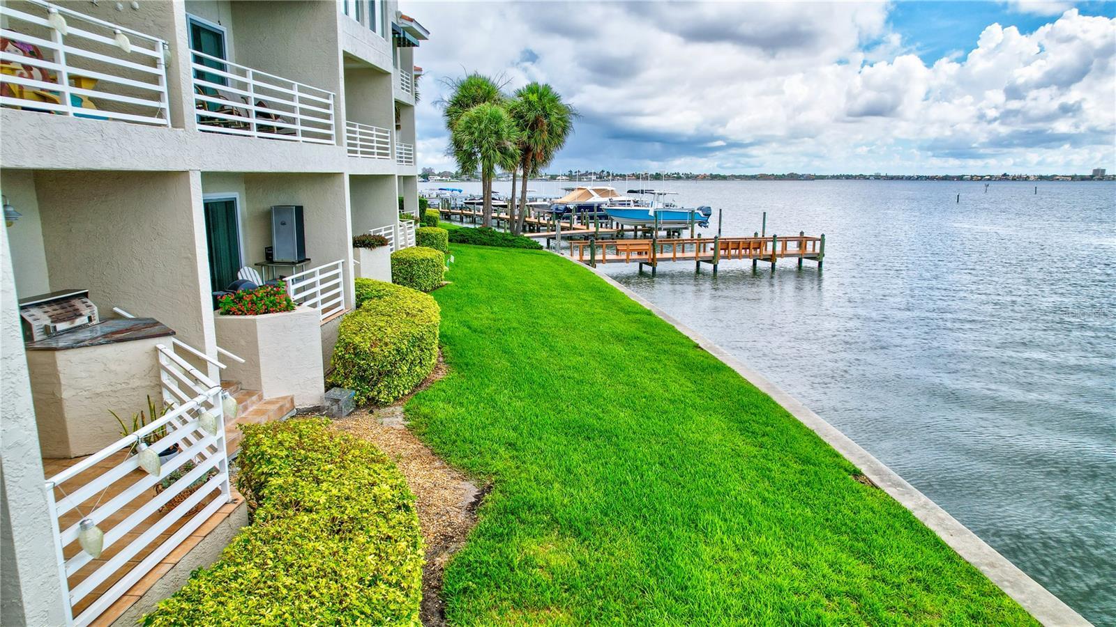 INCREDIBLE VALUE IN THE BEST TOWNHOME COMMUNITY ON THE BEACH - HIGH AND DRY, NO FLOODING! Stunning, executive waterfront townhome nestled in the serene, private enclave of St. Pete Beach. Offering picturesque open water views of Boca Ciega Bay and a relaxed coastal atmosphere, this residence combines coastal charm with modern elegance. The meticulously updated interior includes four bedrooms, four baths, hurricane impact windows and sliders, and luxuriously remodeled bathrooms. The kitchen boasts glass door and solid maple cabinets, stainless steel appliances, and ample storage. Enjoy breathtaking open water views from private balconies on all levels and an extended patio perfect for watching dolphins and manatees glide by. The primary suite features a dramatic vaulted ceiling, open water views with its own private balcony, and two large walk-in closets. The outdoor living is enhanced with a built-in gas barbecue grill set in a stone countertop on the large, extended, first-floor tile patio. This home has many unique details and finishes with modern conveniences including plantation shutters, custom window treatments, an updated HVAC system (2020), a newer hot water heater (2020), a new tile roof (2016), portable generator, and a whole house water filtration and softener system. The one car garage boasts even more storage and a newer epoxy painted floor- use it for parking or a workshop and still be able to park two cars in the driveway. Located in the prestigious Mirabella Estates community, this home is just a short walk to the beach. Residents enjoy amenities such as a heated pool, day dock, kayak launch, fishing pier, and guest parking spots. NO MILESTONE INSPECTION needed, and the very LOA HOA fee covers all landscaping, road care, pool maintenance, recycling, trash pickup, water, sprinklers, high-speed internet, and premium cable TV. Mirabella is also pet-friendly, allowing up to two pets with no weight restrictions. This home can be rented for 3 month minimums. Don't miss this rare opportunity to own a piece of paradise in St. Pete Beach with low HOA fees, luxury updates, and splendid water views. Seller financing is available.