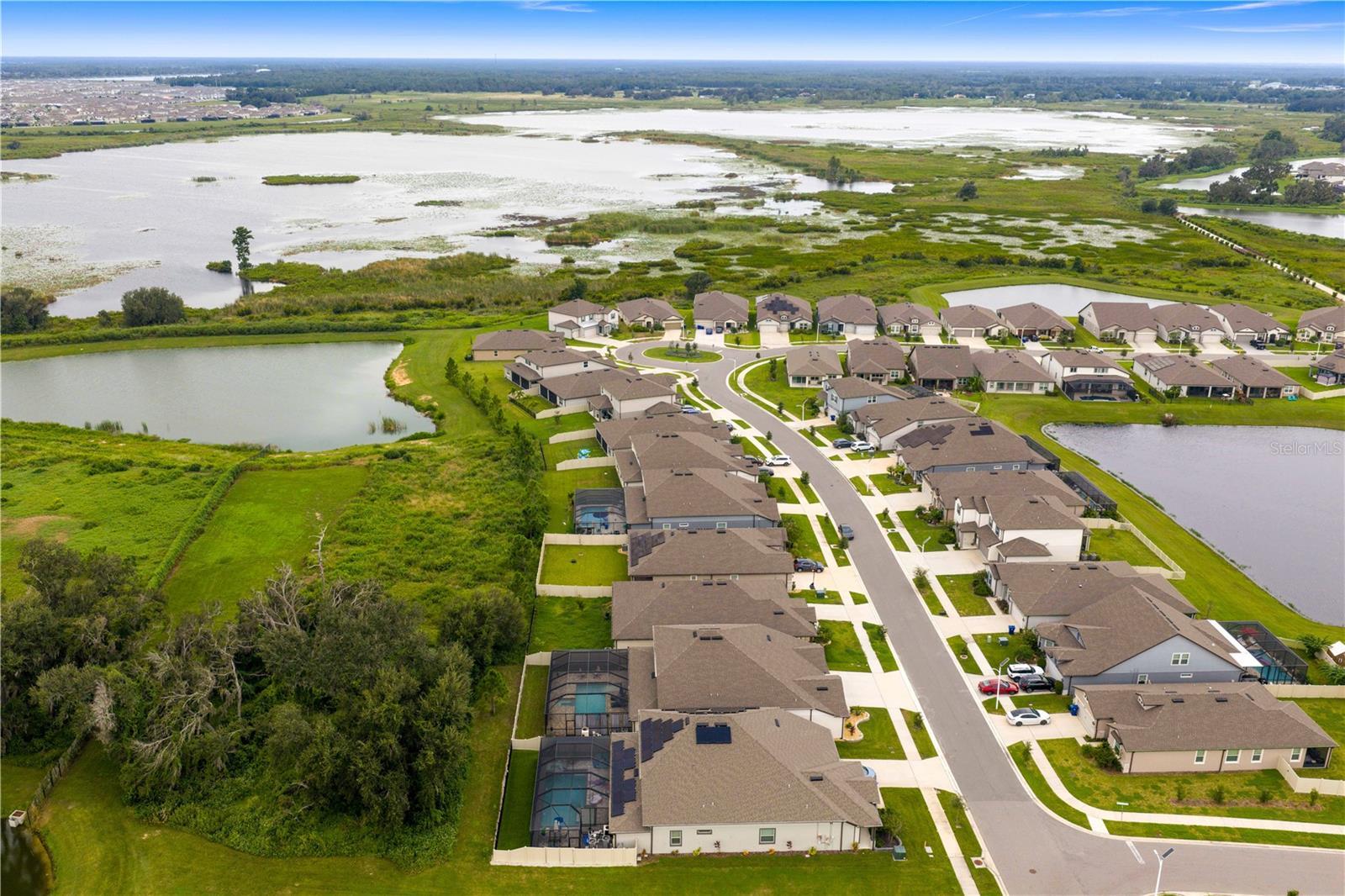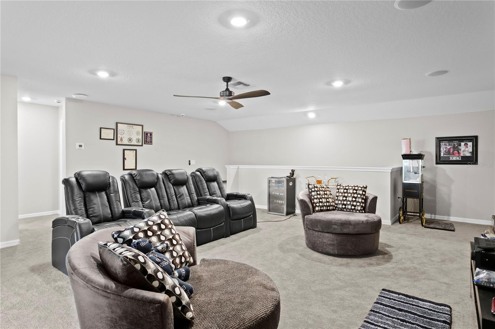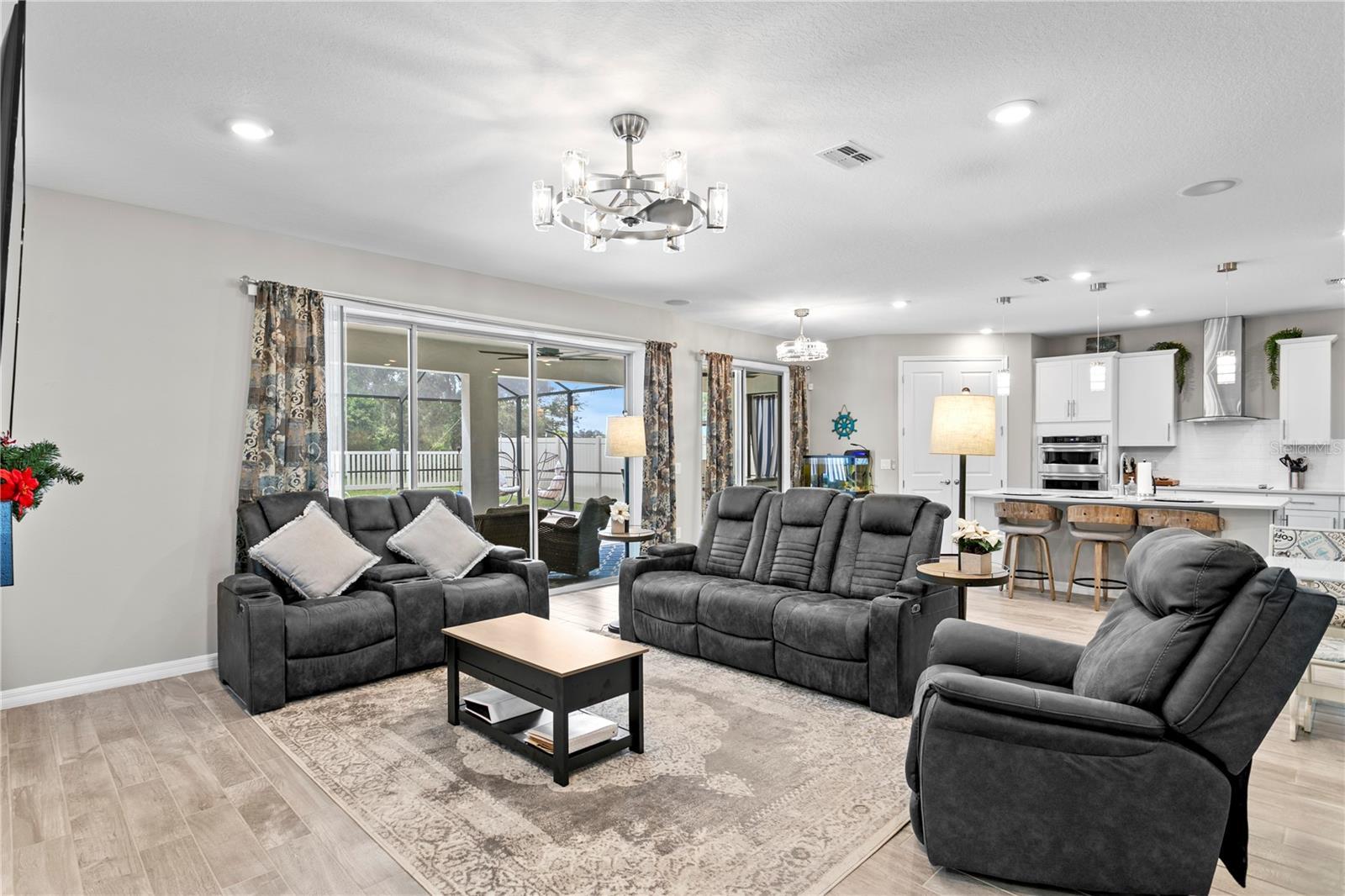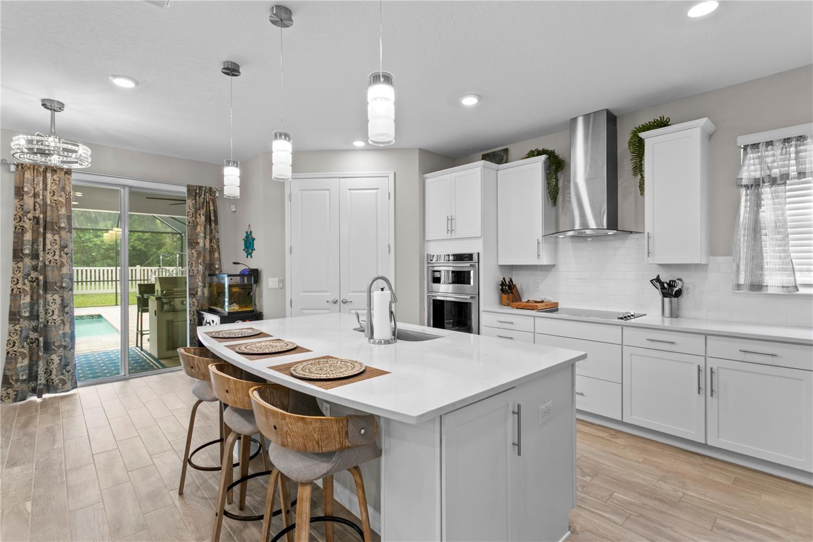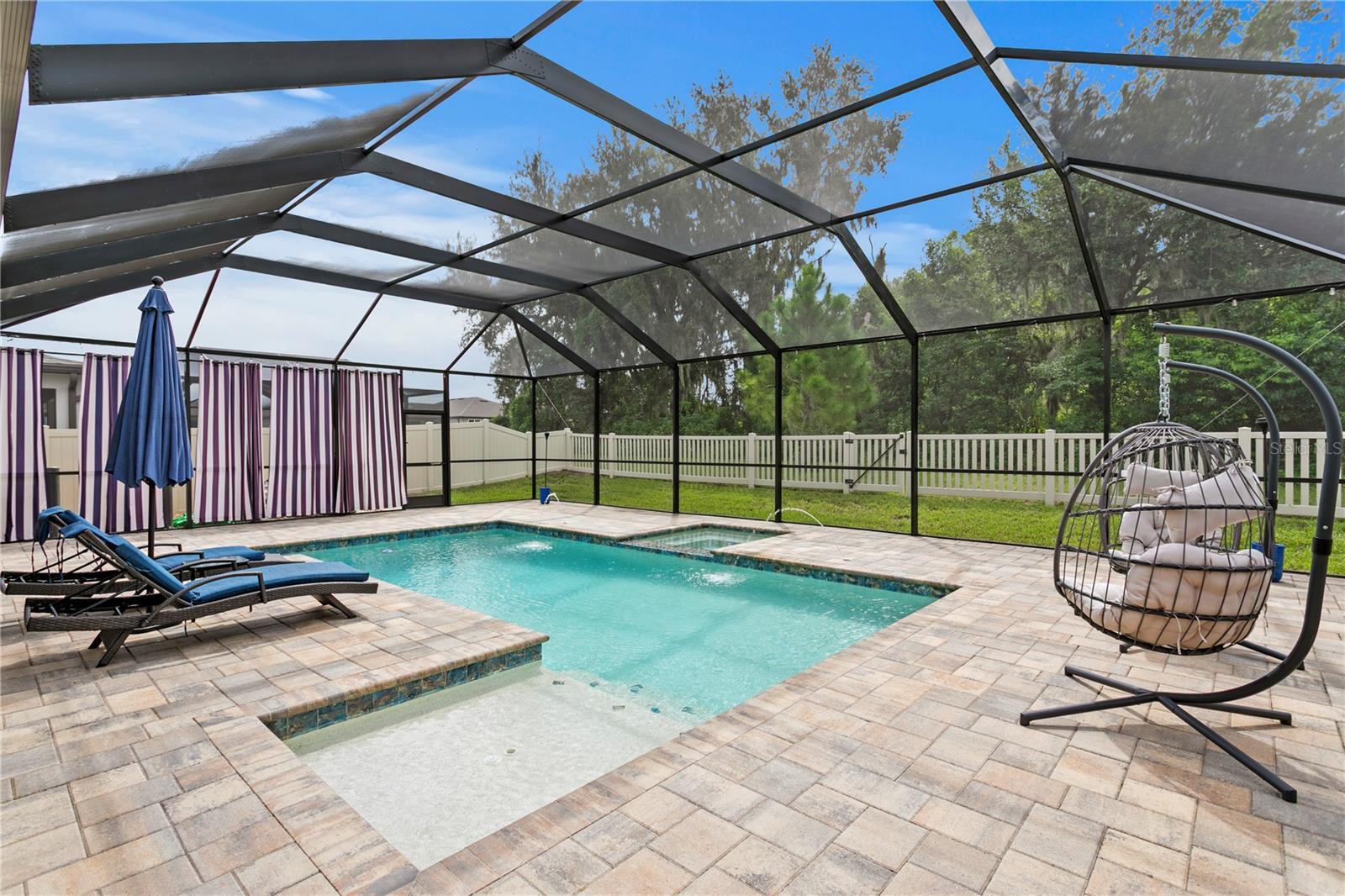 Welcome to your private retreat in the highly sought-after Epperson Lagoon Community, the first crystalline lagoon community in the United States. This impressive two-story residence offers 4,210 square feet of thoughtfully designed living space, blending modern elegance, comfort, and a lifestyle that feels like a permanent vacation. Step inside to soaring ceilings, abundant natural light, and an open layout that flows effortlessly from room to room. The gourmet kitchen is a centerpiece with stainless steel appliances, quartz countertops, and a sleek central island overlooking the bright gathering room with expansive pool views. The first-floor owner’s suite is a spacious retreat with large windows framing the pool and a spa-inspired bathroom designed for relaxation. Two additional bedrooms, a versatile flex room, and two more full baths complete the downstairs living areas. Upstairs, you’ll discover two additional bedrooms, a full bath, a huge loft, and a media room that offer endless possibilities for entertainment, family living, or a dedicated work-from-home setup. The home’s flooring enhances both style and functionality, with wood-look tile throughout the main floor living areas and plush carpeting in the loft, media room, and bedrooms for comfort. The outdoor living space is built for enjoyment year-round. A heated pool and spa take center stage, complemented by a covered lanai and a complete outdoor kitchen that makes entertaining effortless. The fully fenced backyard provides privacy and space for both relaxation and recreation. Additional features elevate the home’s convenience and value, blinds, designer lighting, a Rainbird irrigation system, and a three-car garage with overhead storage solutions. Wired speakers throughout the home make it easy to enjoy music in every living space. Epperson Ranch offers a truly unique lifestyle with its seven-acre crystal lagoon, unlimited household access, and annual guest passes. The community also includes Eagle’s Nest Park, Elam Park, a dog park, golf cart paths, and family-friendly events. High-speed internet and cable are included in the HOA, making daily living seamless and connected. The location offers the best of Wesley Chapel living, with top-rated schools, shopping at The Shops at Wiregrass and Tampa Premium Outlets, an array of dining options, and convenient access to major highways for easy commutes across the Tampa Bay area. This home is more than just a place to live—it is an opportunity to enjoy resort-style amenities and everyday comfort in one of Florida’s most desirable communities. Schedule your private showing today and see why Epperson Lagoon living is truly one-of-a-kind.