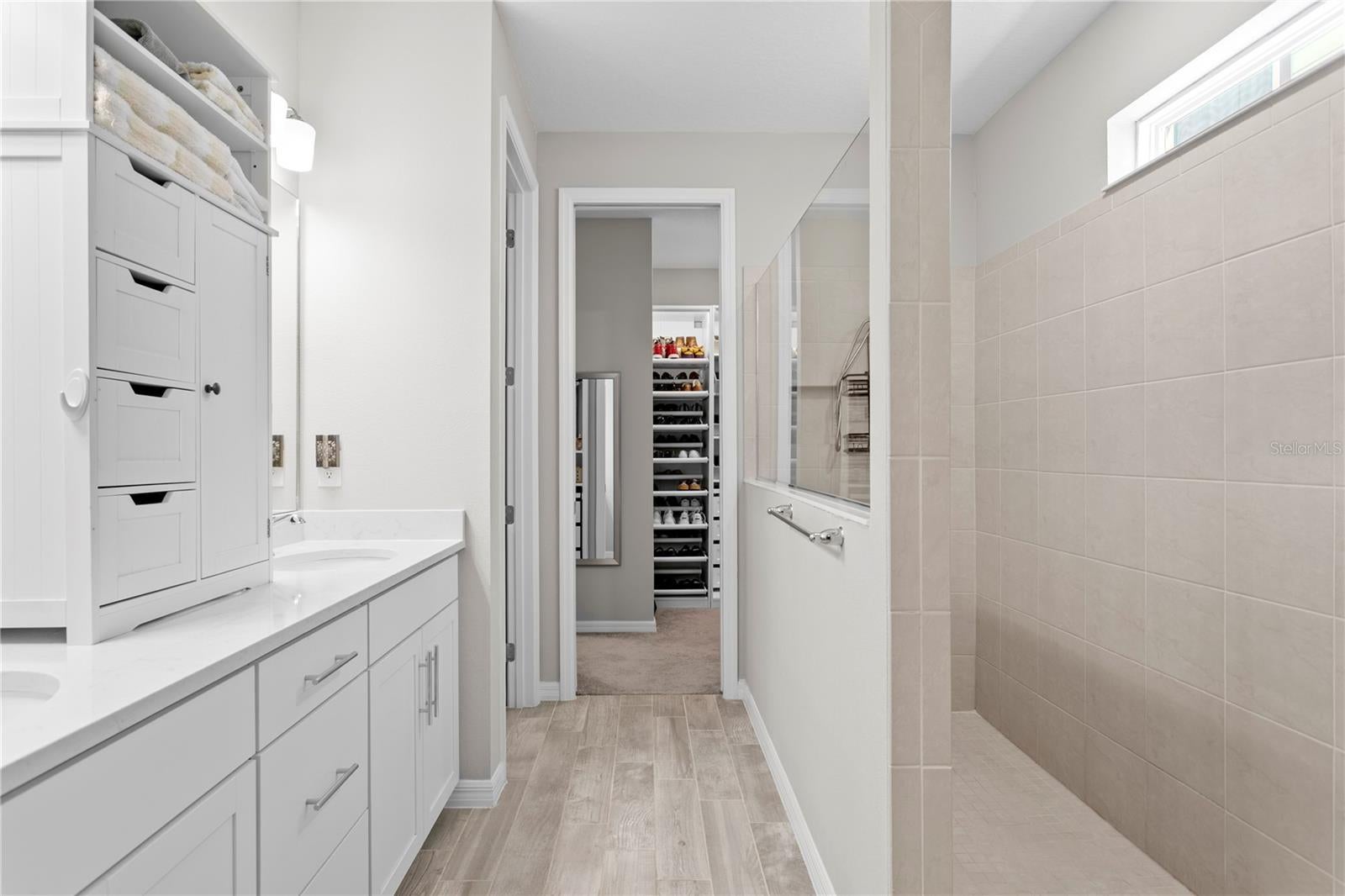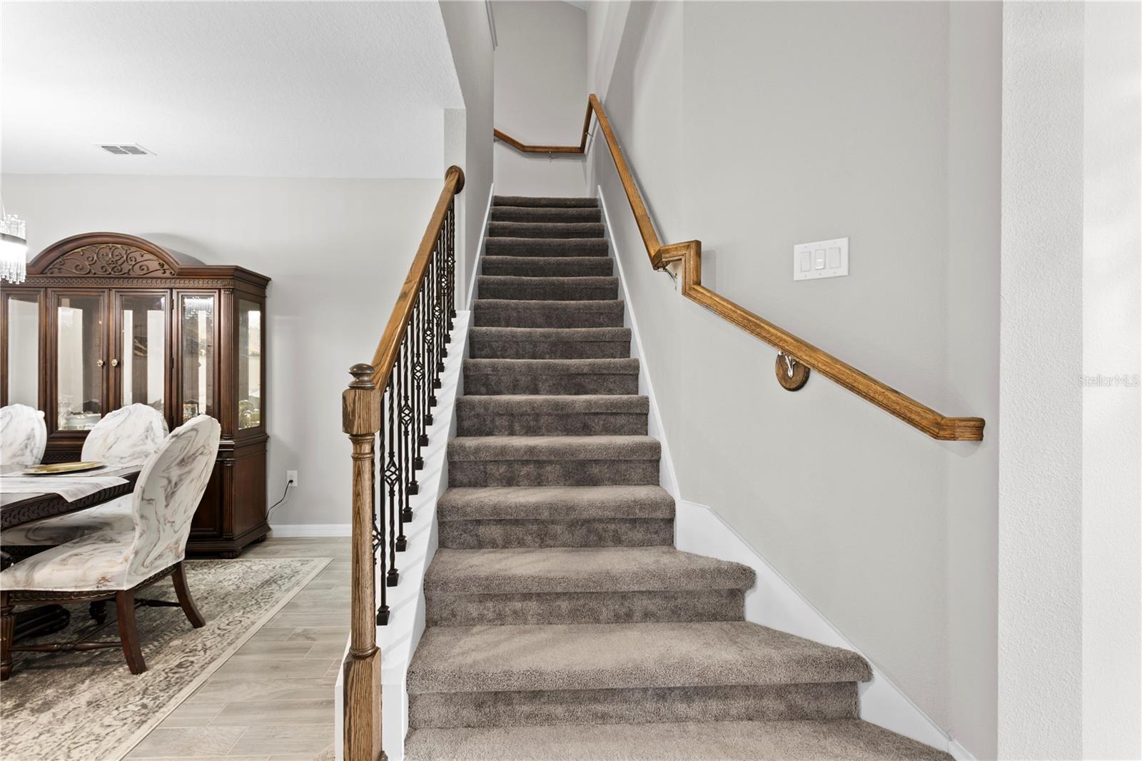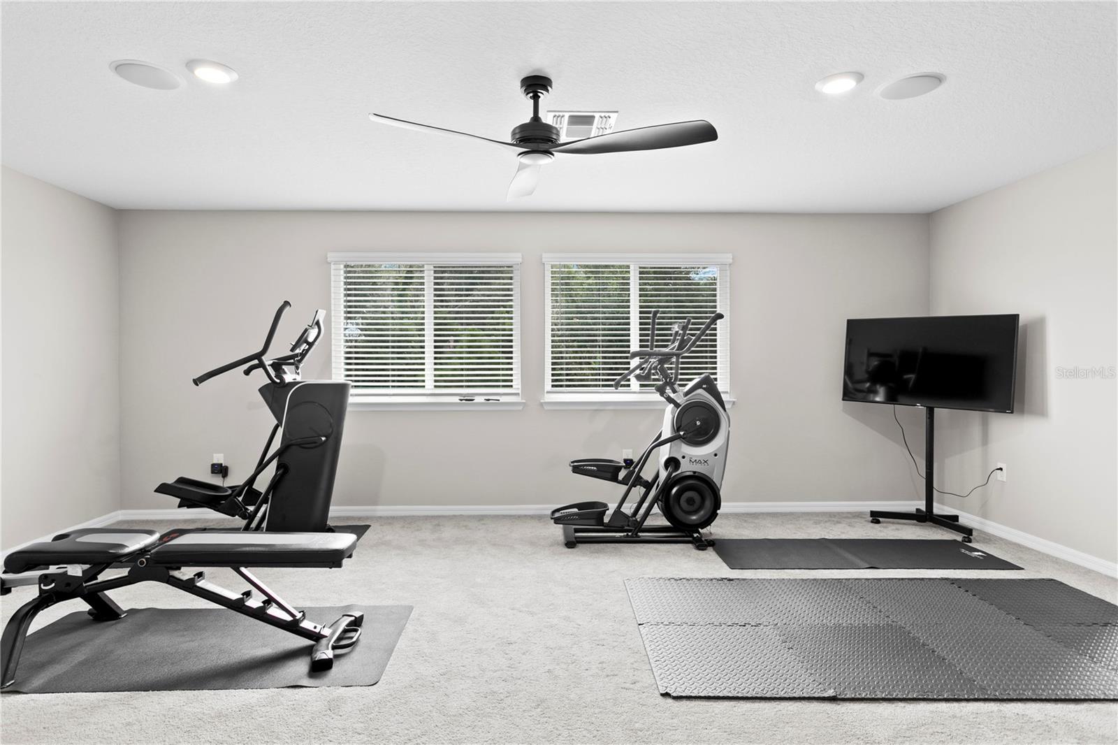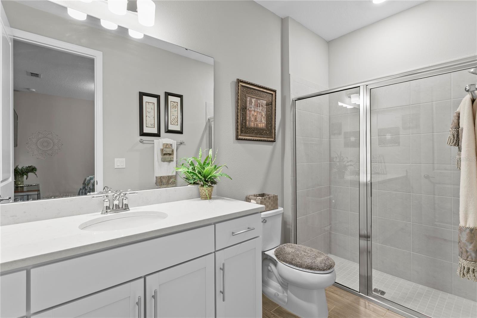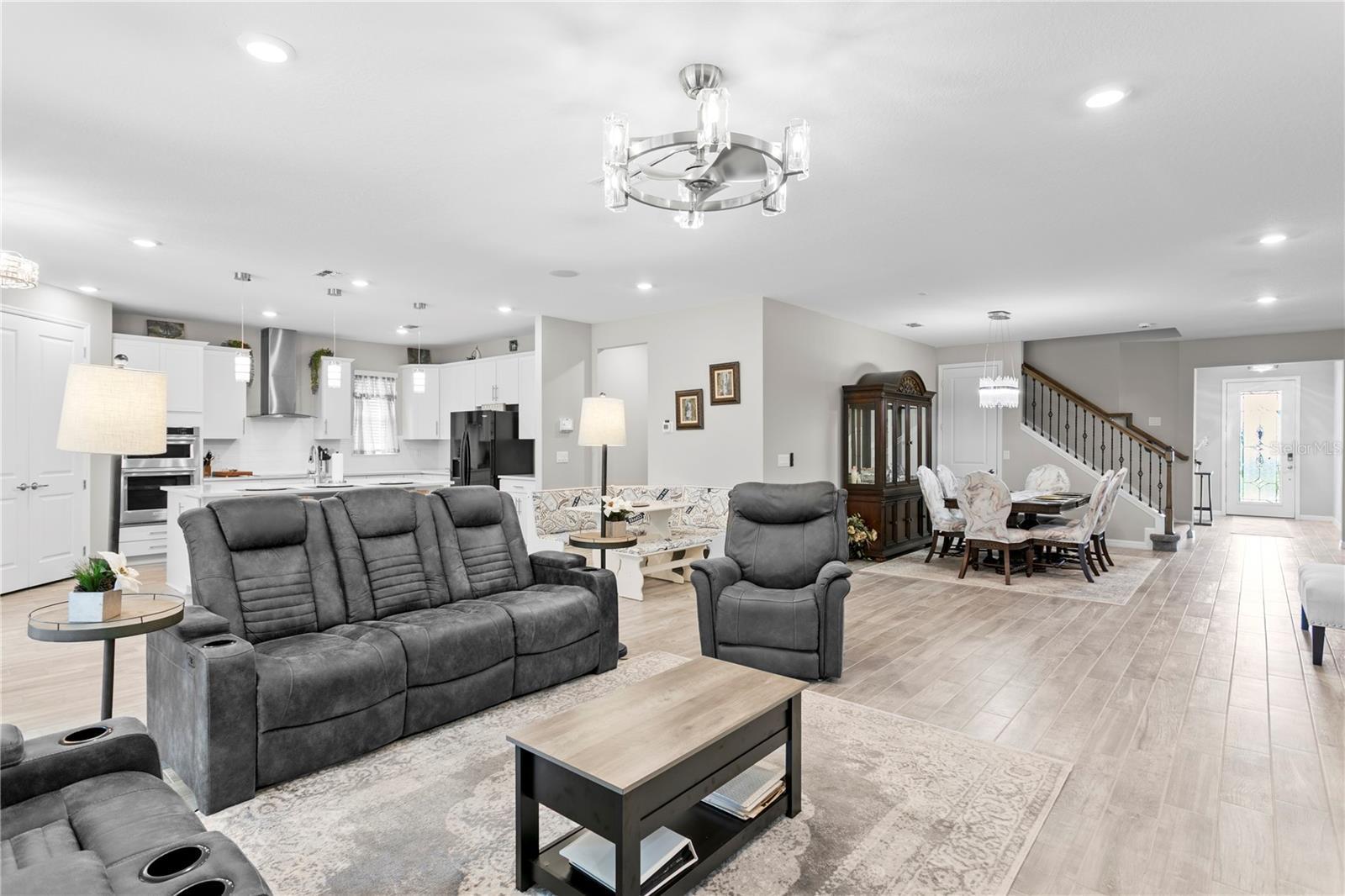 Welcome to your private retreat in the highly sought-after Epperson Lagoon Community, the first crystalline lagoon community in the United States. This impressive two-story residence offers 4,210 square feet of thoughtfully designed living space, blending modern elegance, comfort, and a lifestyle that feels like a permanent vacation. Step inside to soaring ceilings, abundant natural light, and an open layout that flows effortlessly from room to room. The gourmet kitchen is a centerpiece with stainless steel appliances, quartz countertops, and a sleek central island overlooking the bright gathering room with expansive pool views. The first-floor owner’s suite is a spacious retreat with large windows framing the pool and a spa-inspired bathroom designed for relaxation. Two additional bedrooms, a versatile flex room, and two more full baths complete the downstairs living areas. Upstairs, you’ll discover two additional bedrooms, a full bath, a huge loft, and a media room that offer endless possibilities for entertainment, family living, or a dedicated work-from-home setup. The home’s flooring enhances both style and functionality, with wood-look tile throughout the main floor living areas and plush carpeting in the loft, media room, and bedrooms for comfort. The outdoor living space is built for enjoyment year-round. A heated pool and spa take center stage, complemented by a covered lanai and a complete outdoor kitchen that makes entertaining effortless. The fully fenced backyard provides privacy and space for both relaxation and recreation. Additional features elevate the home’s convenience and value, blinds, designer lighting, a Rainbird irrigation system, and a three-car garage with overhead storage solutions. Wired speakers throughout the home make it easy to enjoy music in every living space. Epperson Ranch offers a truly unique lifestyle with its seven-acre crystal lagoon, unlimited household access, and annual guest passes. The community also includes Eagle’s Nest Park, Elam Park, a dog park, golf cart paths, and family-friendly events. High-speed internet and cable are included in the HOA, making daily living seamless and connected. The location offers the best of Wesley Chapel living, with top-rated schools, shopping at The Shops at Wiregrass and Tampa Premium Outlets, an array of dining options, and convenient access to major highways for easy commutes across the Tampa Bay area. This home is more than just a place to live—it is an opportunity to enjoy resort-style amenities and everyday comfort in one of Florida’s most desirable communities. Schedule your private showing today and see why Epperson Lagoon living is truly one-of-a-kind.
