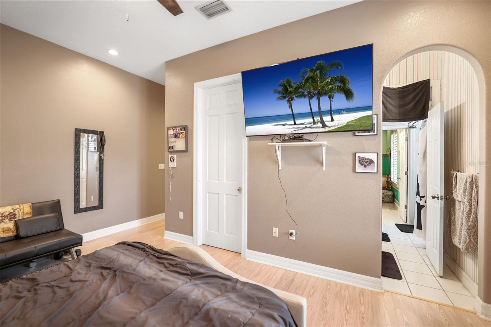 - Built-in Features, Ceiling Fans(s), Eat-in Kitchen, High Ceilings, Kitchen/Family Room Combo, Open Floorplan, Primary Bedroom Main Floor, Split Bedroom, Tray Ceiling(s), Walk-In Closet(s), Wet Bar