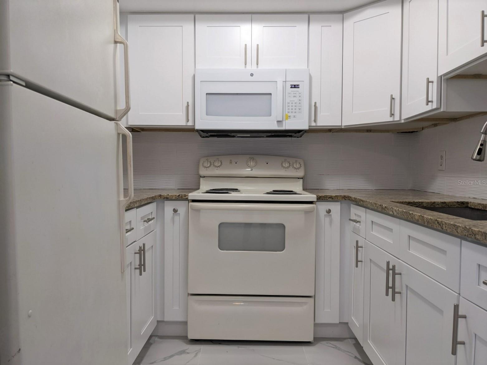 Updated and spacious 1 bedroom, ground floor apartment near Azalea Rec Center, St Pete College and Tyrone retail corridor. New kitchen with granite counters and bonus microwave. Vinyl plank flooring for EZ maintenance. Great storage with closet in living-dining area and two closets in the bedroom. Laundry on site and off-street parking. Pinellas Trail runs behind the building for jogging and biking. Just 10 minutes to Gulf Beaches, 20 minutes to downtown St Pete. Good value in a great location. No smoking. One cat only with $150 pet fee. Monthly water bill from landlord. Trash included in rent.