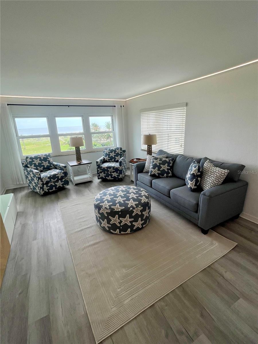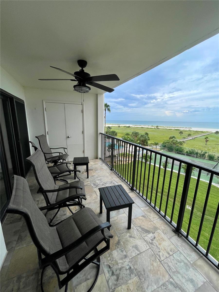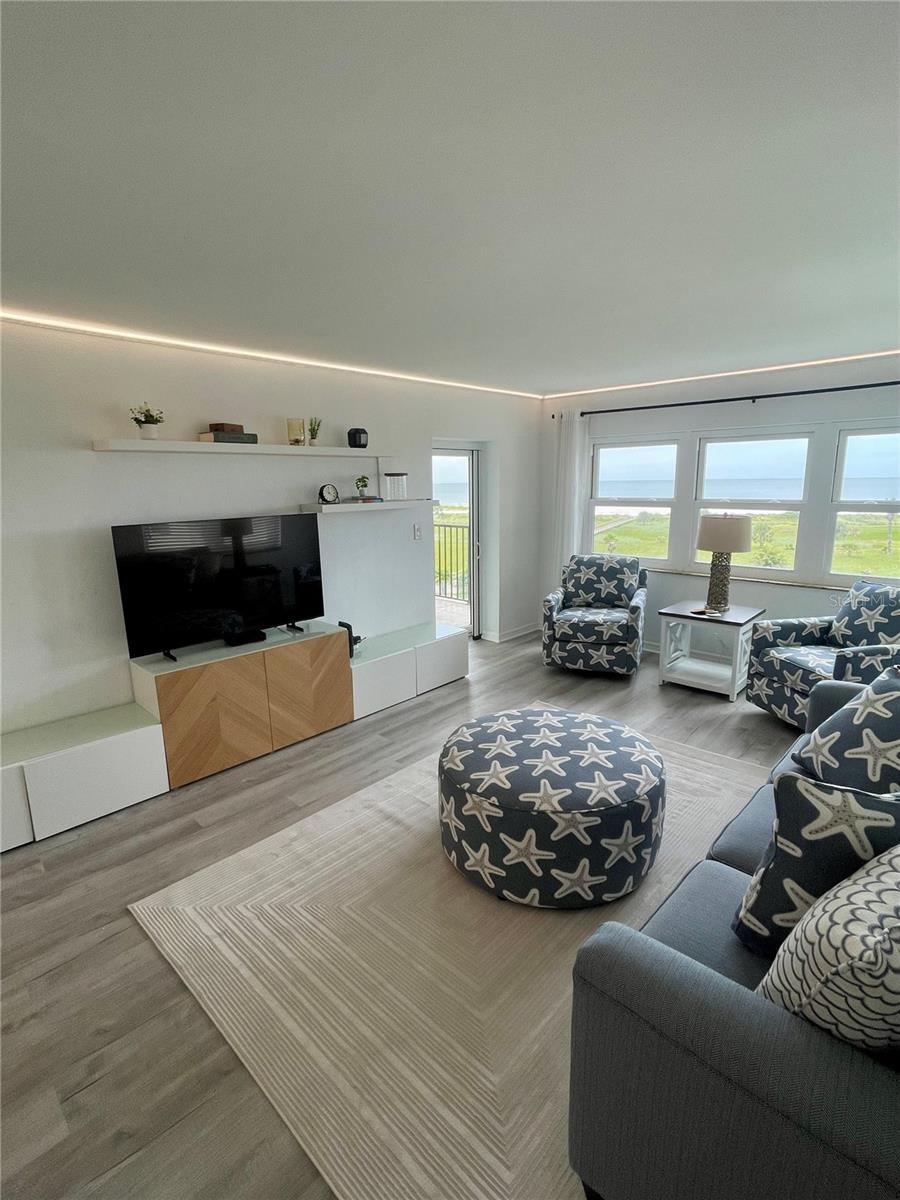 5th floor END UNIT with direct oceanfront Gulf views, located in Landmark Towers on the famous Sand Key Beach. This freshly remodeled 2-bedroom, 2-bathroom condo offers 1,111 square feet of living space and includes Quartz countertops, new cabinetry, recessed lighting, LVP flooring, and extra in-unit storage. An in-unit washer and dryer adds convenience, and the primary bedroom features a walk-in closet and a sliding glass door to the balcony with stunning ocean views. The unit also includes impact-resistant double-pane windows and a spacious layout ideal for everyday living or seasonal use. Enjoy direct views of the beach, pool, and tennis courts from the main living areas. Amenities include a HEATED POOL, SPA, TENNIS COURTS, SHUFFLEBOARD, BBQ GRILLS, and a PRIVATE BEACH RESERVE WITH DIRECT GULF ACCESS via a boardwalk through the community’s conservation area. A PREMIUM COVERED PARKING SPACE NEXT TO THE ELEVATOR. The monthly condominium fee covers WATER, TRASH, BASIC ELECTRICITY, CABLE, INTERNET, EXTERIOR MAINTENANCE, and 24/7 SECURITY WITH GATED ENTRY AND ON-SITE MANAGEMENT. Landmark Towers is located just across the street from Sand Key Plaza, placing shopping and waterfront dining options—including the famous Columbia Restaurant—only steps away. Approximate travel times: 5 minutes to Clearwater Beach, 15 minutes to St. Pete–Clearwater Airport, and 30 minutes to Tampa International Airport.