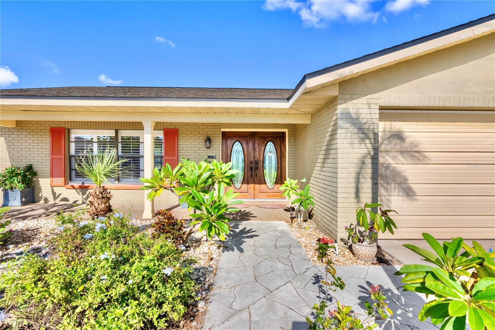 - Garden, Lighting, Private Mailbox, Shade Shutter(s), Sidewalk, Sliding Doors
