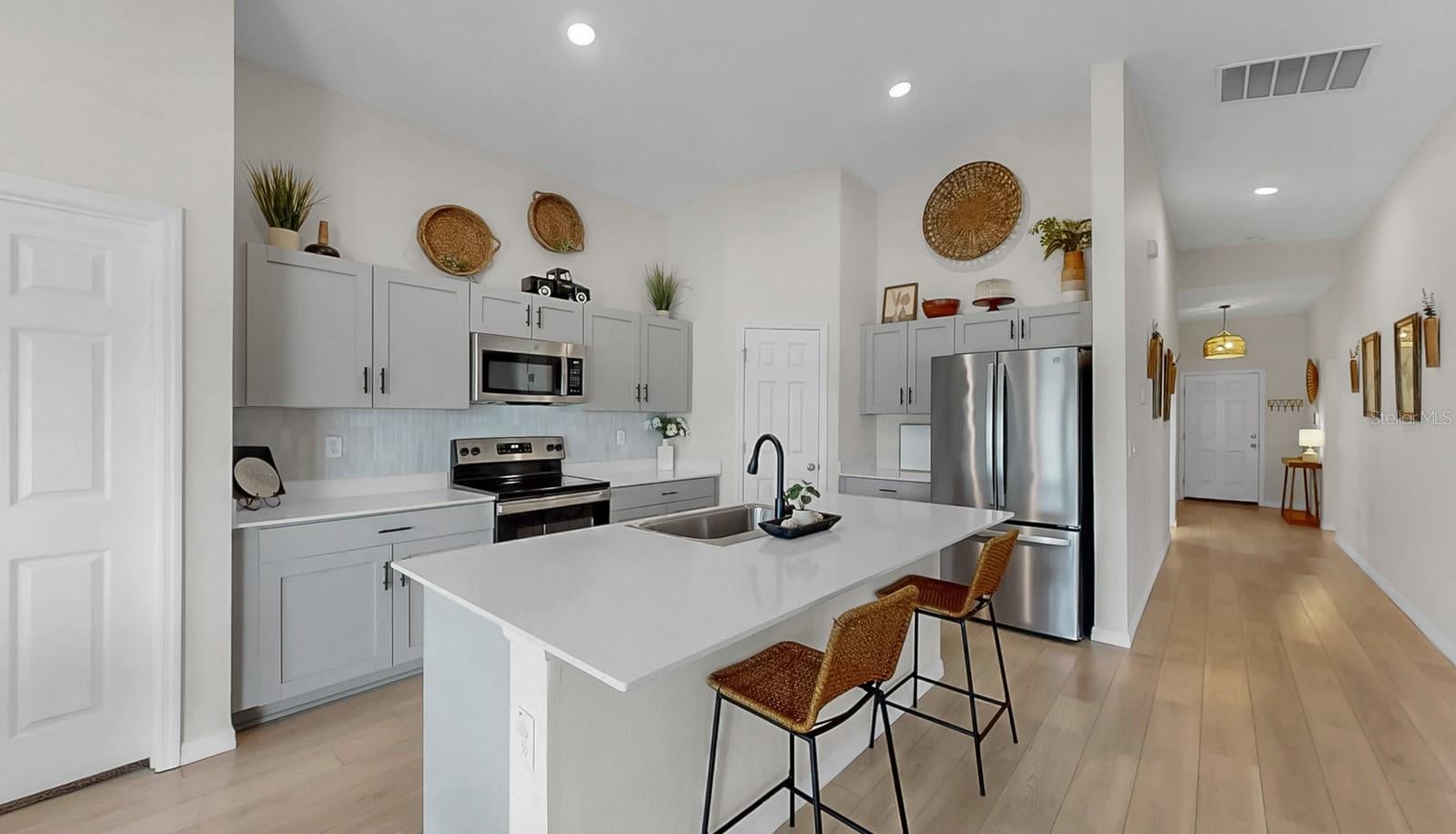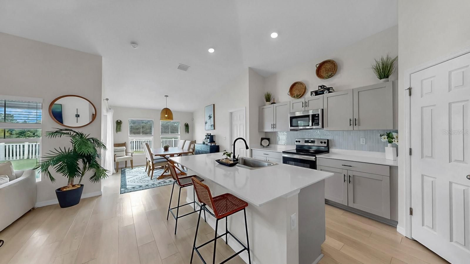 ***ELECTRIC INCLUDED IN RENT PRICE*** Welcome home to this CHARMING 4 bedroom, 2 bath home situated on a PREMIUM lot with picturesque western facing pond views for the most beautiful sunsets, and NO REAR NEIGHBORS! Inside, owners have added stylish upgrades around every corner with tasteful designs choices, like light wood-look LVP flooring, designer light fixtures, and a neutral color palette. The split-bedroom layout offers privacy, with the spacious primary suite tucked away at the back of the home, featuring serene pond views, an ensuite bath with dual sinks, a glass-enclosed standing shower, private water closet, and a large walk-in closet. The kitchen is a true highlight, boasting quartz countertops, trendy gray cabinetry, and a pale blue-green tile backsplash that adds a touch of charm. Located just a short walk away from the neighborhood elementary school, the Goddard School preschool and the amenity center and pool, this home is situated in a prime location in Triple Creek. Triple Creek offers its residents access to THREE resort-like community pools, TWO fitness centers, TWO clubhouses, tennis, basketball volleyball and pickleball courts, playgrounds, walking trails, dog parks and more. Triple Creek also has an active social committee and offers community wide events for its residents. Call to see this beautiful home before it's gone! Electric included in rental price - tenant to only pay $14 solar connection fee to TECO and any overage charges not covered by solar panels.