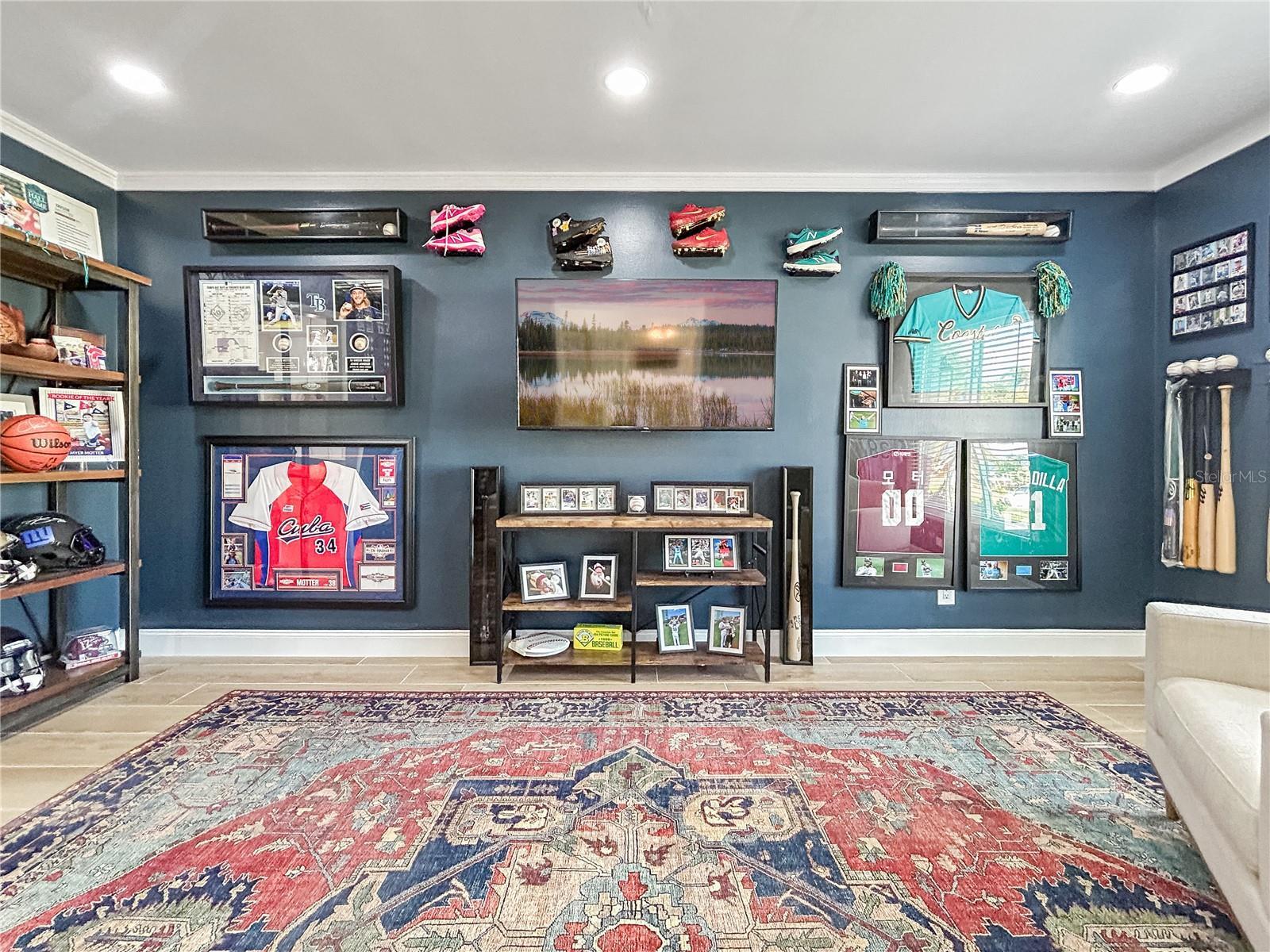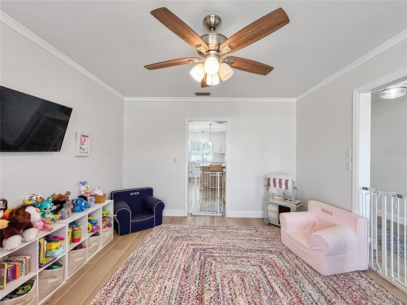 - Built-in Features, Ceiling Fans(s), Crown Molding, Dry Bar, Eat-in Kitchen, High Ceilings, Kitchen/Family Room Combo, Open Floorplan, Primary Bedroom Main Floor, Solid Wood Cabinets, Stone Counters, Thermostat, Walk-In Closet(s)