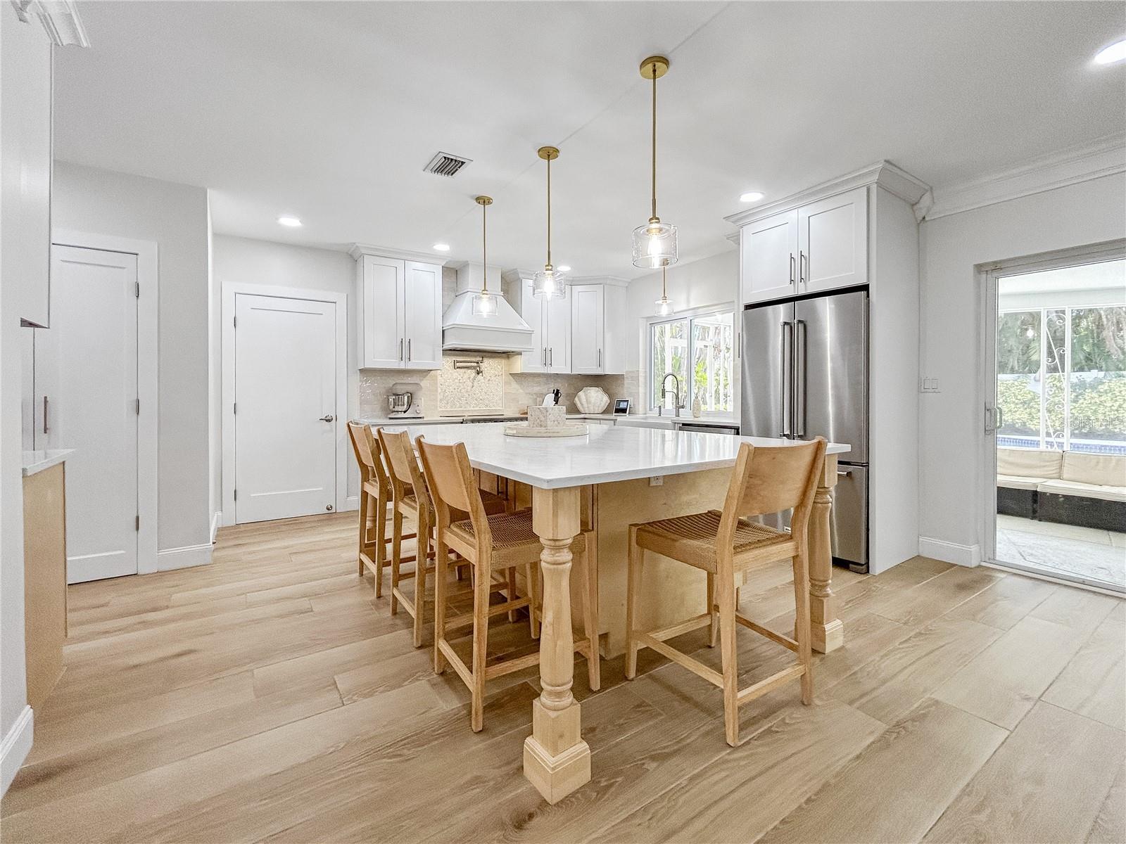 Welcome to Bayway Isles, one of St. Petersburg’s most exclusive guard-gated, waterfront communities. Just across the bridge from the award-winning beaches of St. Pete Beach, Pass-a-Grille, and Treasure Island, and only ten minutes from the vibrant downtown St. Petersburg. This location offers the perfect balance of coastal living and city convenience. This beautifully newly renovated single-story pool home features 3 bedrooms and 2 bathrooms with a modern coastal charm. The BRAND NEW kitchen is a chef’s dream, showcasing solid wood cabinetry, stone countertops, under-cabinet lighting, new stainless-steel appliances, a spacious island for gathering, a breakfast bar, and a walk-in pantry. The kitchen flows seamlessly into the light-filled family room, creating the ideal space for entertaining. Throughout the home, newly installed hardwood-style porcelain tile flooring enhances the clean and elegant design. Both bathrooms have been tastefully updated with modern tile, cabinetry, and fixtures, while the large indoor laundry room has been redesigned with custom cabinetry for added convenience. A formal living room and dining room provide flexible spaces to fit your lifestyle. Step outside to your private backyard oasis, where a large in-ground pool is surrounded by lush landscaping. A screened-in porch offers the perfect spot to enjoy evening breezes in comfort and privacy. Additional features include hurricane impact windows and sliding doors, a brand-new 2024 HVAC system, updated lighting and fans throughout, and a spacious two-car garage. This move-in ready home combines thoughtful upgrades with timeless appeal, offering everything you need to enjoy the best of Florida living.