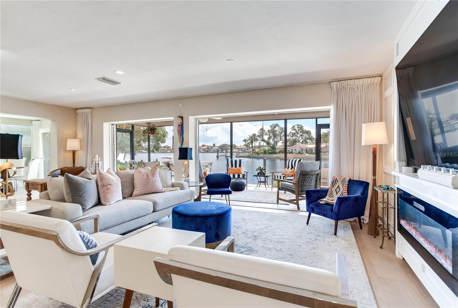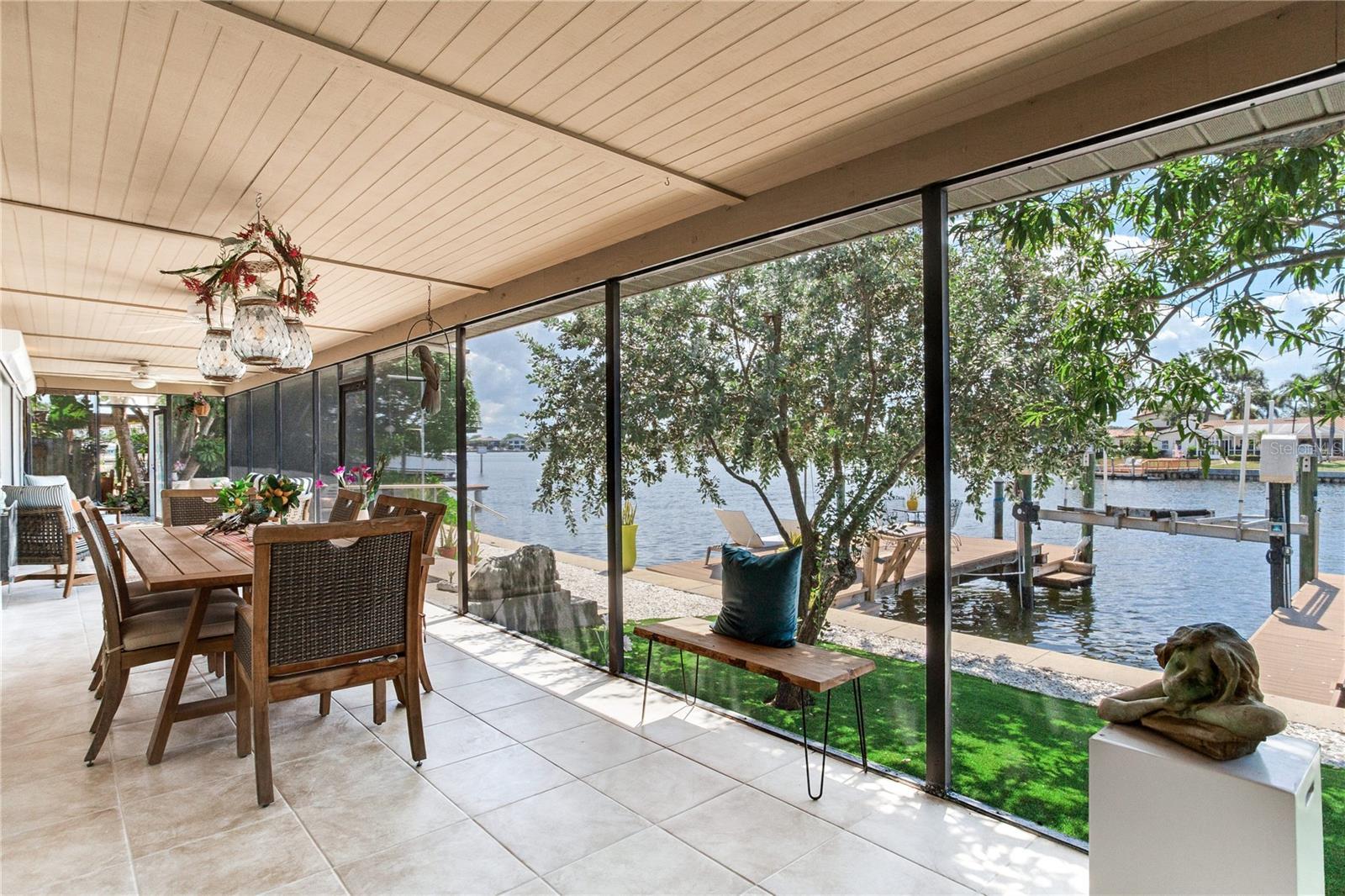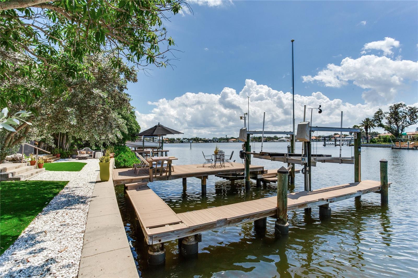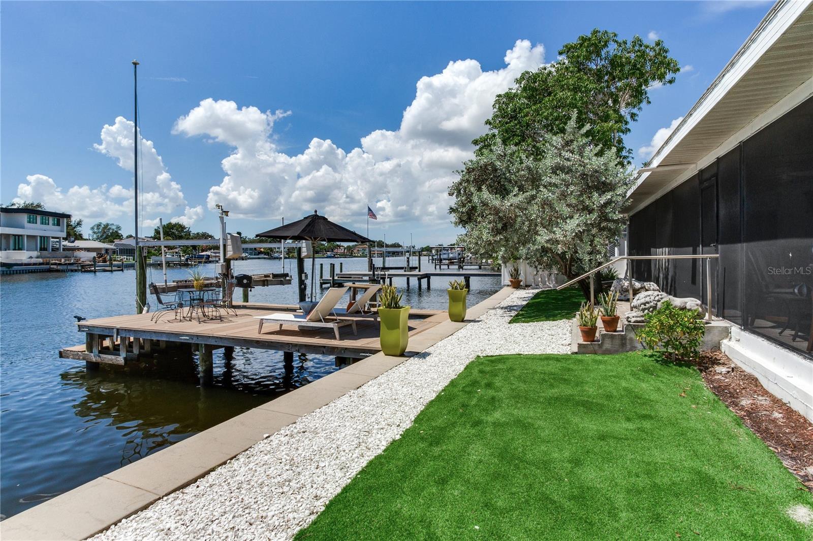 MODERN WATERFRONT RETREAT | CAR ENTHUSIASTS & BOATERS PARADISE Experience the ultimate in coastal living with this meticulously remodeled 4-bedroom, 3-bath residence offering 2,934 sq ft of luxury and 81 feet of sparkling waterfront on Smacks Bayou. Every detail of this home has been thoughtfully updated to create a modern oasis where lifestyle, functionality, and elegance converge. Waterfront Lifestyle - Wake up to panoramic bayou views, where dolphins are part of your daily backdrop. Enjoy breathtaking sunrises with your morning coffee and unwind to colorful sunsets from your expansive 58-foot screened porch. A private dock with boat slip and lift makes boating effortless—just minutes to open Tampa Bay waters. Seamless Indoor-Outdoor Living - The home’s design embraces open-concept living with a fully remodeled chef’s kitchen featuring an induction cooktop with MoveMode, quartz island seating for four, stainless steel appliances, and a charming breakfast nook. The living and dining areas flow effortlessly to the lanai, creating a perfect space for entertaining. A custom wine bar with 340-bottle Allavino cooler and built-in cabinetry elevates the experience. Private Retreats - The spacious primary suite offers water views and a spa-inspired ensuite with a fully remodeled bathroom. Two additional guest bedrooms—one ideal as a home office—plus a fourth bedroom ensure comfort and flexibility for family and visitors. Car Enthusiasts’ Dream Garage - A newly constructed oversized two-story garage is purpose-built for collectors and hobbyists, equipped with two hydraulic car lifts, and abundant space for tools, shelving, and mechanical equipment. RV owners will love the dedicated side yard with electrical and wastewater hookups.