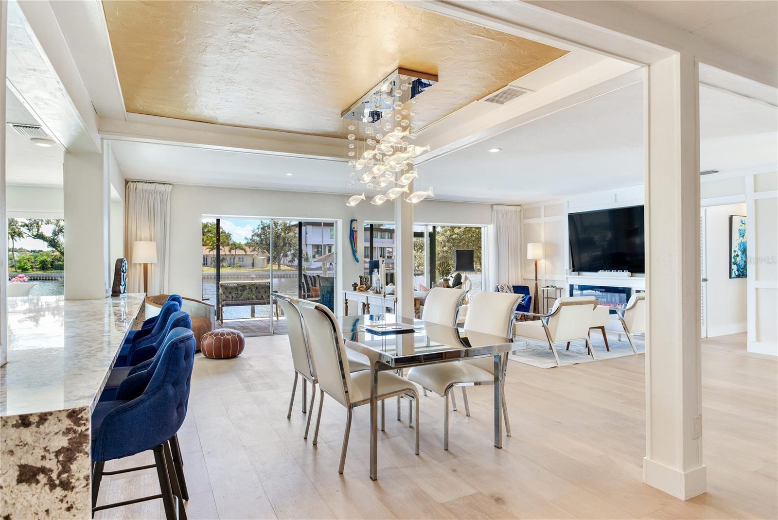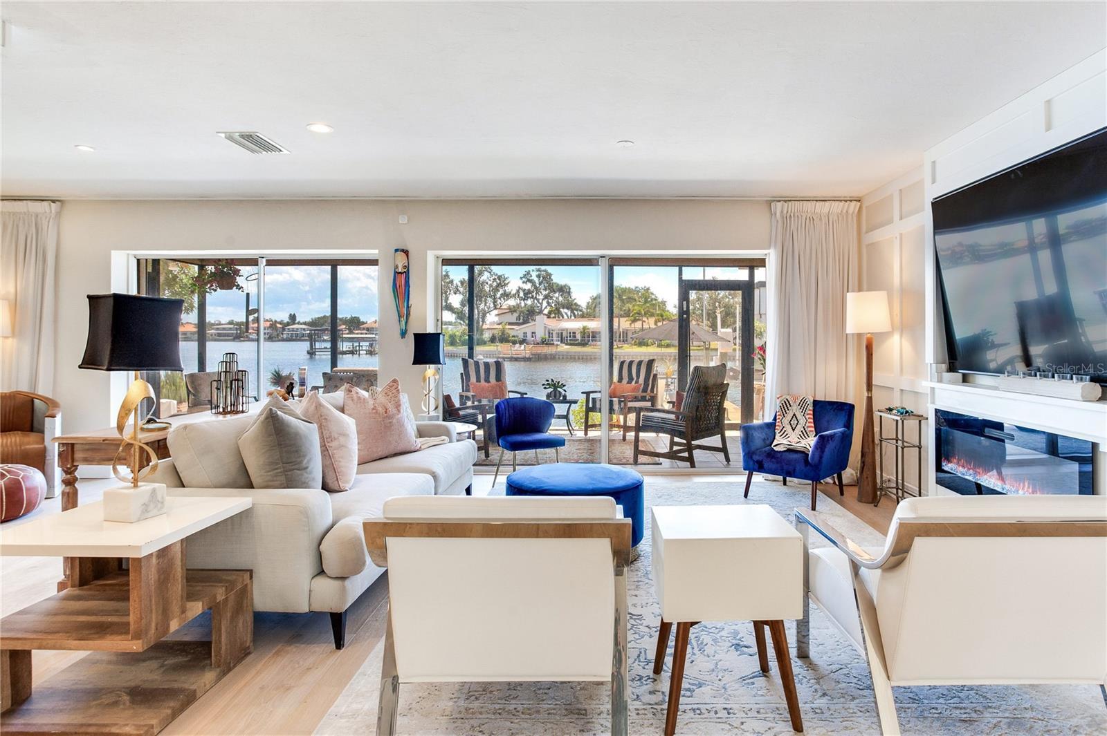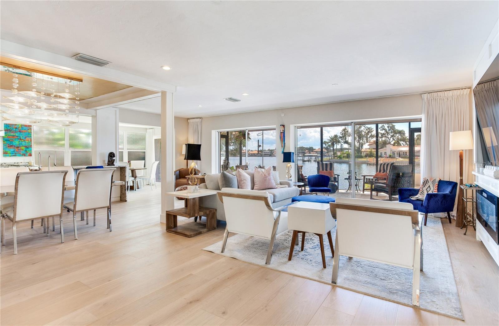 MODERN WATERFRONT RETREAT | CAR ENTHUSIASTS & BOATERS PARADISE Experience the ultimate in coastal living with this meticulously remodeled 4-bedroom, 3-bath residence offering 2,934 sq ft of luxury and 81 feet of sparkling waterfront on Smacks Bayou. Every detail of this home has been thoughtfully updated to create a modern oasis where lifestyle, functionality, and elegance converge. Waterfront Lifestyle - Wake up to panoramic bayou views, where dolphins are part of your daily backdrop. Enjoy breathtaking sunrises with your morning coffee and unwind to colorful sunsets from your expansive 58-foot screened porch. A private dock with boat slip and lift makes boating effortless—just minutes to open Tampa Bay waters. Seamless Indoor-Outdoor Living - The home’s design embraces open-concept living with a fully remodeled chef’s kitchen featuring an induction cooktop with MoveMode, quartz island seating for four, stainless steel appliances, and a charming breakfast nook. The living and dining areas flow effortlessly to the lanai, creating a perfect space for entertaining. A custom wine bar with 340-bottle Allavino cooler and built-in cabinetry elevates the experience. Private Retreats - The spacious primary suite offers water views and a spa-inspired ensuite with a fully remodeled bathroom. Two additional guest bedrooms—one ideal as a home office—plus a fourth bedroom ensure comfort and flexibility for family and visitors. Car Enthusiasts’ Dream Garage - A newly constructed oversized two-story garage is purpose-built for collectors and hobbyists, equipped with two hydraulic car lifts, and abundant space for tools, shelving, and mechanical equipment. RV owners will love the dedicated side yard with electrical and wastewater hookups.