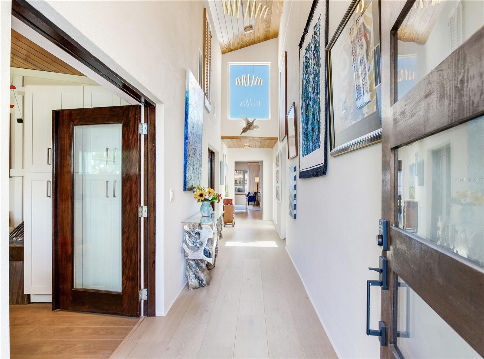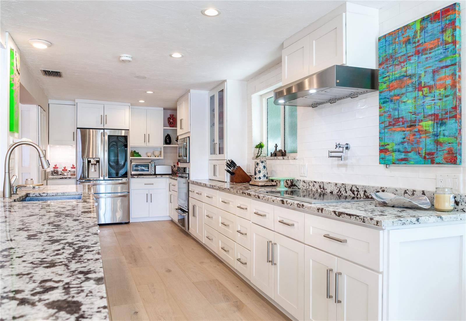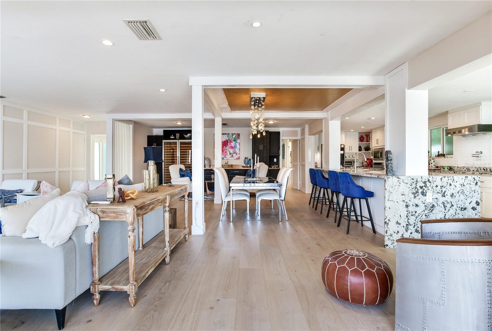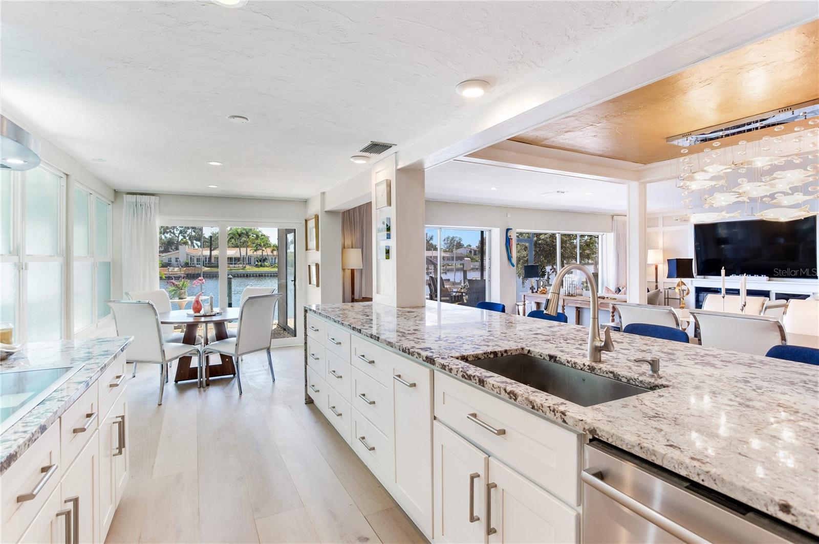 MODERN WATERFRONT RETREAT | CAR ENTHUSIASTS & BOATERS PARADISE Experience the ultimate in coastal living with this meticulously remodeled 4-bedroom, 3-bath residence offering 2,934 sq ft of luxury and 81 feet of sparkling waterfront on Smacks Bayou. Every detail of this home has been thoughtfully updated to create a modern oasis where lifestyle, functionality, and elegance converge. Waterfront Lifestyle - Wake up to panoramic bayou views, where dolphins are part of your daily backdrop. Enjoy breathtaking sunrises with your morning coffee and unwind to colorful sunsets from your expansive 58-foot screened porch. A private dock with boat slip and lift makes boating effortless—just minutes to open Tampa Bay waters. Seamless Indoor-Outdoor Living - The home’s design embraces open-concept living with a fully remodeled chef’s kitchen featuring an induction cooktop with MoveMode, quartz island seating for four, stainless steel appliances, and a charming breakfast nook. The living and dining areas flow effortlessly to the lanai, creating a perfect space for entertaining. A custom wine bar with 340-bottle Allavino cooler and built-in cabinetry elevates the experience. Private Retreats - The spacious primary suite offers water views and a spa-inspired ensuite with a fully remodeled bathroom. Two additional guest bedrooms—one ideal as a home office—plus a fourth bedroom ensure comfort and flexibility for family and visitors. Car Enthusiasts’ Dream Garage - A newly constructed oversized two-story garage is purpose-built for collectors and hobbyists, equipped with two hydraulic car lifts, and abundant space for tools, shelving, and mechanical equipment. RV owners will love the dedicated side yard with electrical and wastewater hookups.