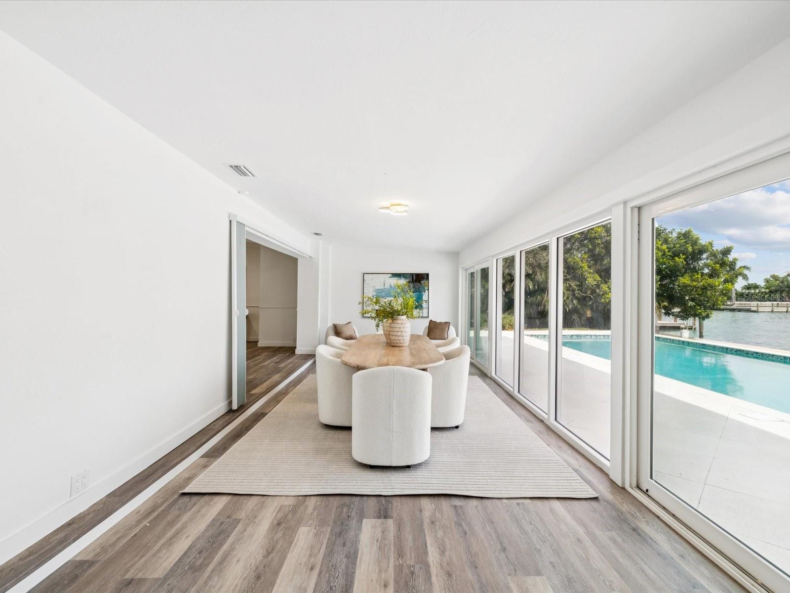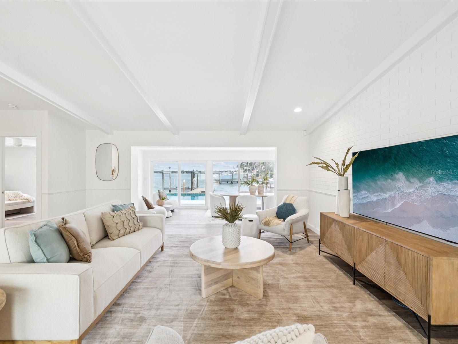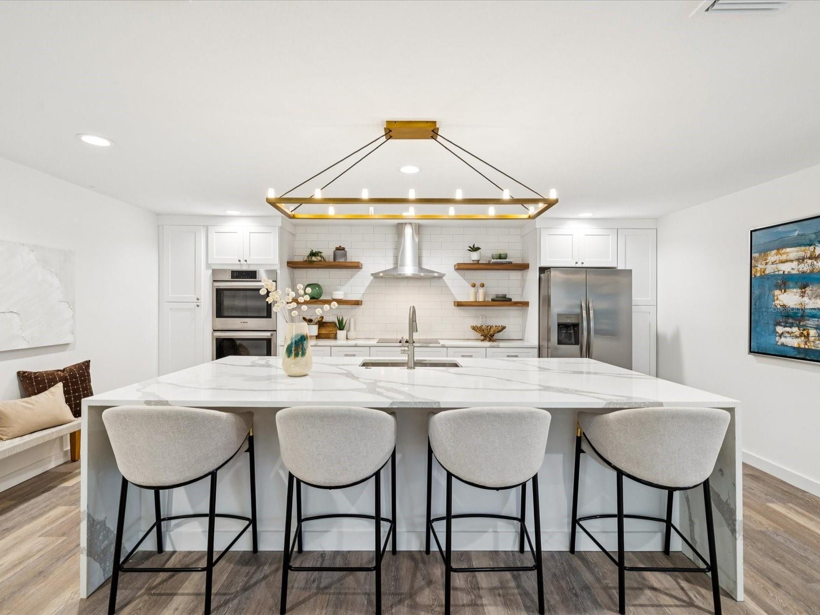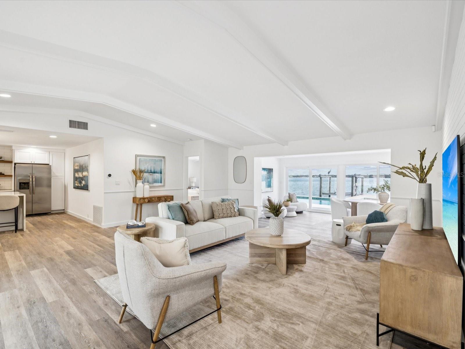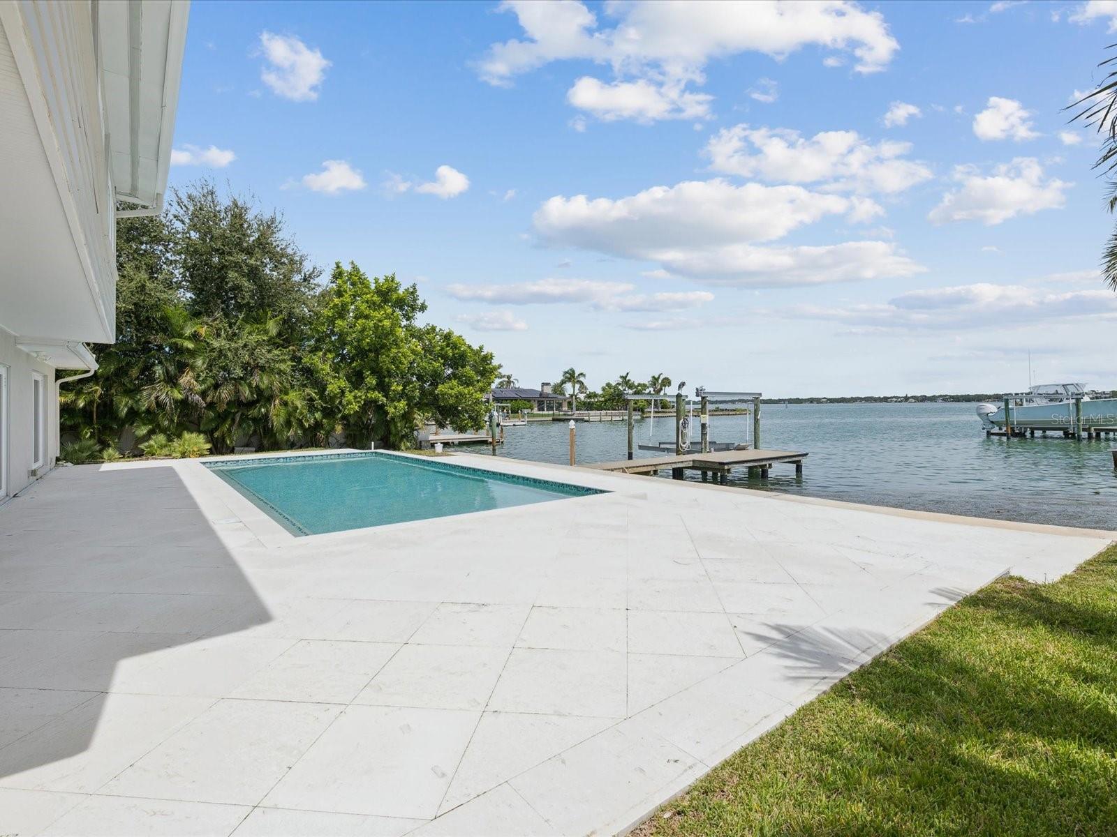 This impressive five-bedroom, three-bath waterfront home embodies the beauty of coastal living. Light-filled interiors open to sweeping water views, complemented by luxury vinyl flooring throughout for a clean, modern look. At the heart of the home, a quartz waterfall island anchors the kitchen, combining style and functionality for both everyday living and entertaining. From multiple rooms, enjoy breathtaking views of the Intracoastal Waterway, creating a serene backdrop to daily life. The home features a spacious primary suite on the main level, along with another large primary suite upstairs, offering flexibility for guests or multi-generational living. The backyard retreat boasts a pool, dock, and boat lift, with endless opportunities to enjoy the water. From your own backyard, watch the pirate ship and dolphin tours cruise by from John’s Pass multiple times a day. With generous bedrooms, thoughtful finishes, and direct access to boating, fishing, and the Gulf, this home offers the best of waterfront living.