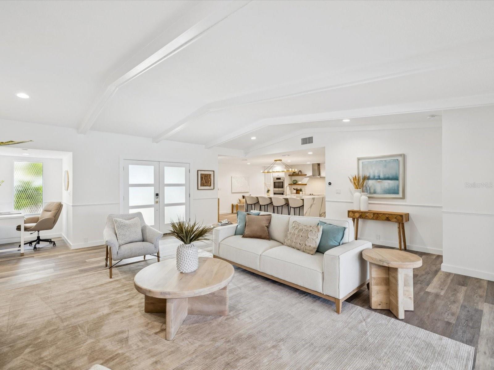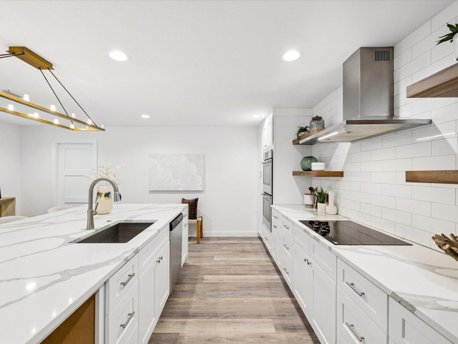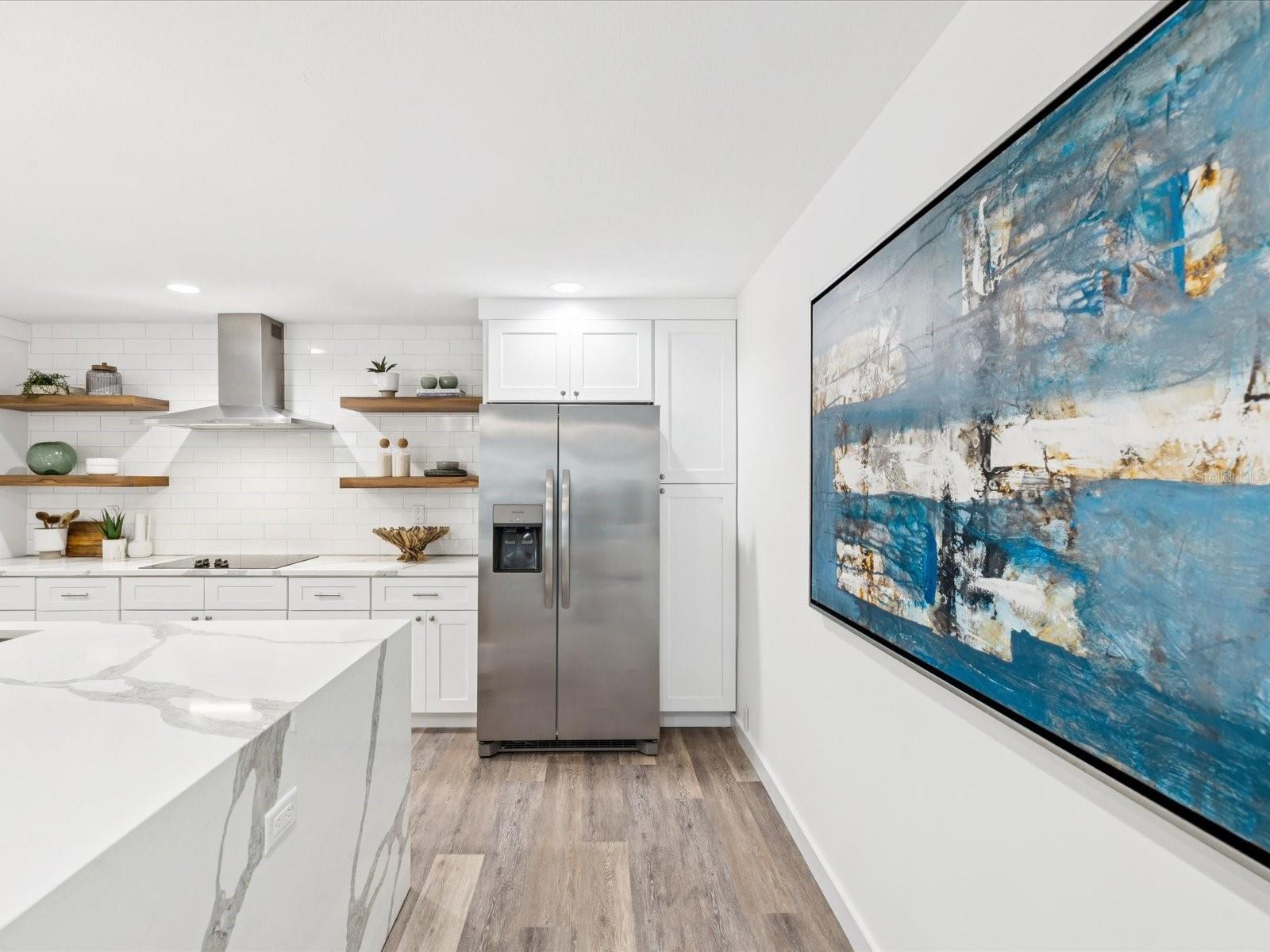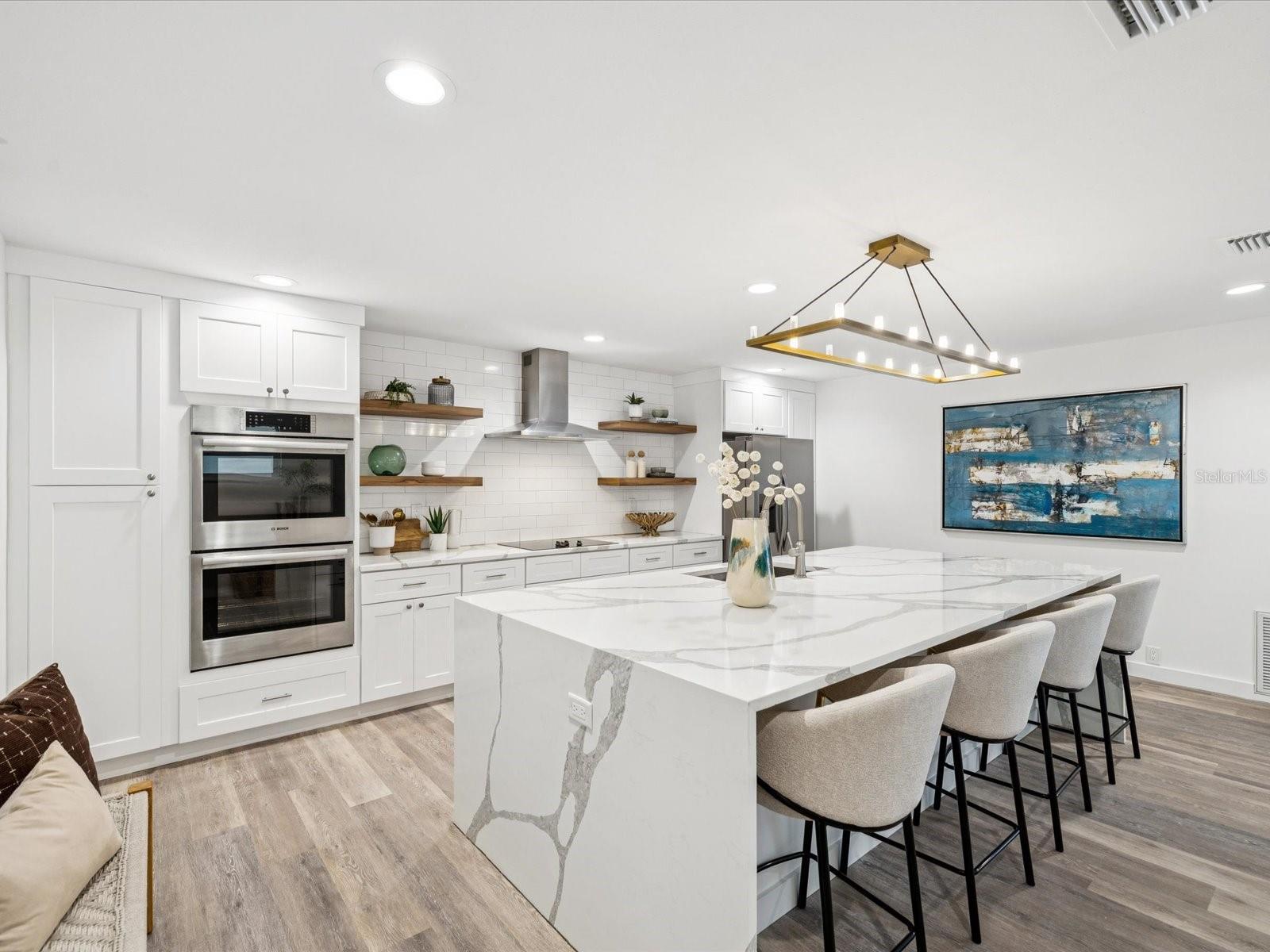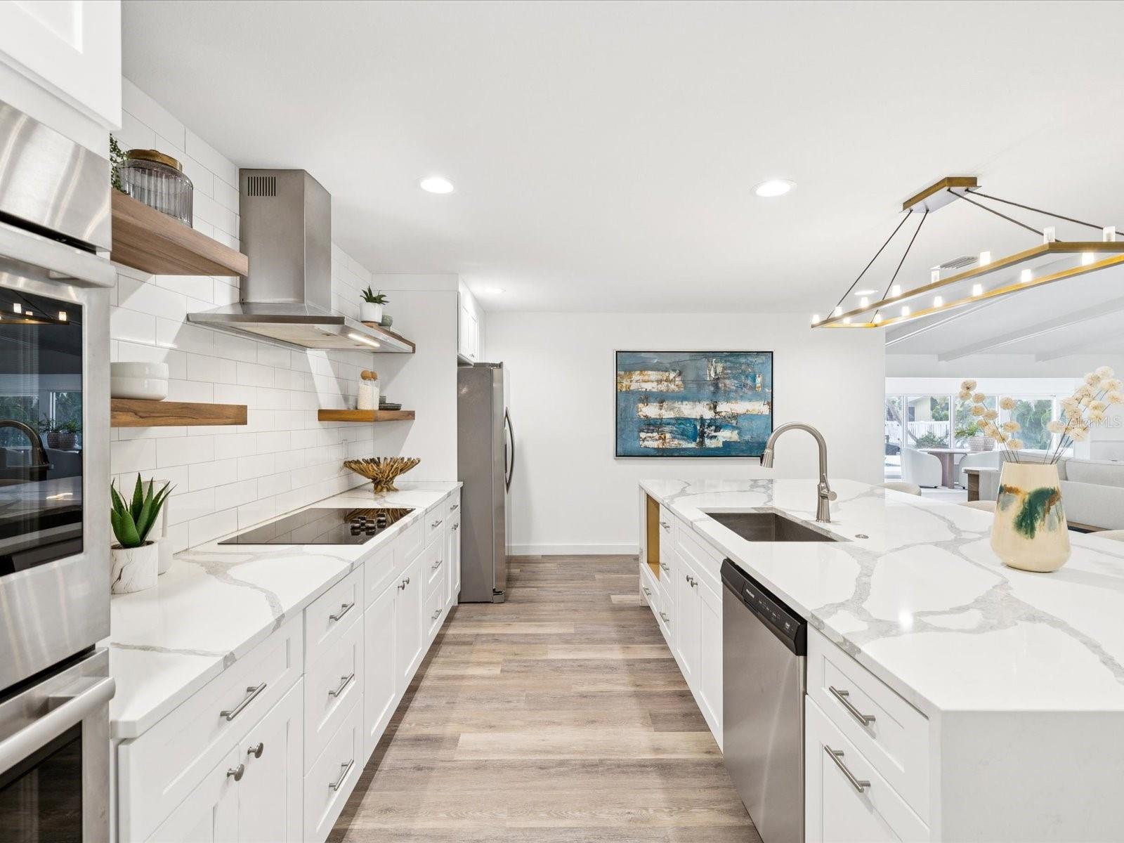 This impressive five-bedroom, three-bath waterfront home embodies the beauty of coastal living. Light-filled interiors open to sweeping water views, complemented by luxury vinyl flooring throughout for a clean, modern look. At the heart of the home, a quartz waterfall island anchors the kitchen, combining style and functionality for both everyday living and entertaining. From multiple rooms, enjoy breathtaking views of the Intracoastal Waterway, creating a serene backdrop to daily life. The home features a spacious primary suite on the main level, along with another large primary suite upstairs, offering flexibility for guests or multi-generational living. The backyard retreat boasts a pool, dock, and boat lift, with endless opportunities to enjoy the water. From your own backyard, watch the pirate ship and dolphin tours cruise by from John’s Pass multiple times a day. With generous bedrooms, thoughtful finishes, and direct access to boating, fishing, and the Gulf, this home offers the best of waterfront living.