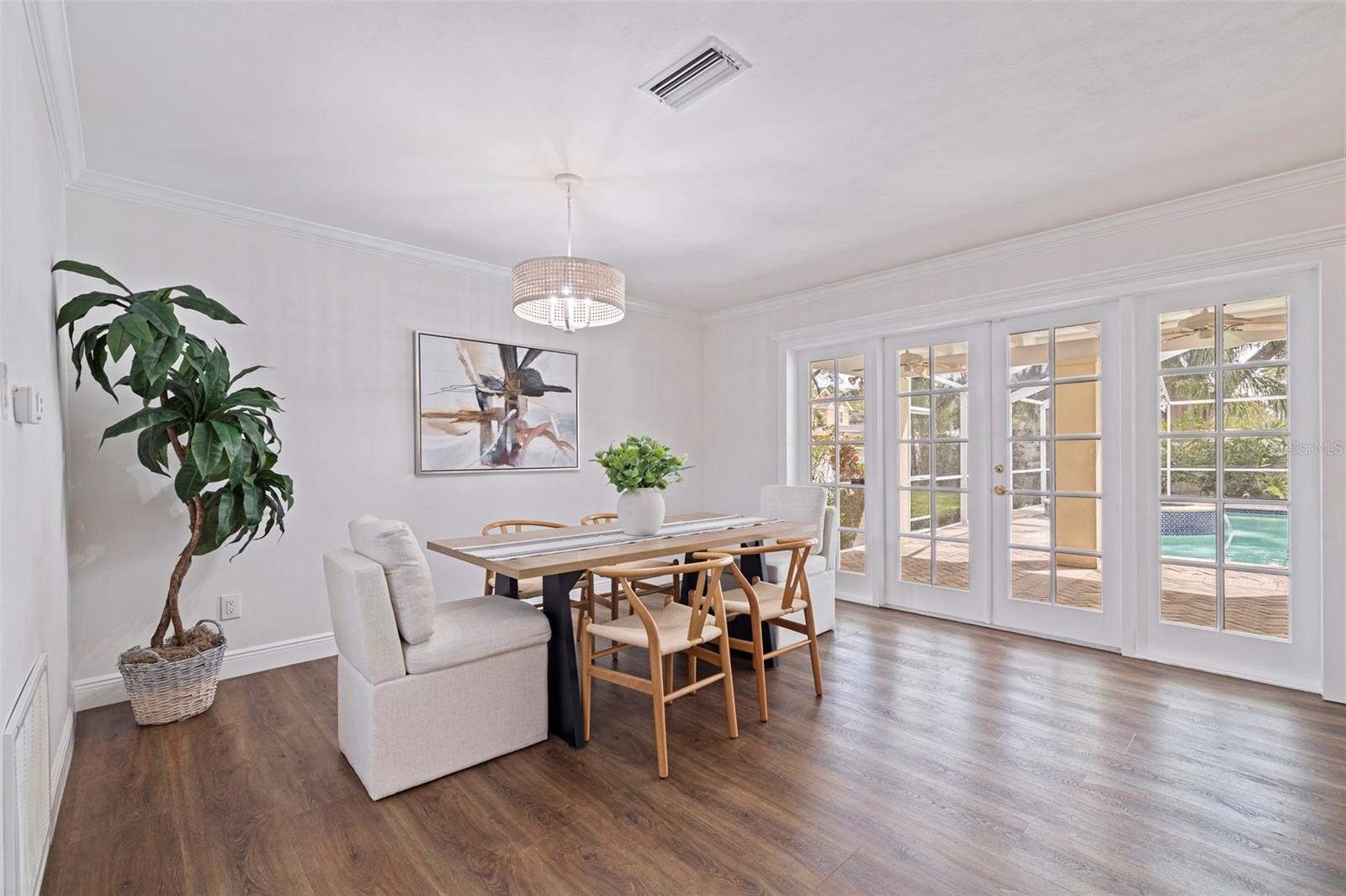 PRICE IMPROVEMENT! REMODELED & MOVE-IN READY, this IMPRESSIVE 4BR/3BA in BEACH PARK sits on an OVERSIZED 81’ x 132’ CORNER LOT & offers the perfect balance of MODERN STYLE, FUNCTION, & LOCATION. The home soars with higher then average ceilings making it a STANDOUT TAKE ON CLASSIC RANCH STYLE spanning over 2,200 SF of thoughtfully designed living space, where every feature works in harmony for comfortable day-to-day living & effortless entertaining. The COURTYARD DESIGN places your own private BACKYARD OASIS at the heart of the home. Every major room is oriented toward the outdoor living space by six (6) French Doors, creating a seamless connection between inside & out. At the center is a sparkling SALTWATER POOL & HEATED SPA, framed by timeless HERRINGBONE BRICK PAVERS that provide ample room for lounge chairs, outdoor dining, or gathering with friends & family. An OUTDOOR SHOWER enhances the retreat-like feel, while the FULL SCREEN ENCLOSURE ensures year-round enjoyment. Despite the impressive pool & patio, the home still offers a grassy yard—completely enclosed by low-maintenance PVC FENCING—an incredibly RARE FIND in SOUTH TAMPA. Step inside to discover a bright & airy OPEN-CONCEPT layout, where the kitchen flows effortlessly into the dining & living space. The kitchen itself is a SHOWSTOPPER: boasting gleaming STAINLESS STEEL appliances, SOFT-CLOSE cabinetry, a tall PANTRY cabinet, & generous QUARTZ countertops providing abundant prep & serving space. On the opposite wing of the home, the bedroom quarters offer both COMFORT & VERSATILITY. The PRIMARY SUITE is a true retreat, introduced by a welcoming VESTIBULE that creates a sense of privacy & separation from the rest of the home. Inside, you’ll find a vaulted tongue-and-groove ceiling that adds character & warmth, a spacious WALK-IN CLOSET, & French doors that open directly onto the courtyard—allowing you to start each morning with a view of the pool & end each evening with the soft glow of patio lighting. The secondary bedrooms are GENEROUSLY SIZED with oversized closets, with the whole home providing significantly more STORAGE than most built in this era. Adding to the appeal is a large BONUS FLEX ROOM located in the center of the home. With its easy access to the pool area & a full bathroom nearby, this versatile space adapts to your lifestyle—it can serve as an additional family room, home office, game room, fitness area, or playroom. Whether you need a quiet retreat to work from home, a fun hangout spot for family movie nights, or a central hub for poolside entertaining, this space delivers endless possibilities. Everyday living is enhanced by practical features like the full-size INDOOR LAUNDRY ROOM, which connects conveniently to the home’s side entry through a CUSTOM COVERED PORTICO. Outside, a CIRCULAR DRIVEWAY makes parking & coming and going a breeze, with access to both intersecting streets. Beyond the property itself, the LOCATION is simply unbeatable. Just minutes from Tampa International Airport, MacDill Air Force Base, Downtown Tampa, & Raymond James Stadium, the home keeps you connected to work, travel, & leisure. Some of Tampa’s best shopping, dining, & entertainment are just around the corner, & the home is located within the TOP-RATED PLANT HIGH SCHOOL district. If you’ve been searching for a South Tampa home that offers SPACE, STYLE, & a true sense of everyday LUXURY, look no further. THIS IS THE ONE you’ve been waiting for!
