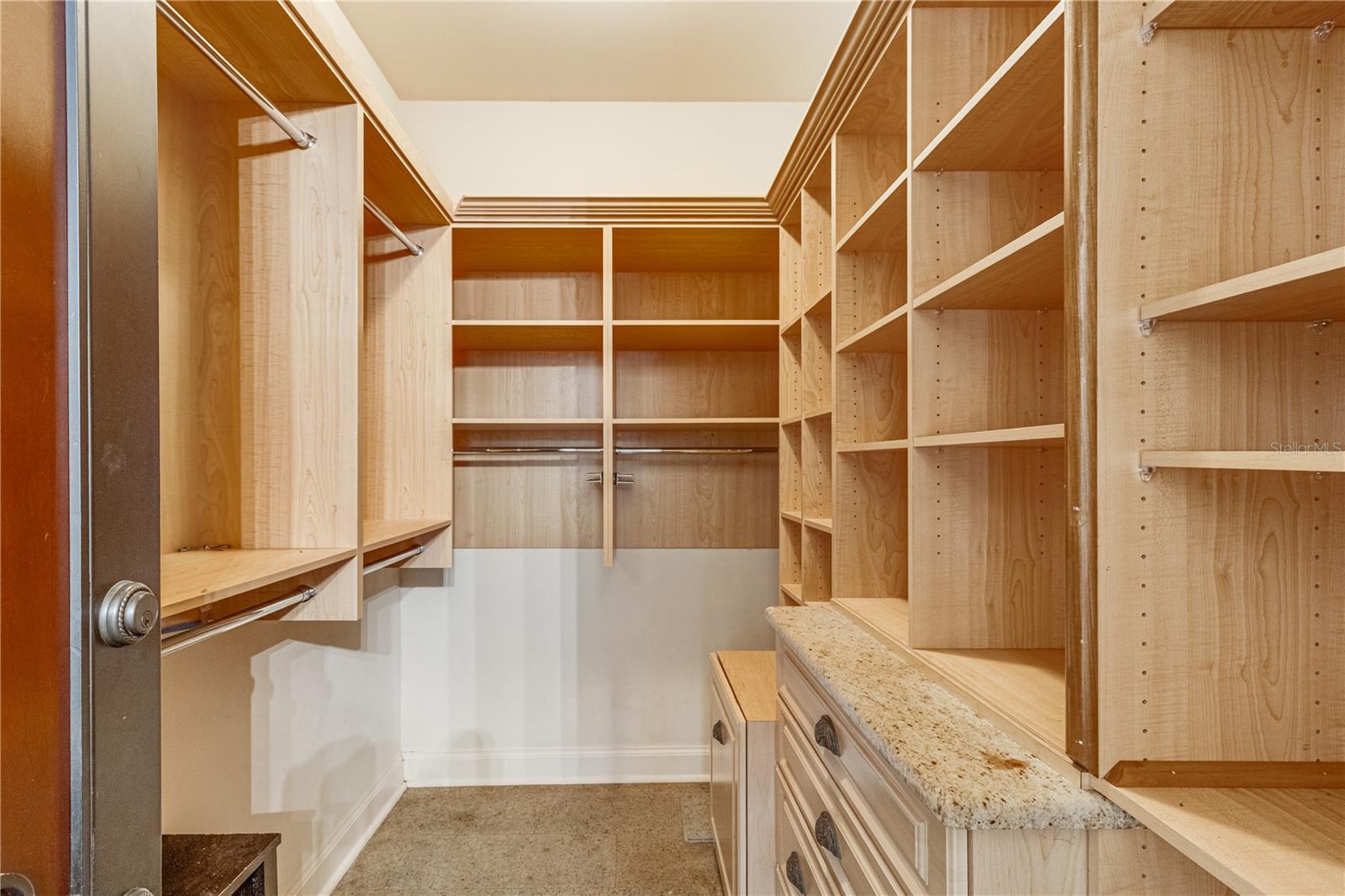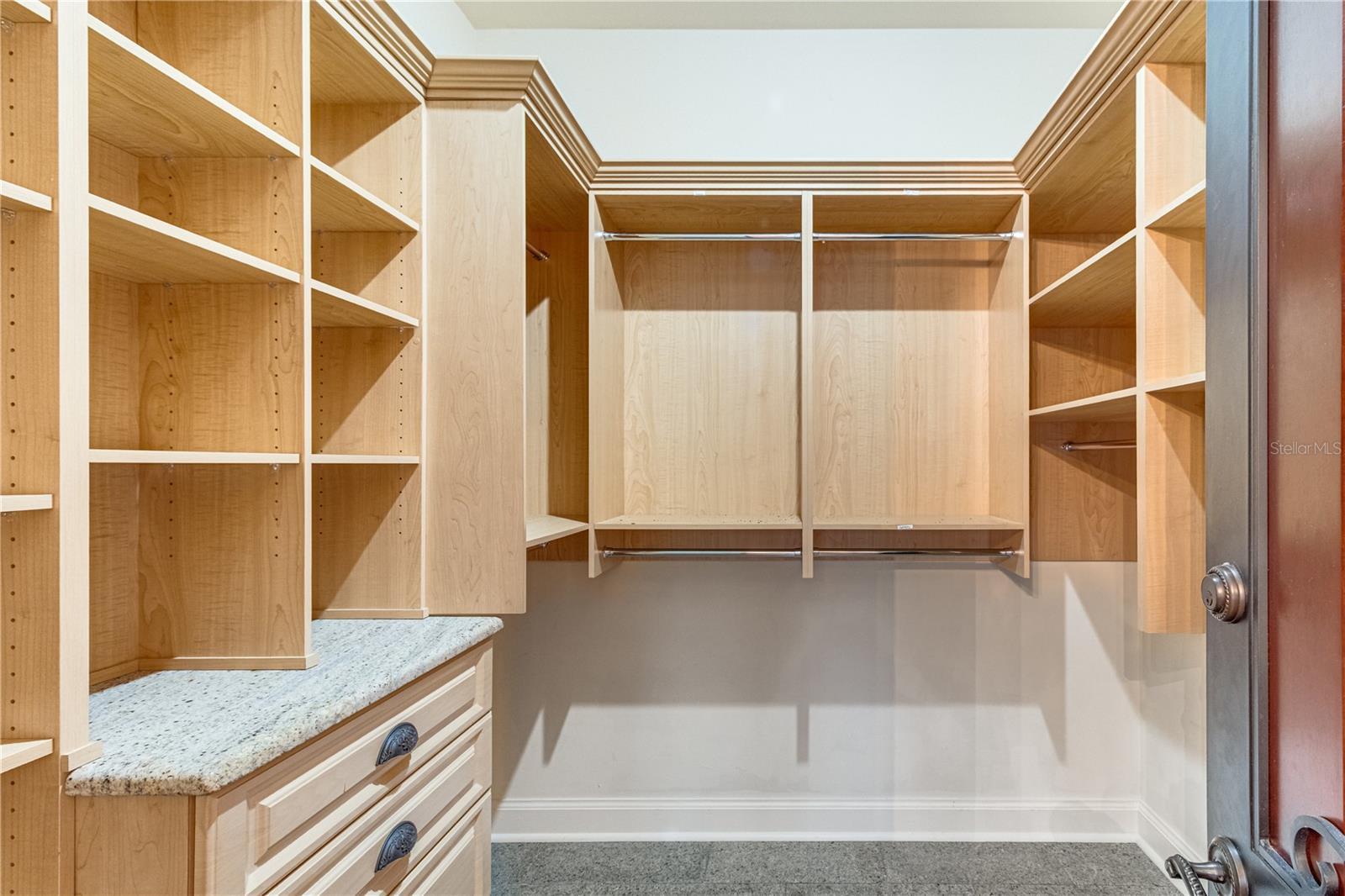 - Built-in Features, Cathedral Ceiling(s), Ceiling Fans(s), Coffered Ceiling(s), Crown Molding, Dry Bar, Eat-in Kitchen, High Ceilings, Kitchen/Family Room Combo, L Dining, Open Floorplan, Primary Bedroom Main Floor, Solid Wood Cabinets, Split Bedroom, Stone Counters, Thermostat, Tray Ceiling(s), Vaulted Ceiling(s), Walk-In Closet(s), Wet Bar, Window Treatments