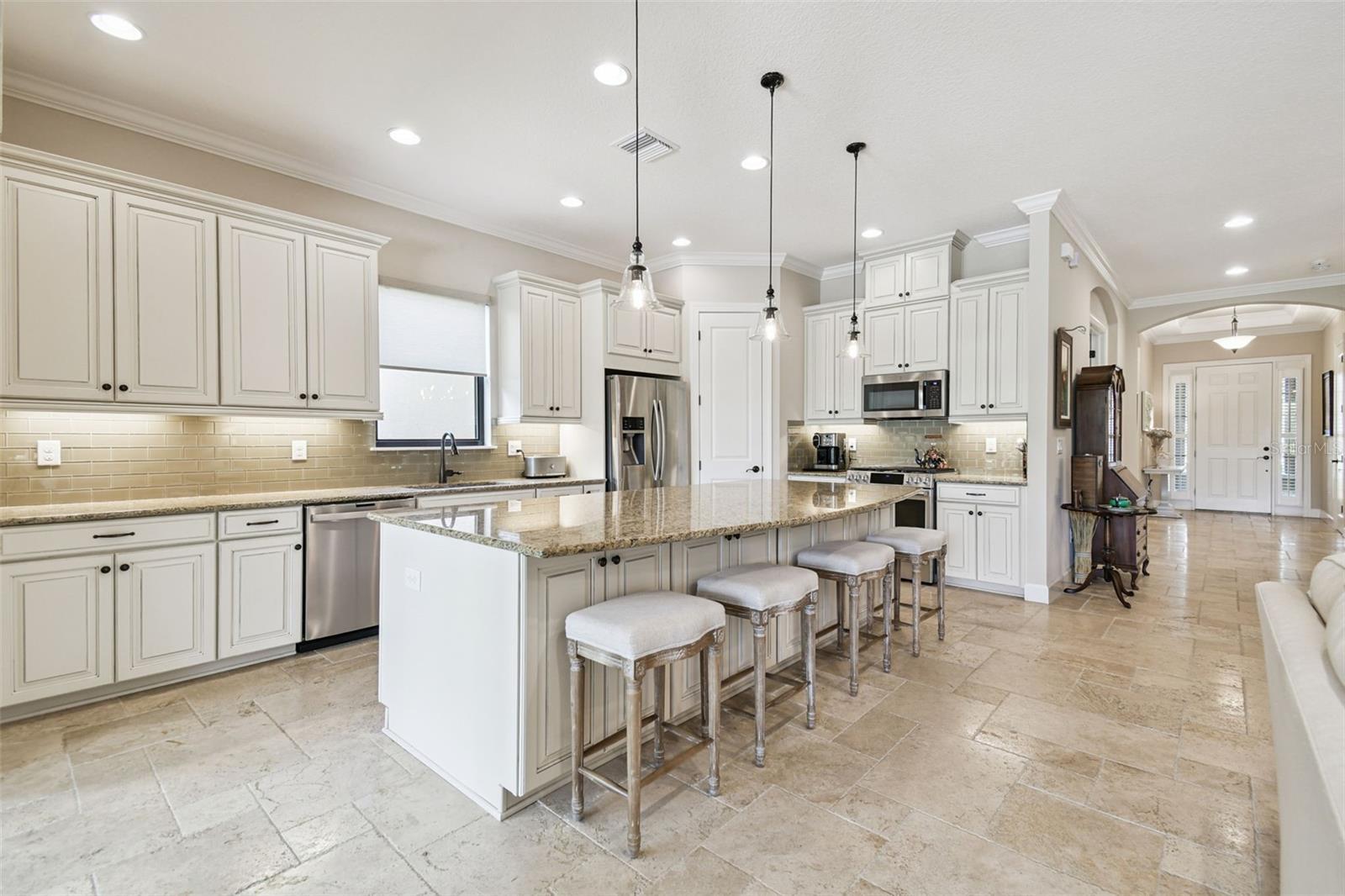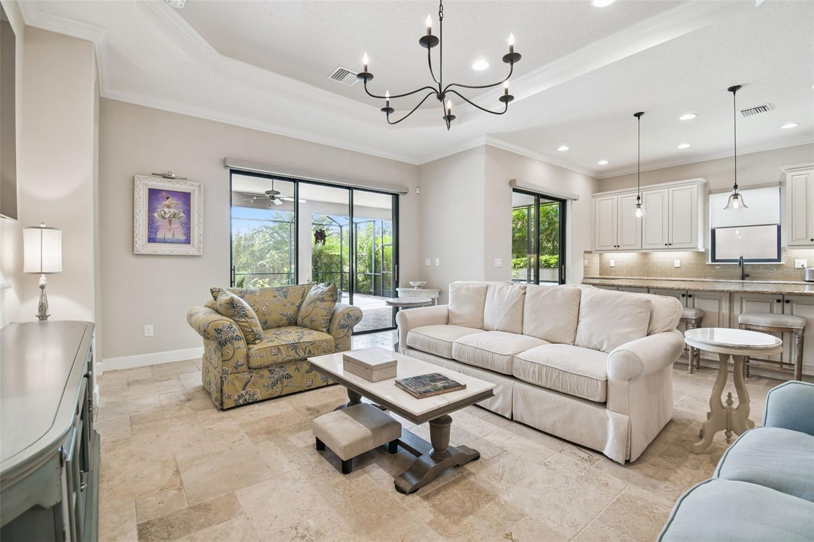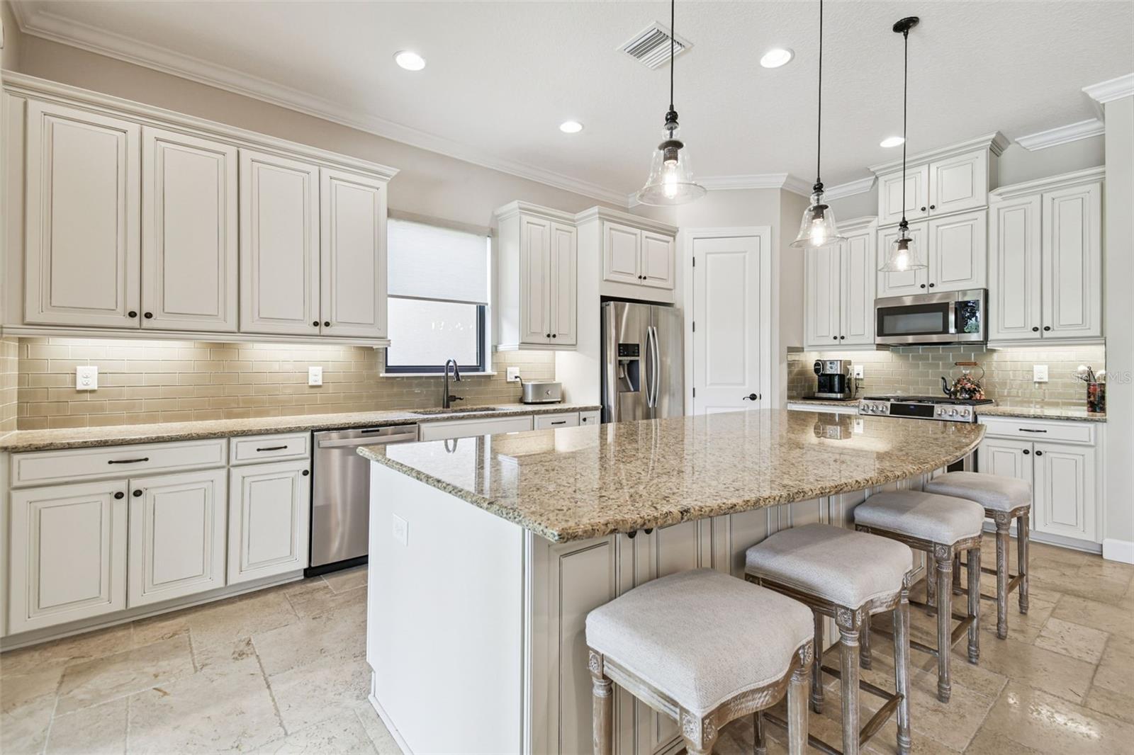 Luxury meets tranquility in this stunning home located in the exclusive GATED community of Esplanade of Tampa! Built by Taylor Morrison, this thoughtfully designed home combines timeless craftsmanship, modern upgrades, and a true sense of privacy with its CUL-DE-SAC location and peaceful CONSERVATION VIEWS. Curb appeal shines from the moment you arrive, featuring FRESH EXTERIOR PAINT (2025), lush landscaping, and a NEWLY SEALED brick paver driveway. Enjoy the convenience of INCLUDED LAWN MAINTENANCE and NO CDD fees in one of the most desirable communities in New Tampa! Step inside to discover a beautiful and well maintained interior with HIGH-END TRAVERTINE FLOORING throughout, plantation shutters, and custom Hunter Douglas roller shades. The open and inviting floor plan offers 3 SPACIOUS BEDROOMS, an office/den with French doors, 3 full bathrooms, and a 2-car garage with attic pulldown stairs and flooring for additional storage. The entertaining kitchen impresses with GE Cafe series appliances, elegant cabinetry, thick granite countertops, glass tile backsplash, a natural gas range and massive center island. The expansive owner’s suite is a private retreat, offering a LARGE CUSTOM WALK-IN CLOSET WITH BUILT-INS, a luxurious ensuite bathroom with dual vanities and a spacious walk-in shower. The large laundry room offers built in cabinetry for ample storage space and organization. Step through the sliding glass doors to your private backyard oasis, complete with a sparkling PRIVATE POOL and SPA, brick paver pool deck, rescreened in 2023, and a FULLY FENCED YARD surrounded by lush greenery and total PRIVACY. The covered lanai provides the perfect space for outdoor dining, lounging, or simply unwinding while taking in the peaceful conservation views. This home was designed for both comfort and quality, featuring a tankless gas water heater, hurricane shutters, in-wall pest control, energy-efficient construction, and a TILE ROOF built to stand the test of time. Residents of Esplanade of Tampa enjoy access to premier resort-style amenities including tennis and pickleball courts, two dog parks, a clubhouse with fitness center, community pool with cabanas, social events, fire pit, and more, all with no age restrictions and no CDD fees! Conveniently located near I-75, I-275, TOP-RATED MEDICAL FACILITIES, Wiregrass Mall, Tampa Premium Outlets, The Grove, and some of Tampa Bay’s most popular dining and entertainment destinations, this home offers the perfect blend of luxury, comfort, and convenience. Why wait for new construction when this home offers all the luxury, upgrades, and tranquility of a new build without the wait? Esplanade of Tampa is fully established and has a beautifully maintained community ready to enjoy today. This exquisite home is a true gem offering privacy, elegance, and the ultimate Florida lifestyle in one of the most sought-after communities in the area.