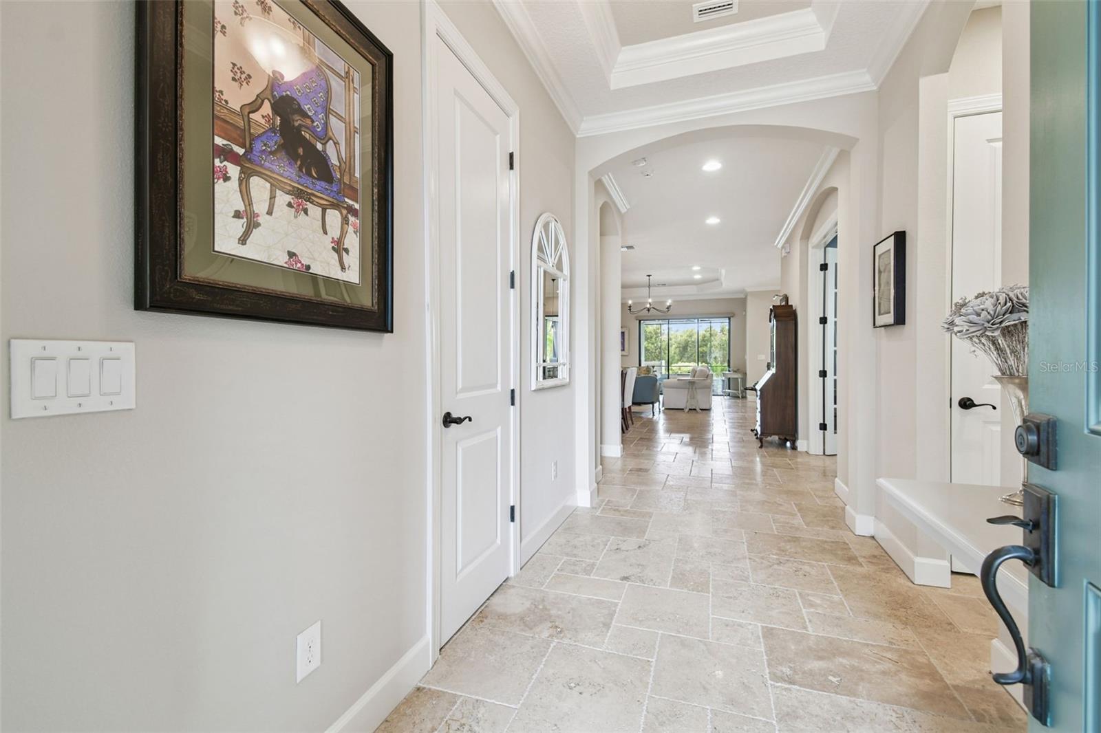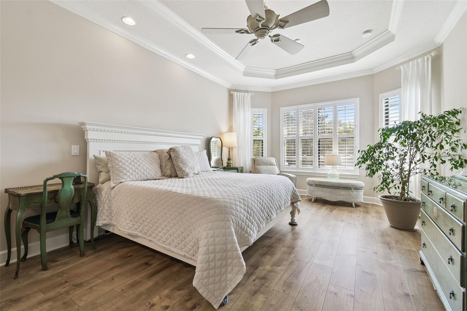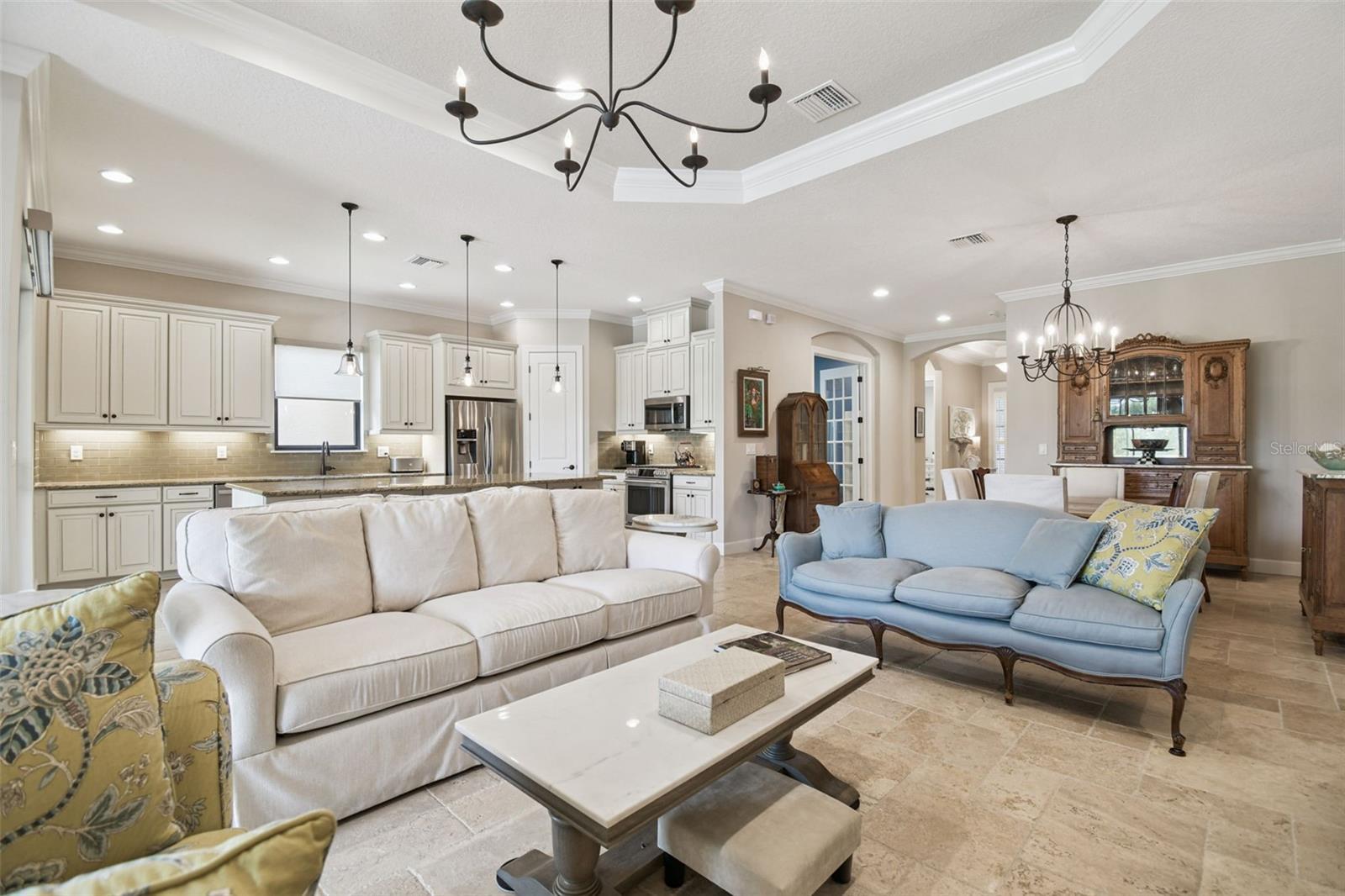 Luxury meets tranquility in this stunning home located in the exclusive GATED community of Esplanade of Tampa! Built by Taylor Morrison, this thoughtfully designed home combines timeless craftsmanship, modern upgrades, and a true sense of privacy with its CUL-DE-SAC location and peaceful CONSERVATION VIEWS. Curb appeal shines from the moment you arrive, featuring FRESH EXTERIOR PAINT (2025), lush landscaping, and a NEWLY SEALED brick paver driveway. Enjoy the convenience of INCLUDED LAWN MAINTENANCE and NO CDD fees in one of the most desirable communities in New Tampa! Step inside to discover a beautiful and well maintained interior with HIGH-END TRAVERTINE FLOORING throughout, plantation shutters, and custom Hunter Douglas roller shades. The open and inviting floor plan offers 3 SPACIOUS BEDROOMS, an office/den with French doors, 3 full bathrooms, and a 2-car garage with attic pulldown stairs and flooring for additional storage. The entertaining kitchen impresses with GE Cafe series appliances, elegant cabinetry, thick granite countertops, glass tile backsplash, a natural gas range and massive center island. The expansive owner’s suite is a private retreat, offering a LARGE CUSTOM WALK-IN CLOSET WITH BUILT-INS, a luxurious ensuite bathroom with dual vanities and a spacious walk-in shower. The large laundry room offers built in cabinetry for ample storage space and organization. Step through the sliding glass doors to your private backyard oasis, complete with a sparkling PRIVATE POOL and SPA, brick paver pool deck, rescreened in 2023, and a FULLY FENCED YARD surrounded by lush greenery and total PRIVACY. The covered lanai provides the perfect space for outdoor dining, lounging, or simply unwinding while taking in the peaceful conservation views. This home was designed for both comfort and quality, featuring a tankless gas water heater, hurricane shutters, in-wall pest control, energy-efficient construction, and a TILE ROOF built to stand the test of time. Residents of Esplanade of Tampa enjoy access to premier resort-style amenities including tennis and pickleball courts, two dog parks, a clubhouse with fitness center, community pool with cabanas, social events, fire pit, and more, all with no age restrictions and no CDD fees! Conveniently located near I-75, I-275, TOP-RATED MEDICAL FACILITIES, Wiregrass Mall, Tampa Premium Outlets, The Grove, and some of Tampa Bay’s most popular dining and entertainment destinations, this home offers the perfect blend of luxury, comfort, and convenience. Why wait for new construction when this home offers all the luxury, upgrades, and tranquility of a new build without the wait? Esplanade of Tampa is fully established and has a beautifully maintained community ready to enjoy today. This exquisite home is a true gem offering privacy, elegance, and the ultimate Florida lifestyle in one of the most sought-after communities in the area.
