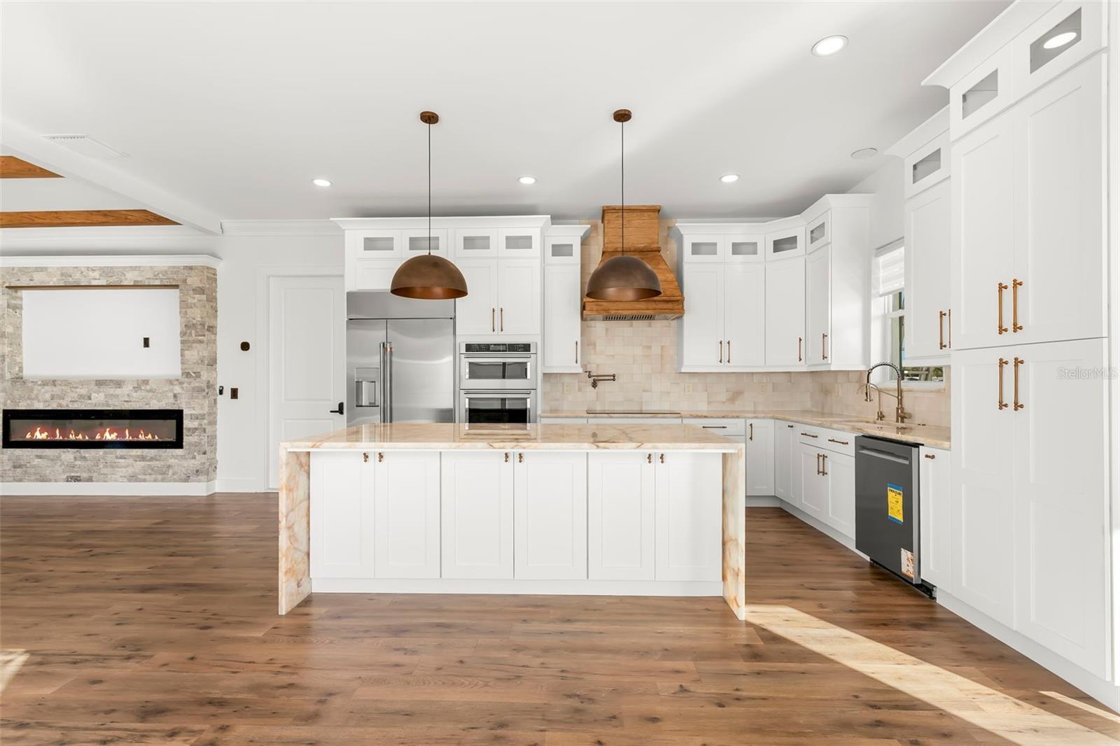 Price just adjusted by 100K! Welcome to 3426 Channelside in Safety Harbor and this exceptional brand-new custom residence that was just completed and ready to move into! Located mins from Mease Hospital. Perfectly situated on a spacious 0.25-acre lot on a tranquil canal in one of Tampa Bay’s most desirable towns—Safety Harbor. Offering over 3,448 sq. ft. of living space with 4 bedrooms, 4 full baths and 3 car garage with more than 5,000 sq. ft. under roof, this home was designed with both elegance and functionality in mind. Built high and dry to the latest building and safety codes, it features energy-efficient hurricane-rated windows, sliders, and doors throughout. The thoughtful floor plan includes two expansive primary suites, 2 additional bedrooms, and four full bathrooms across two levels, creating an ideal setting for multi-generational living or those seeking a luxurious retreat. As you arrive, you’ll be captivated by the home’s impressive curb appeal—complete with a large driveway accented by California design stone inlay, lush landscaping, and a three-car garage. The travertine walkway leads to large front porch and double front doors beneath a striking tongue-and-groove wood ceiling, complemented by cable railing systems and travertine porches that hint at the craftsmanship inside. Step into the open-concept great room where soaring beam-accented ceilings and a stacked-stone electric fireplace create a stunning focal point. Engineered hardwood flooring flows seamlessly into the chef’s kitchen, which showcases a massive waterfall quartzite island with backlit LED accents, abundant custom cabinetry, designer tile backsplash, and top-of-the-line GE Café refrigerator, a built-in oven, microwave, electric cooktop with pot filler, and custom vent hood. The adjoining dining area opens through sliders to the pool deck, covered porch area and backyard, creating effortless indoor-outdoor living. On the main level, one of two primary suites offers a serene escape with a spacious walk-in closet, spa-like en suite featuring double vanities, designer tile, oversized shower, water closet, and a private laundry area with full size washer and dryer hookups. A full pool bath with deck access adds convenience. Upstairs, a stylish loft leads to the second primary suite, complete with sliders to a private deck overlooking the canal, two walk-in closets with custom cabinetry, and a luxurious en suite with double vanities, designer finishes, freestanding tub, oversized European-tiled shower with dual showerheads, and a smart toilet. Two additional upstairs bedrooms share a well-appointed bathroom and each enjoy walk-in closets, ceiling fans, and access to a front balcony. Outdoor living is equally impressive with a sparkling pool and expansive travertine deck, ideal for entertaining or quiet relaxation. This prime location is just minutes from Mease Countryside Hospital, top-rated schools, waterfront parks, Safety Harbor Resort & Spa, vibrant downtown shops and restaurants, and only 20 minutes to Honeymoon Island and St. Pete–Clearwater Airport, with Tampa International just 25 minutes away. This extraordinary property offers peace of mind, modern efficiency, and a one-of-a-kind lifestyle on arguably the best lot in the neighborhood. Don’t miss the opportunity to own a luxury brand new Safety Harbor home that truly has it all—schedule your private showing today!