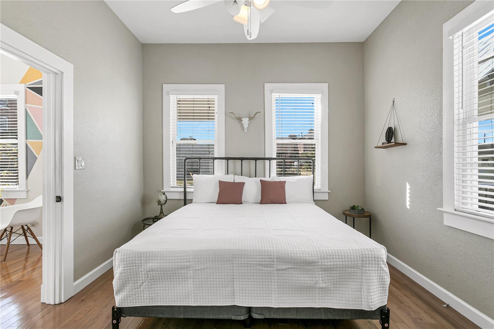 Welcome to 1403 N 22nd St, a beautifully designed and fully furnished 3-bedroom, 1-bath home in the heart of Ybor City. From the moment you step inside, you’ll notice the abundance of natural light streaming through the oversized windows, accentuating the soaring ceilings and creating an airy, inviting atmosphere. Unique design touches set this home apart, including a hand-painted geometric mural and a sleek modern accent wall that bring warmth and personality to the living space. Each of the three bedrooms is generously sized, providing plenty of comfort and versatility. The bathroom is spacious and thoughtfully updated, while the dedicated laundry room adds everyday convenience. Step outside to enjoy a fully fenced backyard, perfect for relaxing or entertaining, and ideal for four-legged friends—yes, this home is dog-friendly. Located just a couple blocks from Ybor’s vibrant 7th Avenue, you’ll have easy access to endless dining, shopping, and entertainment options, all while enjoying the comfort of a thoughtfully curated home with great energy throughout.