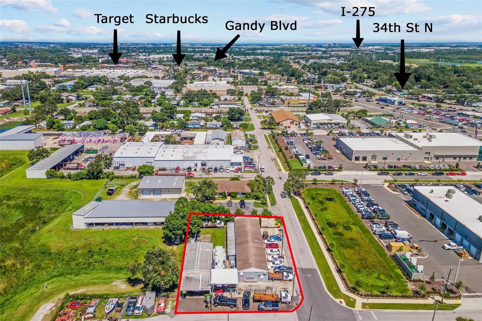 Price Update!! Prime 6,960 SF commercial property on a corner lot near I-275 & FL-694. Two separate buildings with offices, 4 baths (incl. shower), canopy for RVs/trucks, multiple garage doors, and gated + open parking. Zoned M-1 Light Industrial with excellent visibility and access to retail, dining, and major highways. Perfect for investors or growing businesses.