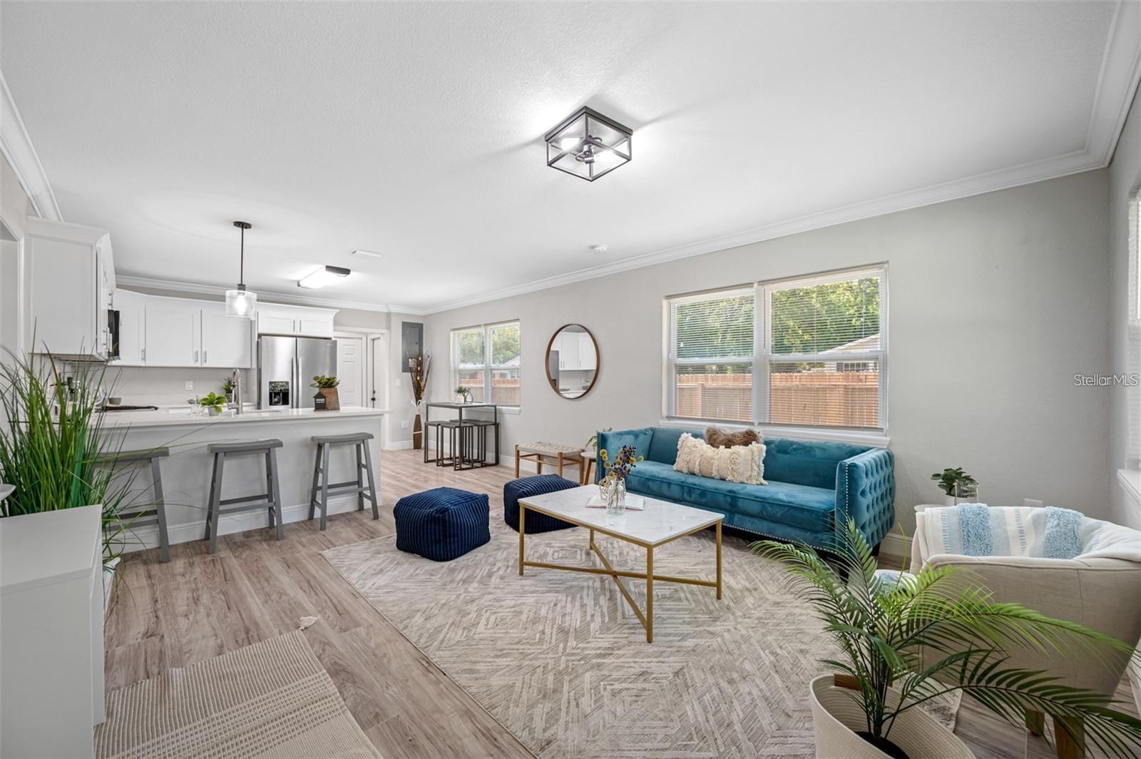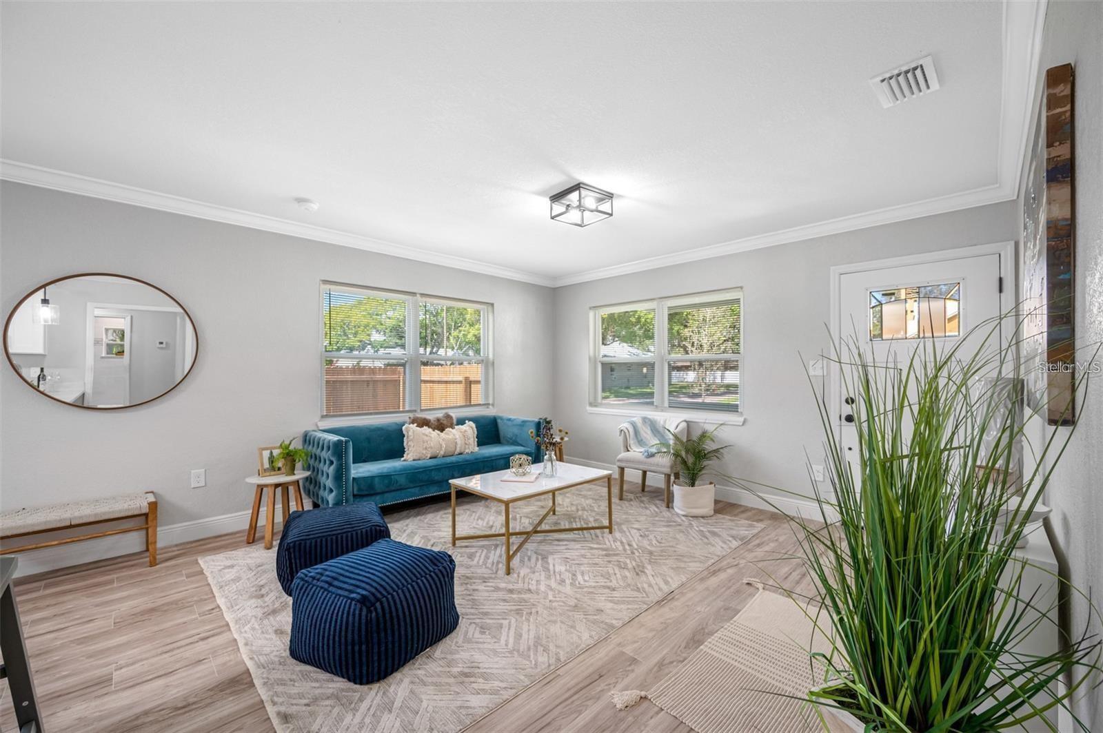 This inviting 3-bedroom, 2-bathroom residence is situated on a spacious corner lot in the sought-after Seminole Heights neighborhood. Enjoy an abundance of natural light streaming through large windows, highlighting the beautiful vinyl flooring throughout. The property features a fully fenced yard, perfect for pets or outdoor activities, and includes essential amenities such as a washer and dryer for your convenience. Feel secure with a built-in security system, and relax knowing that bi-weekly lawn maintenance is included. Washer & Dryer included. AVAILABLE DEC 2025 350 non-refundable pet deposit. Showing available upon verification of income and employment. Available for move in December 2025. 1 year minimum.
