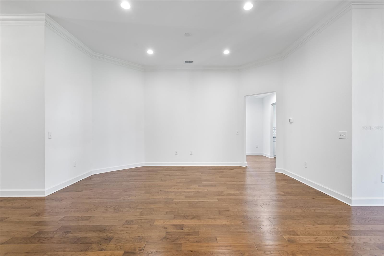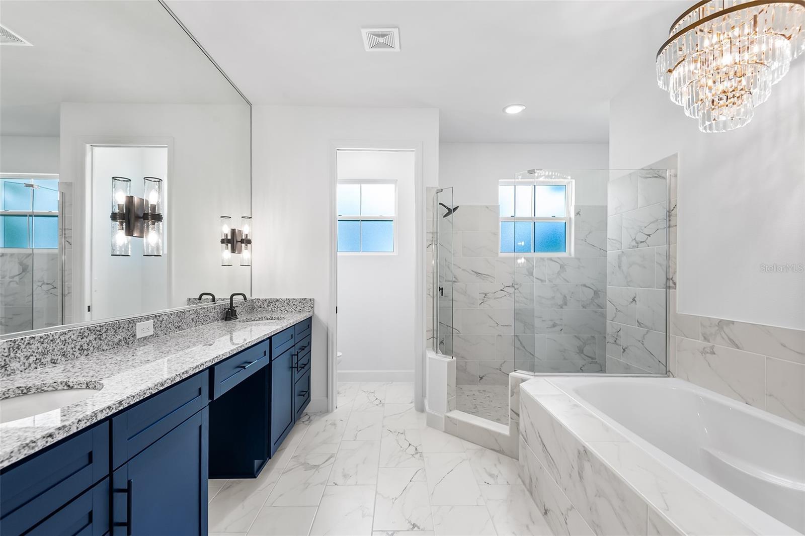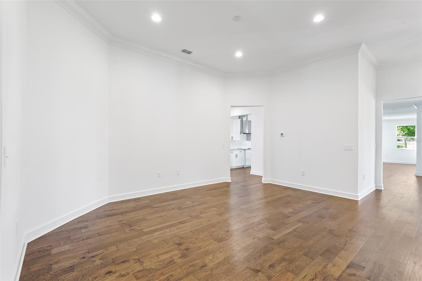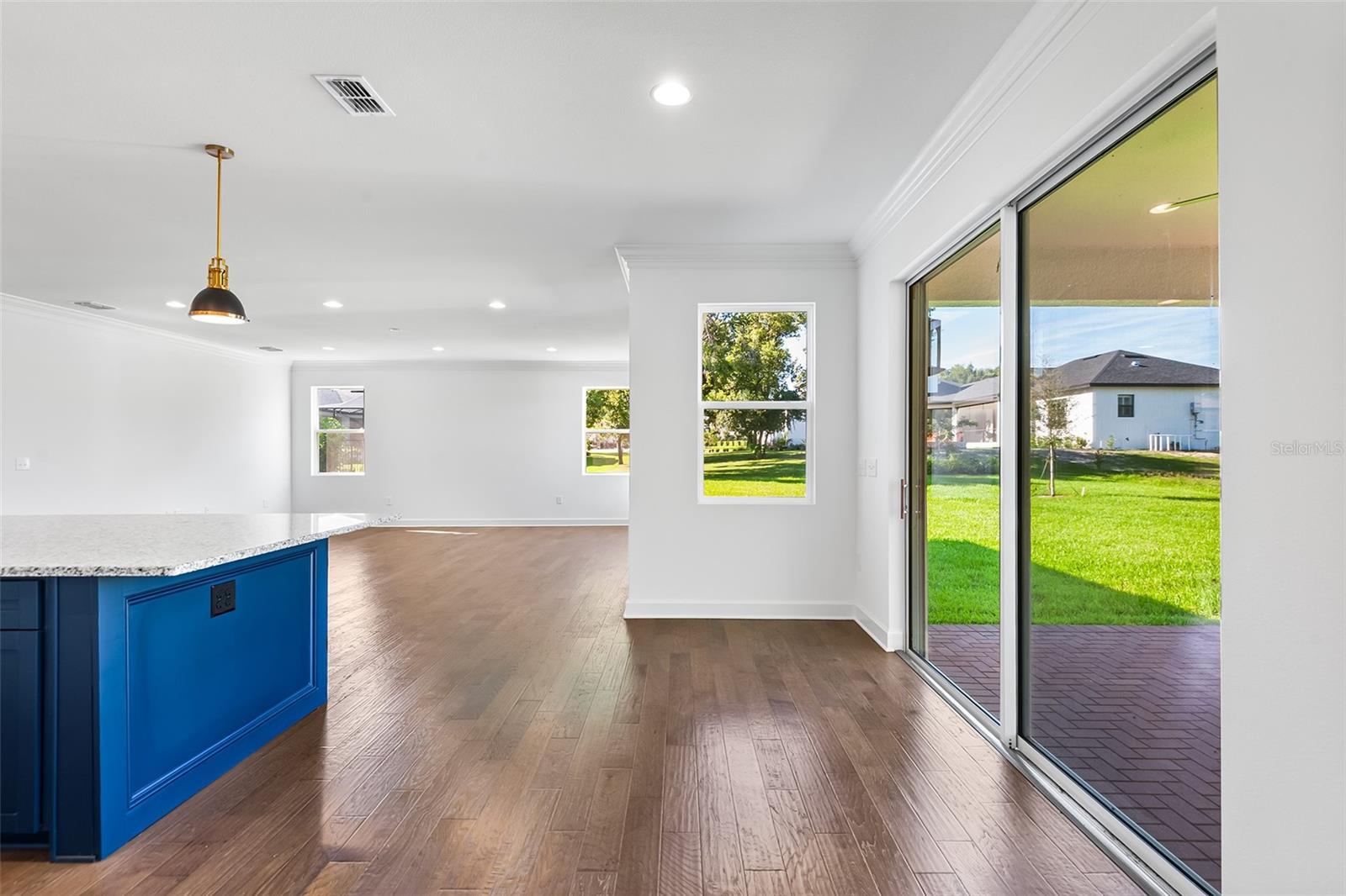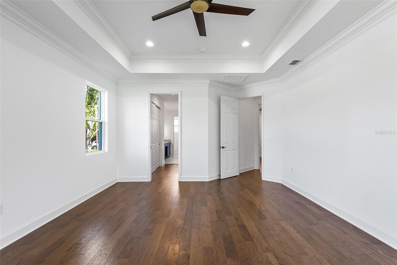 - Attic Ventilator, Crown Molding, Eat-in Kitchen, Living Room/Dining Room Combo, Open Floorplan, Primary Bedroom Main Floor, Split Bedroom, Stone Counters, Thermostat, Vaulted Ceiling(s), Walk-In Closet(s)