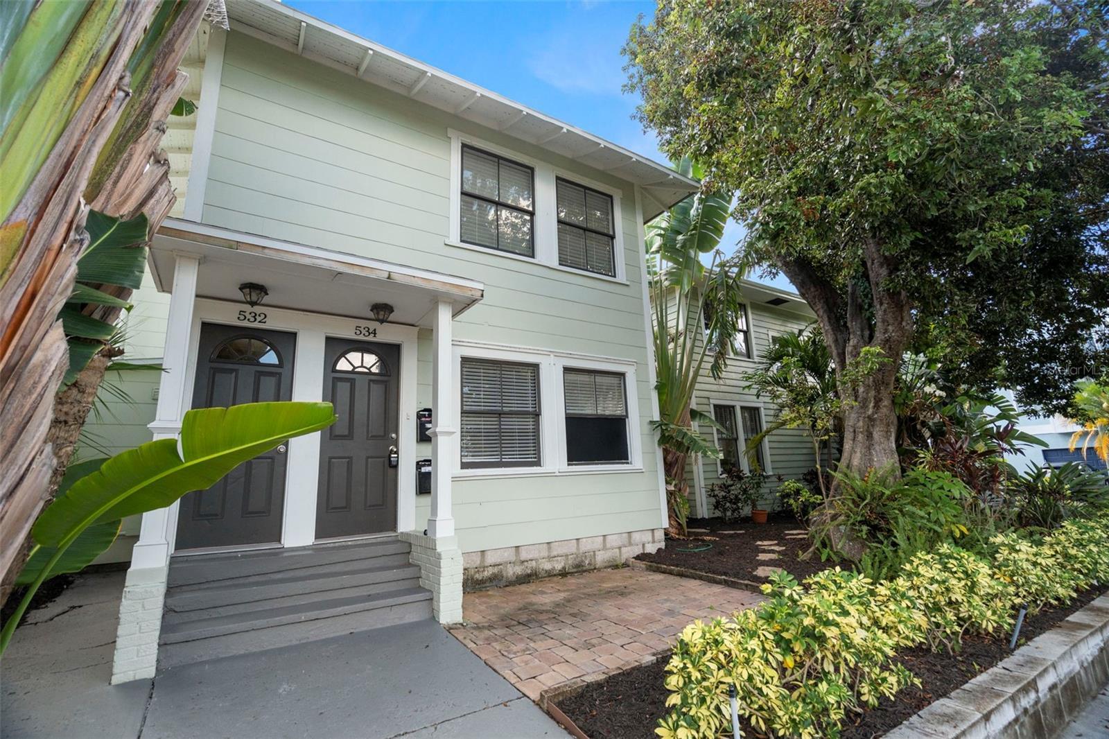 Great property for investment or to make your own and have great income producing units. Located in the Historic Uptown and very close to Downtown St Petersburg. There are two buildings located on this tropically landscaped lot. The property consists of a 3 Bed, 1-1/2 Bath stand-alone home in the front that is 1,152 SF. Plus a one car garage with washer and dryer hook up. A beautiful, covered porch with Cuban tile, decorative original hardwood floors, built-ins, pantry, and an outdoor courtyard space located between the 2 buildings. The second building is a duplex. The upper unit (532) is 1,055 SF with 2 or 3 Bedrooms, 1 Bath. It has large living and dining area, Crown molding, and granite counters The Lower Unit (534) is 870 SF with 2 Bedrooms, 1 Bath with an enclosed porch that can be a den or a home office. There are wood floors throughout, granite counters and a claw foot tub. Both units have inside laundry. A great benefit is that a new roof was installed June of 2022 on the back building and a new roof installed on Main house and in December of 2024. This is a tenant occupied property so please do not approach the residence living at the house The Garage is for storage only. The floor cannot support a car.