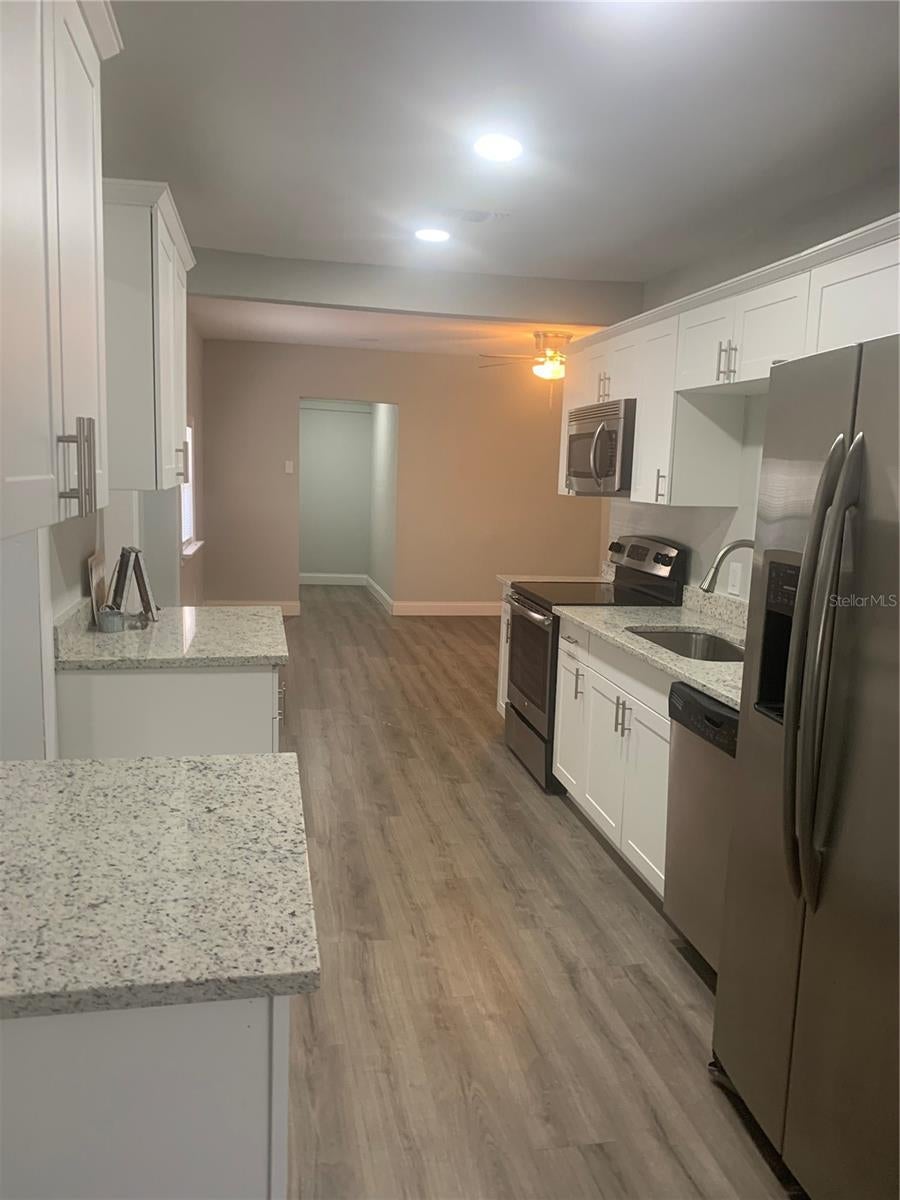 Move in Ready 3 bedroom/2 and 1/2 bath remodeled home in the heart of St. Petersburg. Super cute open floorplan with brand new shaker cabinets in the kitchen with granite counter tops and Stainless steel appliances. Plenty of storage in utility pantry off the kitchen with a washer and dryer hook up in the main hall bath. The master suite has a private bathe with a spacious walk in shower. Wood plank vinlyl flooring throughout for easy clean up. The guest bedrooms share a Jack and Jill style 1/2 bath. Small eating space off kitchen leads to a wood deck overlooking a huge back yard. Plenty of room for entertaining here. Close to I-275. 10 minute walk to Downtown St. Petersburg, Don't miss out. Call today.