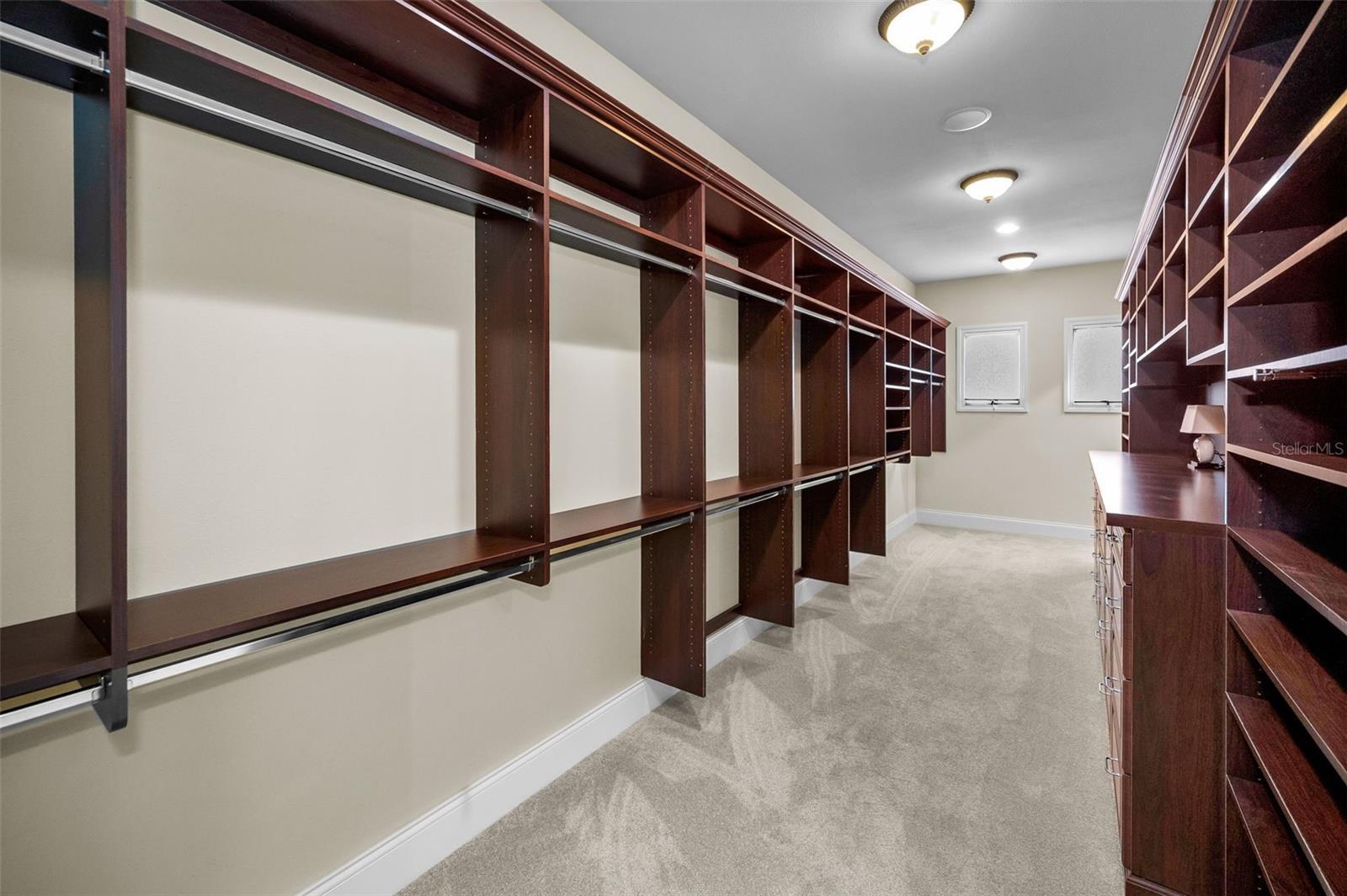 - Built-in Features, Ceiling Fans(s), Coffered Ceiling(s), Crown Molding, Eat-in Kitchen, High Ceilings, Kitchen/Family Room Combo, Living Room/Dining Room Combo, Open Floorplan, PrimaryBedroom Upstairs, Solid Surface Counters, Solid Wood Cabinets, Split Bedroom, Walk-In Closet(s), Window Treatments