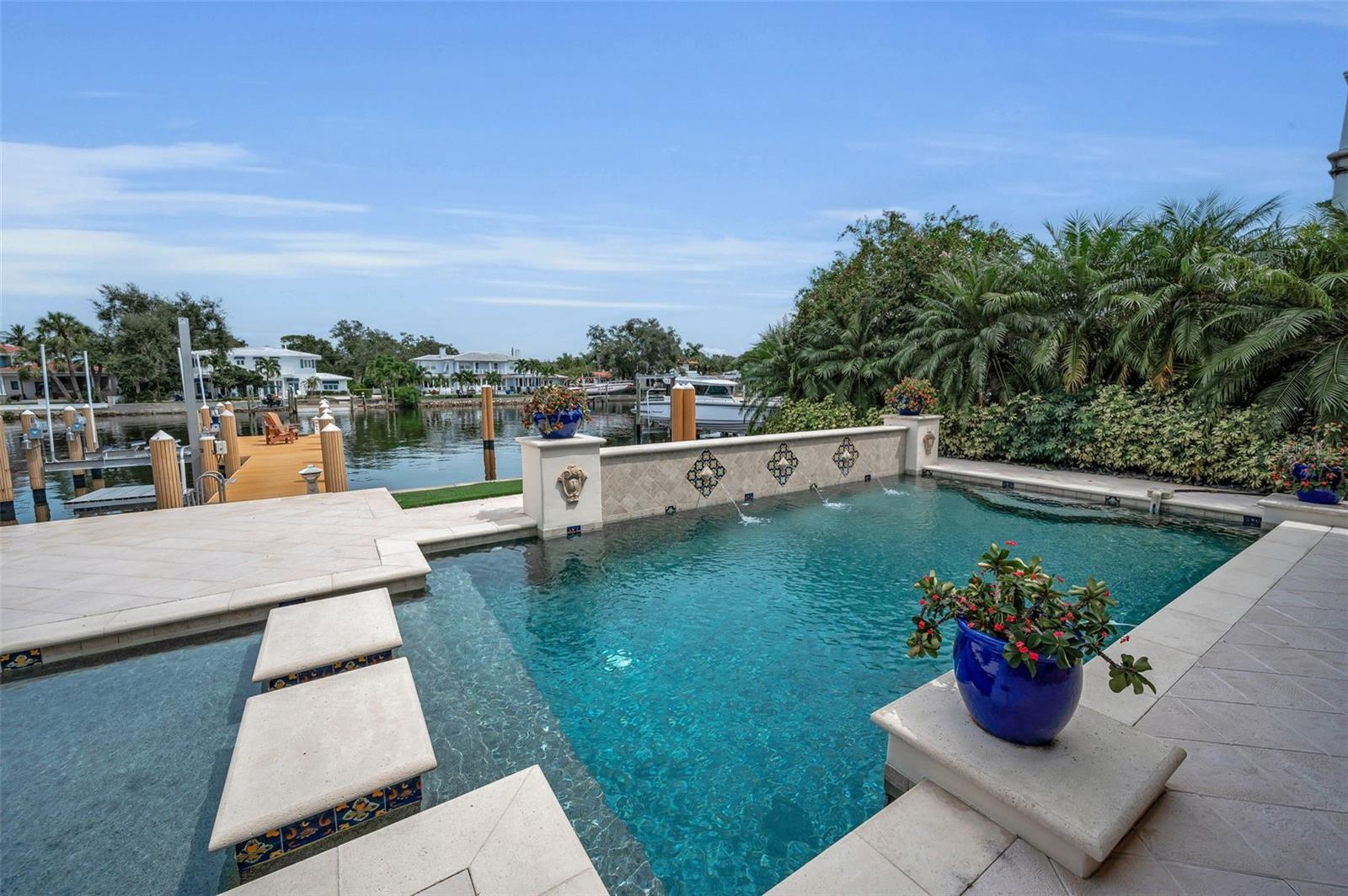 One or more photo(s) has been virtually staged. Welcome to the crown jewel of Snell Isle—where timeless elegance meets modern luxury on one of the most prestigious waterfront streets in all of Pinellas County. Built in 2005 by award-winning Windstar Homes, this 5,834 sq. ft. stunner is more than a home—it’s a lifestyle statement. Located on a deep protected canal with direct access to open Tampa Bay. From the moment you enter into the private courtyard, complete with a bubbling fountain, you’ll know this is something special. Inside, high ceilings, rich finishes, and sun-drenched spaces set the tone. An absolute ideal layout with four en-suite bedrooms, a private guest suite, executive study, and a second level bonus room or family room nestled in between the two additional bedrooms. The kitchen is a showstopper—custom cabinetry, gleaming granite, Wolf appliances, and a double Sub-Zero fridge all flowing effortlessly into the family room, where walls of glass frame postcard-worthy views of the pool, dock, and calm canal waters. Upstairs, the primary suite is your personal sanctuary. Sip your morning coffee on the private lanai as the sun rises over the bay. The spa-worthy primary bath was completely reimagined in 2019 with marble floors, luxury fixtures, cabinetry and a massive walk-in closet with its own laundry. Outside, the backyard is pure Florida magic. A fully renovated pool and spa, lush landscaping, and a dock setup for the boating enthusiast—deep water slip for up to 60 feet, a 16,000 lb lift, and a separate lift for your jet skis. And yes, there’s more: a whole-house generator, impact-rated windows and doors, elevator, butler’s pantry, three-car garage, large inside laundry, natural gas, and even a second office or creative workspace tucked just off the kitchen. All of this just minutes from downtown St. Pete, Interstate 275, the Vinoy Golf Club, North Shore Park, and some of the best dining, shopping, and culture in the region. This isn’t just a home—it’s your forever vacation. Be sure to view the beautiful virtual tour.