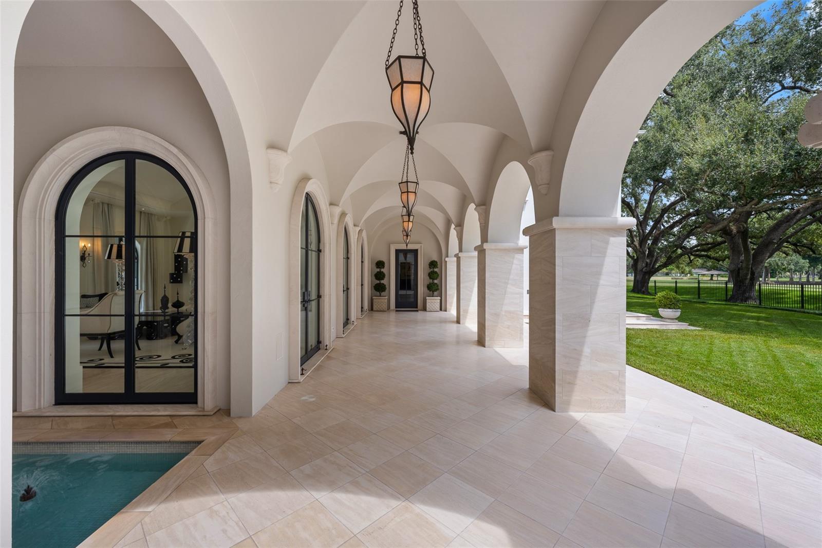 Positioned along 400 feet of beautiful scenic frontage at the Palma Ceia Golf Course, this exceptional South Tampa masterpiece offers impeccably designed living space while outside a flood zone. The gated, treelined estate showcases timeless craftsmanship with a total of nine bedrooms, ten full baths, four half-baths, a detached guest residence, as well as an additional vacant lot all packaged into one offering. The great room is tremendously welcoming as natural light pours through the arched glass doors lining the room, complemented by 15-foot ceilings and the winding grand staircase. Resting in its own private wing of the residence, the primary bedroom is a suite with a substantial dream closet, a separate sitting room and a large balcony overlooking the picturesque backyard green space and golf course. The main kitchen highlights a significant marble island opening to the casual family room, accompanied by a full prep kitchen, stunning butler’s pantry and outdoor kitchen with a brick pizza oven. Additional rooms include three impressive executive offices, a theater room with stadium seating, a fitness center, a 600-plus bottle wine cellar, and an outstanding entertaining parlor enriched by Jack Mayweather handcrafted millwork and coffered ceilings. Key aspects include a timeless slate roof, fully fenced grounds, a three-car garage with two gated circular driveways, a full home generator, two elevators, and a state-of-the-art audio, video and security system that provides modern comforts as well as peace of mind. The outdoor living experience is defined by romantic stone archways, manicured gardens, gas lanterns, Pecky Cypress ceilings, multiple covered balconies, lanai spaces and artistic fountains placed around the grounds. The 48-foot-long, heated saltwater pool and spa are paired with a covered cabana area and an expansive backyard, all while overlooking dramatic views of the golf course. Conveniently in the heart of South Tampa in a top-rated public school district, this location is central to Hyde Park Village, Bayshore Boulevard, downtown Tampa and Tampa International Airport.