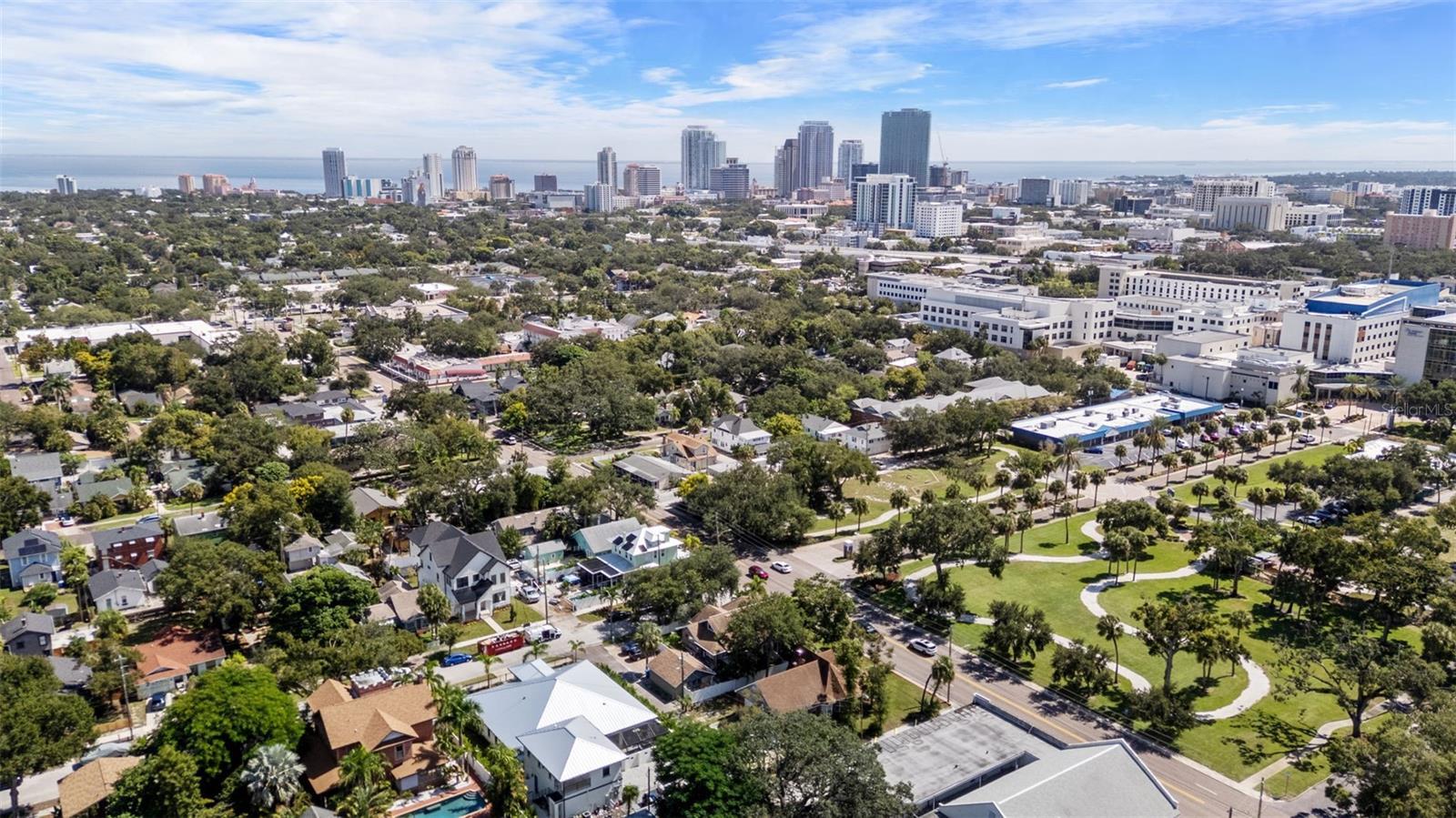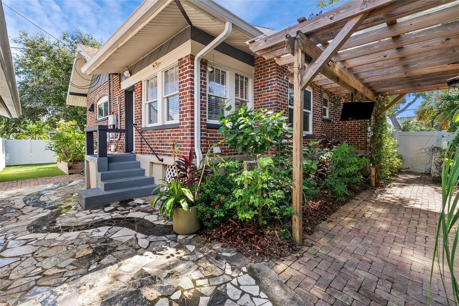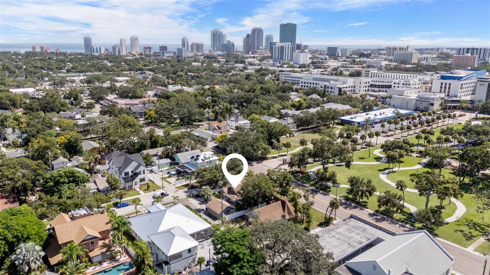 Modern Charm Greets Awaits You In This Beautifully Upgraded, Move-In Ready Home! The Kitchen Renovation was Designed for the Chef at Heart, Quartzite Slab Countertops, Voice Activated Farmhouse Faucet, Top-Of-The-Line Samsung Bluetooth Appliances, Custom Range Hood, and A Handcrafted Backsplash. Bask in the Luxurious Master Suite, Complete with Ensuite Bath Presenting Hotel-Style Finishes. The First Floor Showcases Solid Oak Floors, Three Bedrooms, A Spacious Family Room with A Wood-Burning Fireplace, A Sunroom/Office with Gallery Lighting to Spotlight Personal Treasures, and a Utility/Mudroom, with Expanded Storage Options, Adding a Ton Functionality to This One-Of-A-Kind Masterpiece. The Striking Wood Staircase Leads to the Master Addition, Featuring Bamboo Floors. Enjoy Smart Home Technology, Money-Saving, completely paid off, 4.2 Kw Solar Panels, And Countless Updates: Hurricane-Rated Windows, 2015 Roof, 2016 AC, Vinyl Fencing, and More. Detached Two-Car Garage with a Grandfathered In 1/2 Bath, Adds the Potential of A Future ADU. Off Street Three-Car Brick Paver Parking. Corner Lot with Solid Brick Construction and Raised Concrete Foundation, and in a NO FLOOD, Non-Evacuation Zone, for Even More Security. Located In The Coveted EUCLID/ST PAUL Neighborhood, Just A Short Walk To Downtown St. Petersburg, USF Campus, Shopping, Parks, The Waterfront, with A Vibrant Scene of Music, Art, and Dining. Entertain Under The Massive Pergola While Taking In The Natural Beauty Of Your New St Pete Home! Note: Noise is Never an issue, Ambulances Enter From 5th Avenue, Not 9th.