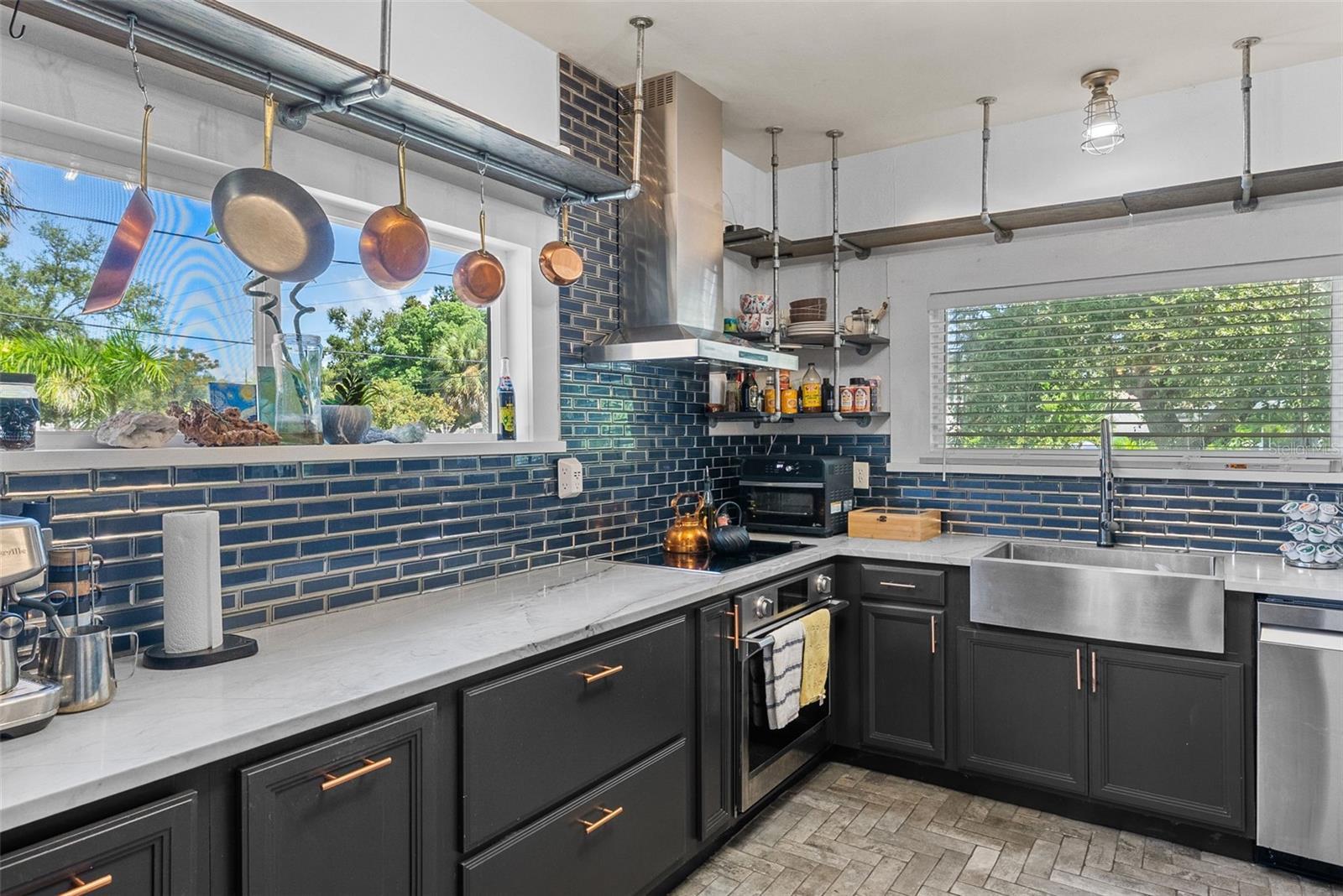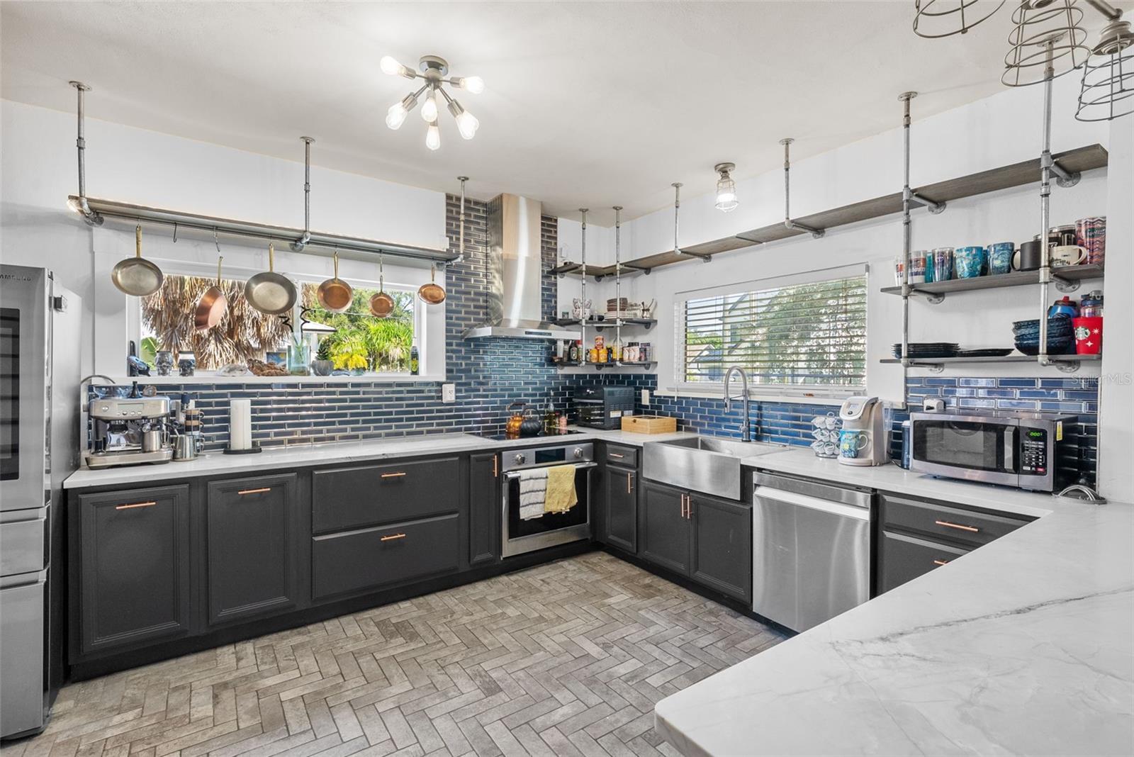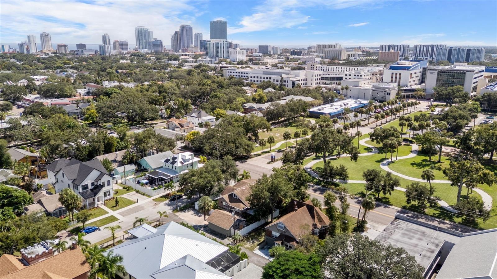Modern Charm Greets Awaits You In This Beautifully Upgraded, Move-In Ready Home! The Kitchen Renovation was Designed for the Chef at Heart, Quartzite Slab Countertops, Voice Activated Farmhouse Faucet, Top-Of-The-Line Samsung Bluetooth Appliances, Custom Range Hood, and A Handcrafted Backsplash. Bask in the Luxurious Master Suite, Complete with Ensuite Bath Presenting Hotel-Style Finishes. The First Floor Showcases Solid Oak Floors, Three Bedrooms, A Spacious Family Room with A Wood-Burning Fireplace, A Sunroom/Office with Gallery Lighting to Spotlight Personal Treasures, and a Utility/Mudroom, with Expanded Storage Options, Adding a Ton Functionality to This One-Of-A-Kind Masterpiece. The Striking Wood Staircase Leads to the Master Addition, Featuring Bamboo Floors. Enjoy Smart Home Technology, Money-Saving, completely paid off, 4.2 Kw Solar Panels, And Countless Updates: Hurricane-Rated Windows, 2015 Roof, 2016 AC, Vinyl Fencing, and More. Detached Two-Car Garage with a Grandfathered In 1/2 Bath, Adds the Potential of A Future ADU. Off Street Three-Car Brick Paver Parking. Corner Lot with Solid Brick Construction and Raised Concrete Foundation, and in a NO FLOOD, Non-Evacuation Zone, for Even More Security. Located In The Coveted EUCLID/ST PAUL Neighborhood, Just A Short Walk To Downtown St. Petersburg, USF Campus, Shopping, Parks, The Waterfront, with A Vibrant Scene of Music, Art, and Dining. Entertain Under The Massive Pergola While Taking In The Natural Beauty Of Your New St Pete Home! Note: Noise is Never an issue, Ambulances Enter From 5th Avenue, Not 9th.