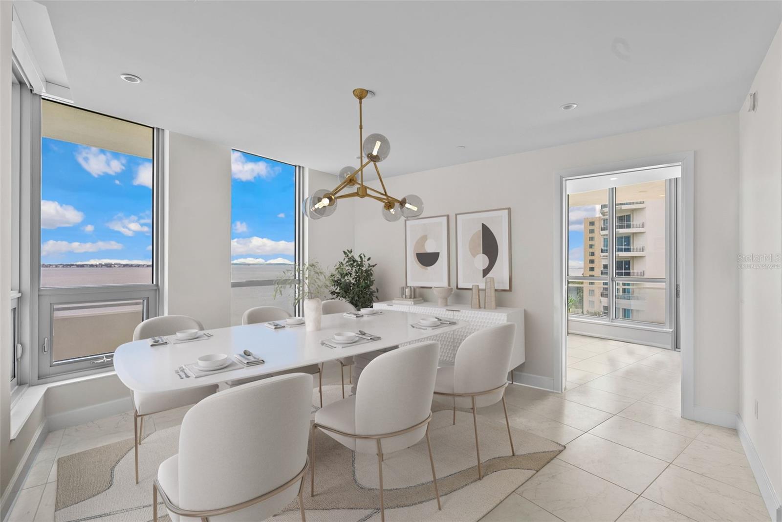 One or more photo(s) has been virtually staged. Don't miss this rare opportunity at VIRAGE BAYSHORE! This gorgeous front Bay-facing 3 bedroom + den/office, 3.5 bath condo boasts sweeping views of Hillsborough Bay and the downtown Tampa skyline. Step off the elevator directly into your private foyer and enter into gorgeous Bay and Bayshore Blvd. views. This home features beautiful porcelain tile throughout the open living area, gorgeous cabinetry, Wolf Induction Cooktop (gas available), Subzero Refrigerator and Pantry with dry bar. This kitchen is open to the light-filled Great Room and perfect for entertaining. The refrigerator located in the storage closet is excluded from the sale. Start the day on the spacious covered terrace, watching the sunrise with a cup of coffee. The Primary Bedroom also has access to the front balcony, a large spa-like bath with an oversized glass shower, separate tub, and a nicely finished custom walk-in closet. The corner den/office has access to the 2nd balcony, and is a great spot for sunsets and views looking South down Bayshore Blvd. Each guest suite has a private ensuite bath and a large walk-in closet. Bonus features include: high ceilings with added recessed lighting, motorized window shades, air conditioned storage closet adjacent to residence, and 2 parking spaces. The Virage is a luxury high-rise featuring 24/7 front desk concierge, resort-style pool overlooking Bayshore, spa, grilling area, fire-pit & social seating, club room, meeting room, a large gym, massage room, private dog walk, dog spa, bike room, air-conditioned storage, and 2 guest suites which can be reserved for your guests. Don't miss this rare opportunity to live the Virage Bayshore lifestyle!