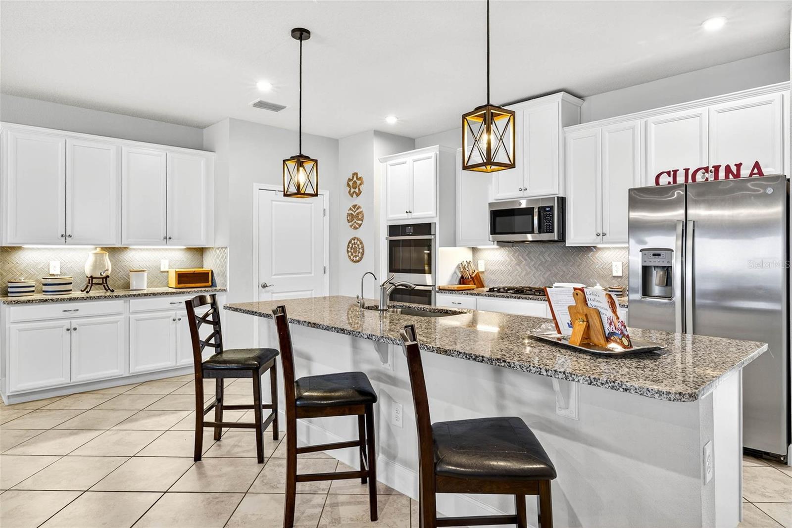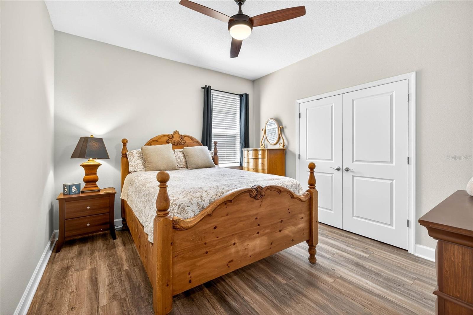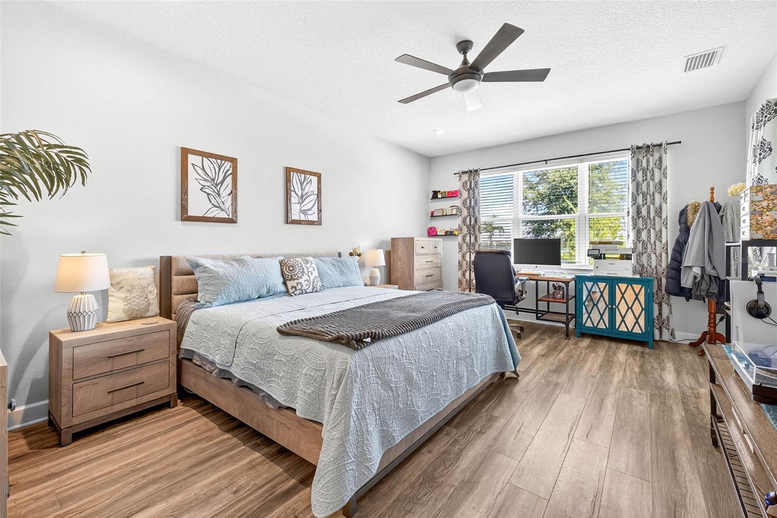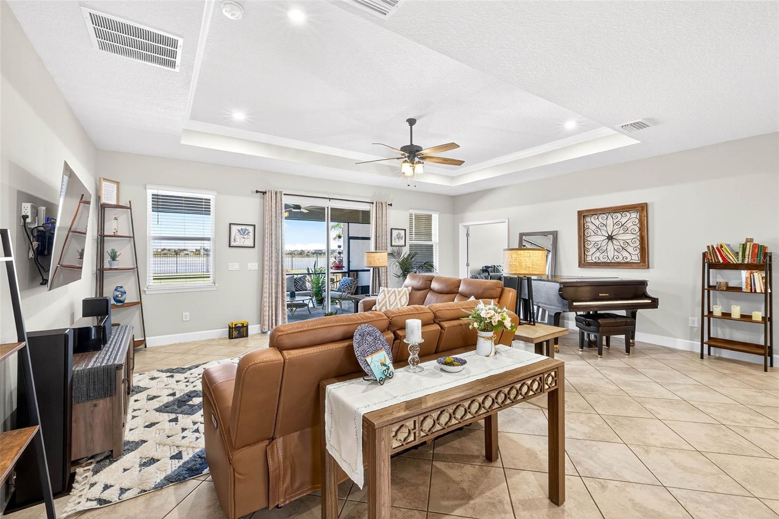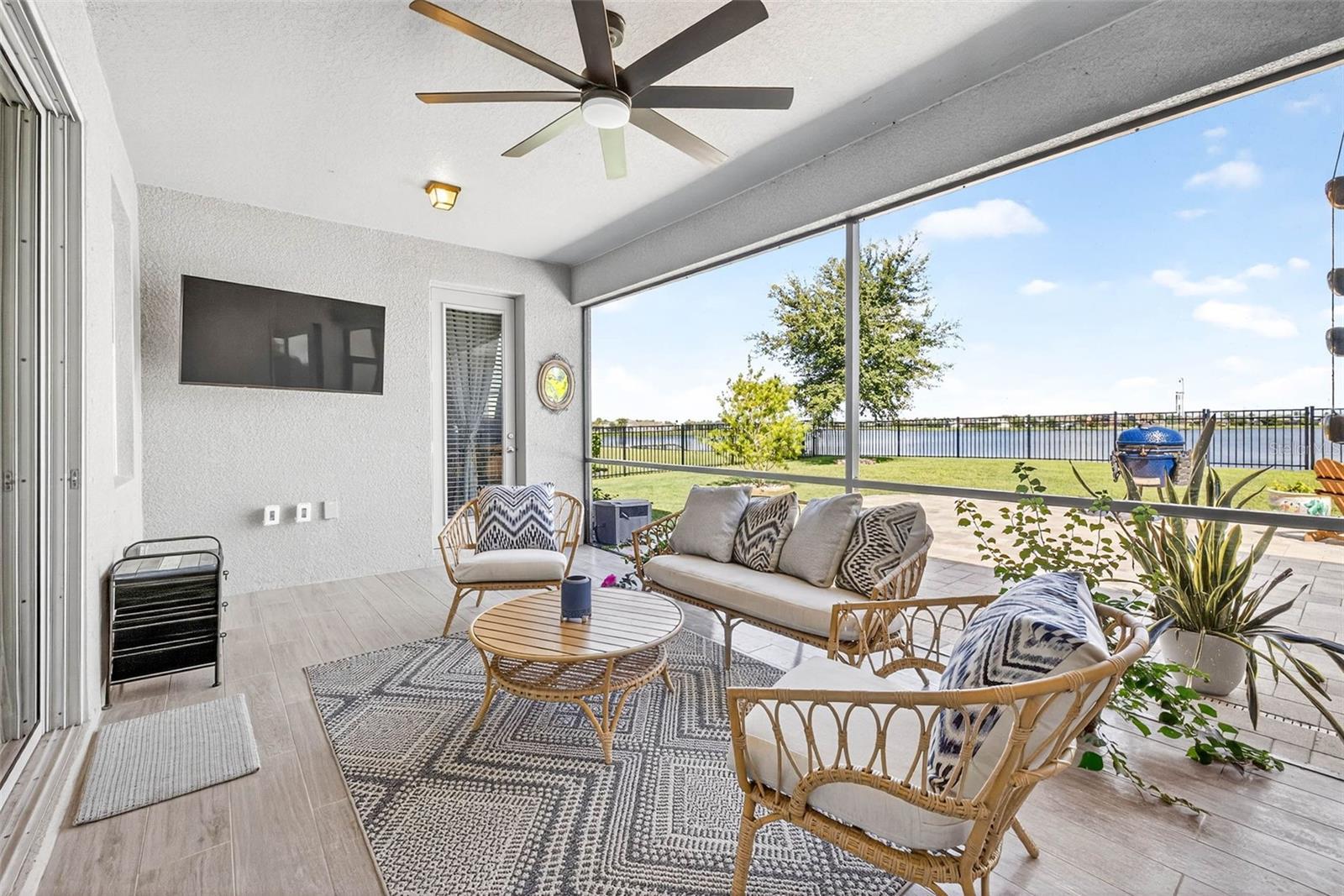 Under contract-accepting backup offers. Welcome to this beautifully upgraded 5-bedroom, 3-bathroom home in the highly sought-after gated community of Lucaya Lake Club. With nearly $50,000 in upgrades, this residence blends thoughtful design, modern finishes, and versatile living spaces. From the curb, you’ll notice the professional landscaping, upgraded irrigation system, and wide paver driveway leading to the three-car garage. Step inside to find an open, light-filled layout with tile flooring in the main living areas and new hardwood flooring in all bedrooms and the bonus room. The heart of the home is the expansive living room with a tray ceiling, recessed lighting, and sliding glass doors that open to the lanai. The gourmet kitchen features granite countertops, stainless steel appliances including a new refrigerator, double wall ovens, herringbone backsplash, upgraded pendant lighting, and a large island with seating. A standout feature of this floorplan is its flexibility. In addition to the main living area, the home offers a second large living space that can be closed off to create a private in-law suite. This wing includes a wide-open bonus room, a spacious guest bedroom, and a full bathroom—ideal for multigenerational living, extended guests, or even a private retreat. The primary suite impresses with its size and spa-like ensuite bath featuring dual vanities, a makeup station, and a massive walk-in shower with decorative tile and a built-in bench. Additional bedrooms are generously sized, offering comfort and privacy for family and guests. At the front of the home, the fifth bedroom offers endless possibilities. With a custom Murphy bed built into the wall, this room is perfect for use as a home office, playroom, guest room, or anything else you desire. Its location and design make it one of the most versatile spaces in the home. Step outside to your private backyard oasis. The screened lanai, upgraded with tile flooring, opens to a custom paver patio with multiple seating areas, a fire pit, and a grilling station—perfect for entertaining or quiet evenings overlooking the lake. The backyard is enclosed with a black aluminum fence and professionally landscaped with mature palms and tropical plants, all with serene waterfront views of Lucaya Lake. For outdoor enthusiasts, this home is a dream—the lake is stocked with bass, tilapia, catfish, and bluegill, making it perfect for fishing right from your backyard. Additional upgrades include a whole-house water filtration and UV system, HVAC UV system, water softener with RO filter, and custom ceiling fans. Living in Lucaya Lake Club means enjoying resort-style amenities: a clubhouse, fitness center, zero-entry swimming pool, splash park, playgrounds, and access to the 78-acre lake for kayaking and paddleboarding. This is more than just a home—it’s a lifestyle of comfort, convenience, and community in one of Riverview’s most desirable neighborhoods.