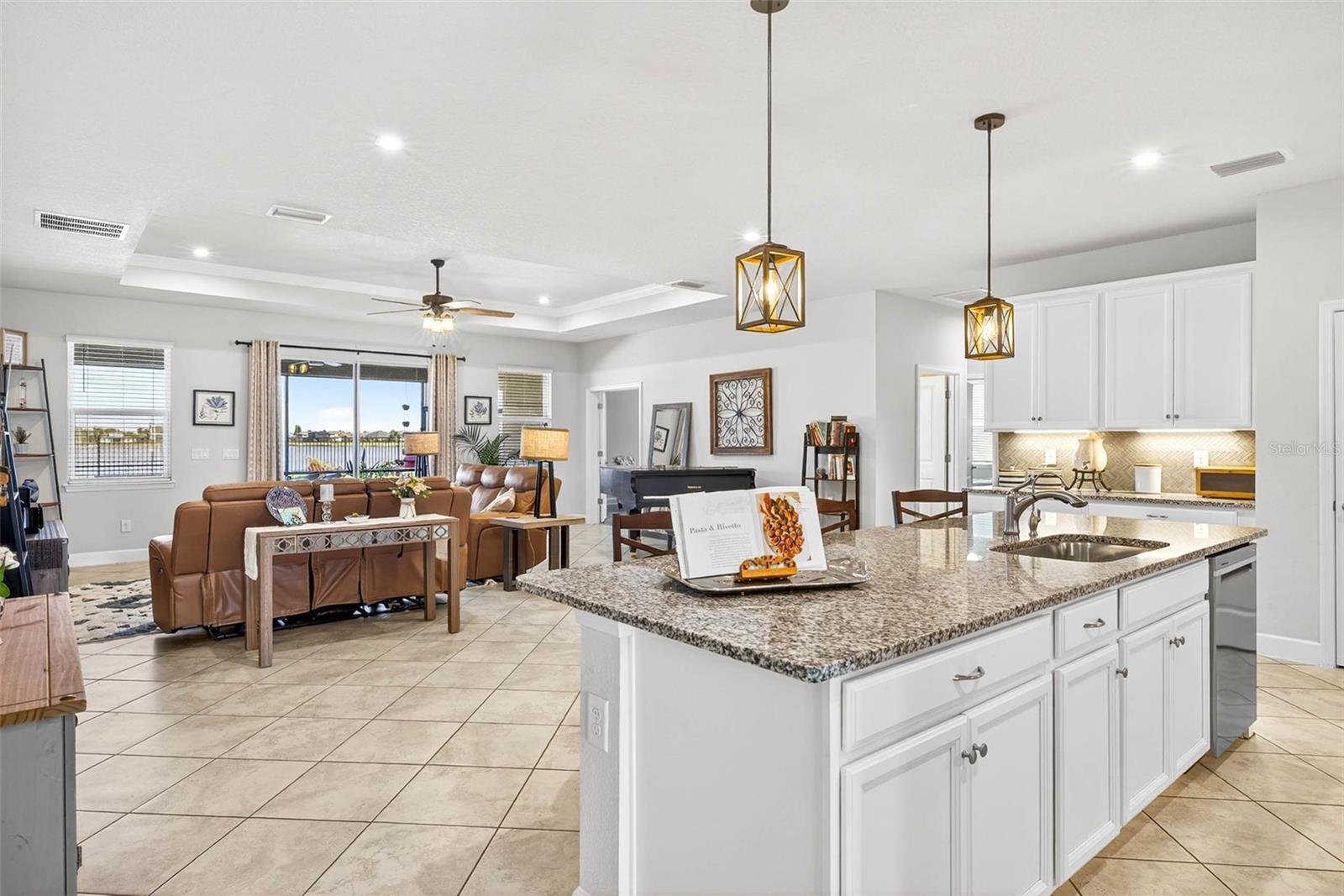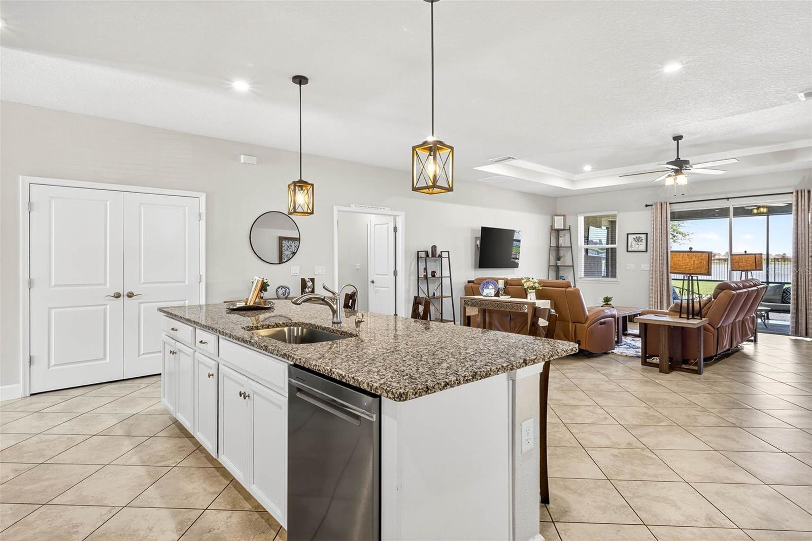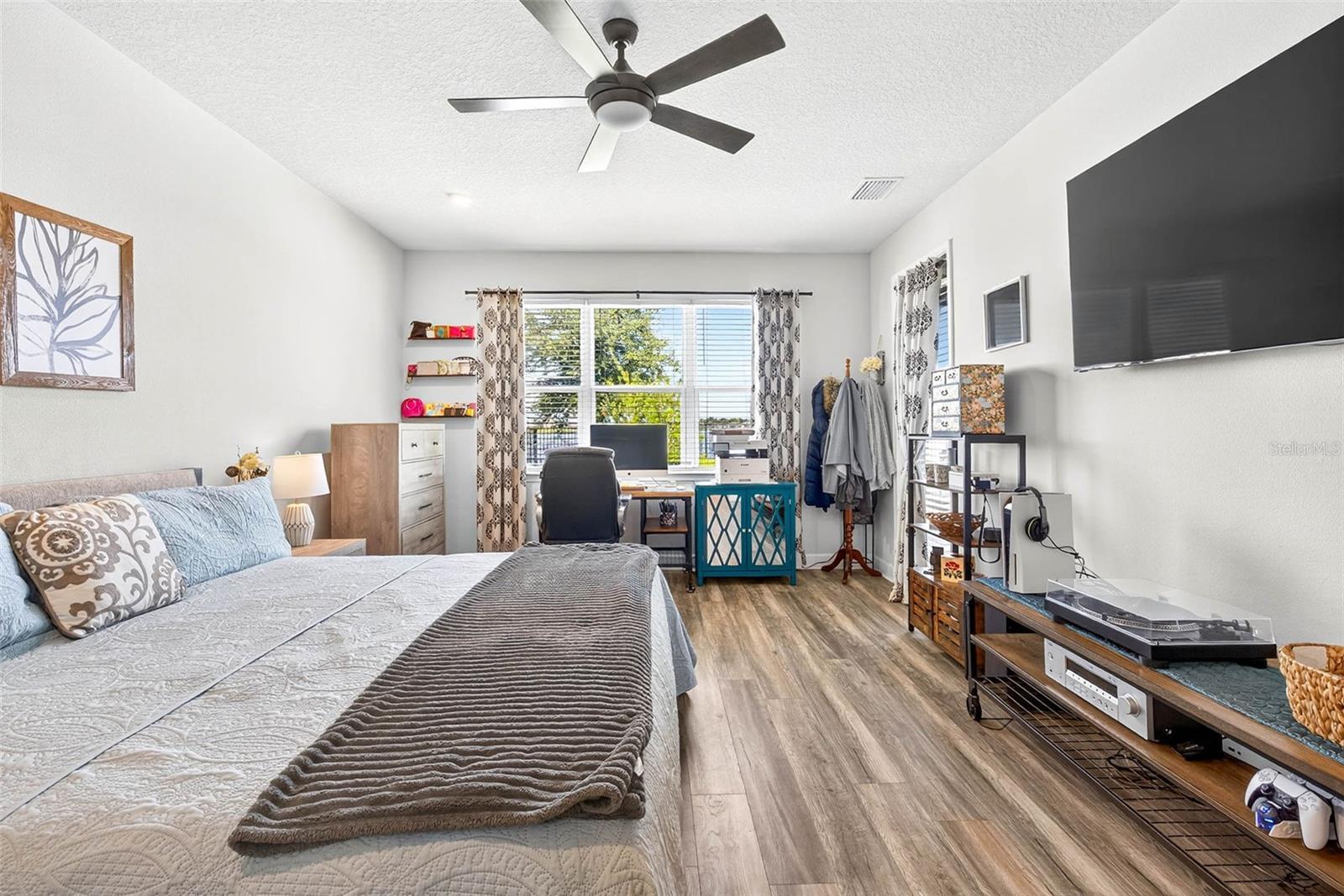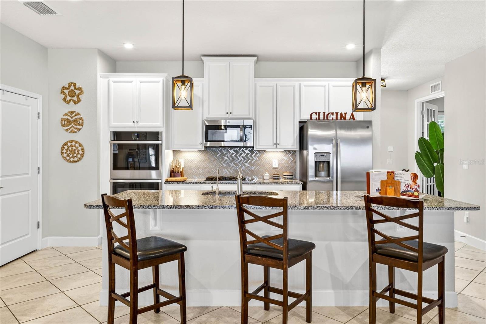 Under contract-accepting backup offers. Welcome to this beautifully upgraded 5-bedroom, 3-bathroom home in the highly sought-after gated community of Lucaya Lake Club. With nearly $50,000 in upgrades, this residence blends thoughtful design, modern finishes, and versatile living spaces. From the curb, you’ll notice the professional landscaping, upgraded irrigation system, and wide paver driveway leading to the three-car garage. Step inside to find an open, light-filled layout with tile flooring in the main living areas and new hardwood flooring in all bedrooms and the bonus room. The heart of the home is the expansive living room with a tray ceiling, recessed lighting, and sliding glass doors that open to the lanai. The gourmet kitchen features granite countertops, stainless steel appliances including a new refrigerator, double wall ovens, herringbone backsplash, upgraded pendant lighting, and a large island with seating. A standout feature of this floorplan is its flexibility. In addition to the main living area, the home offers a second large living space that can be closed off to create a private in-law suite. This wing includes a wide-open bonus room, a spacious guest bedroom, and a full bathroom—ideal for multigenerational living, extended guests, or even a private retreat. The primary suite impresses with its size and spa-like ensuite bath featuring dual vanities, a makeup station, and a massive walk-in shower with decorative tile and a built-in bench. Additional bedrooms are generously sized, offering comfort and privacy for family and guests. At the front of the home, the fifth bedroom offers endless possibilities. With a custom Murphy bed built into the wall, this room is perfect for use as a home office, playroom, guest room, or anything else you desire. Its location and design make it one of the most versatile spaces in the home. Step outside to your private backyard oasis. The screened lanai, upgraded with tile flooring, opens to a custom paver patio with multiple seating areas, a fire pit, and a grilling station—perfect for entertaining or quiet evenings overlooking the lake. The backyard is enclosed with a black aluminum fence and professionally landscaped with mature palms and tropical plants, all with serene waterfront views of Lucaya Lake. For outdoor enthusiasts, this home is a dream—the lake is stocked with bass, tilapia, catfish, and bluegill, making it perfect for fishing right from your backyard. Additional upgrades include a whole-house water filtration and UV system, HVAC UV system, water softener with RO filter, and custom ceiling fans. Living in Lucaya Lake Club means enjoying resort-style amenities: a clubhouse, fitness center, zero-entry swimming pool, splash park, playgrounds, and access to the 78-acre lake for kayaking and paddleboarding. This is more than just a home—it’s a lifestyle of comfort, convenience, and community in one of Riverview’s most desirable neighborhoods.