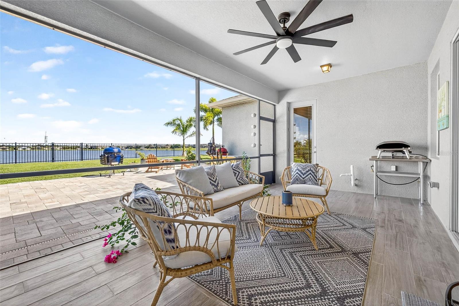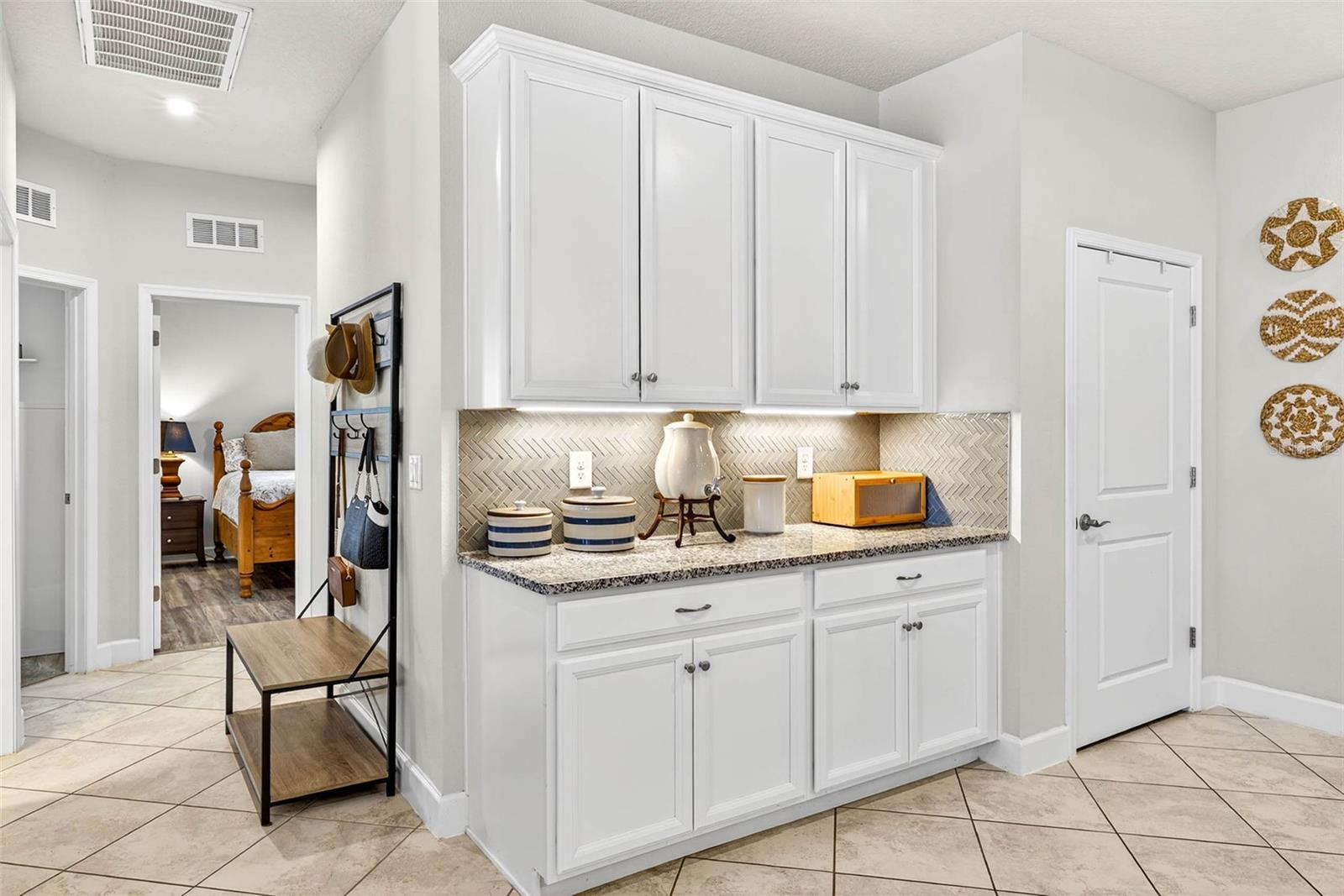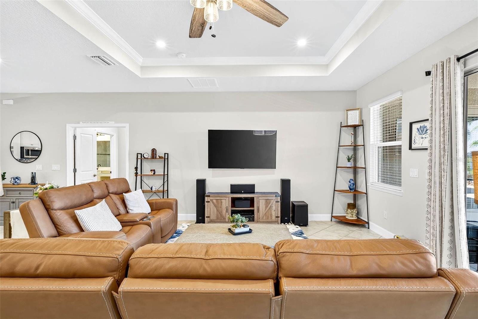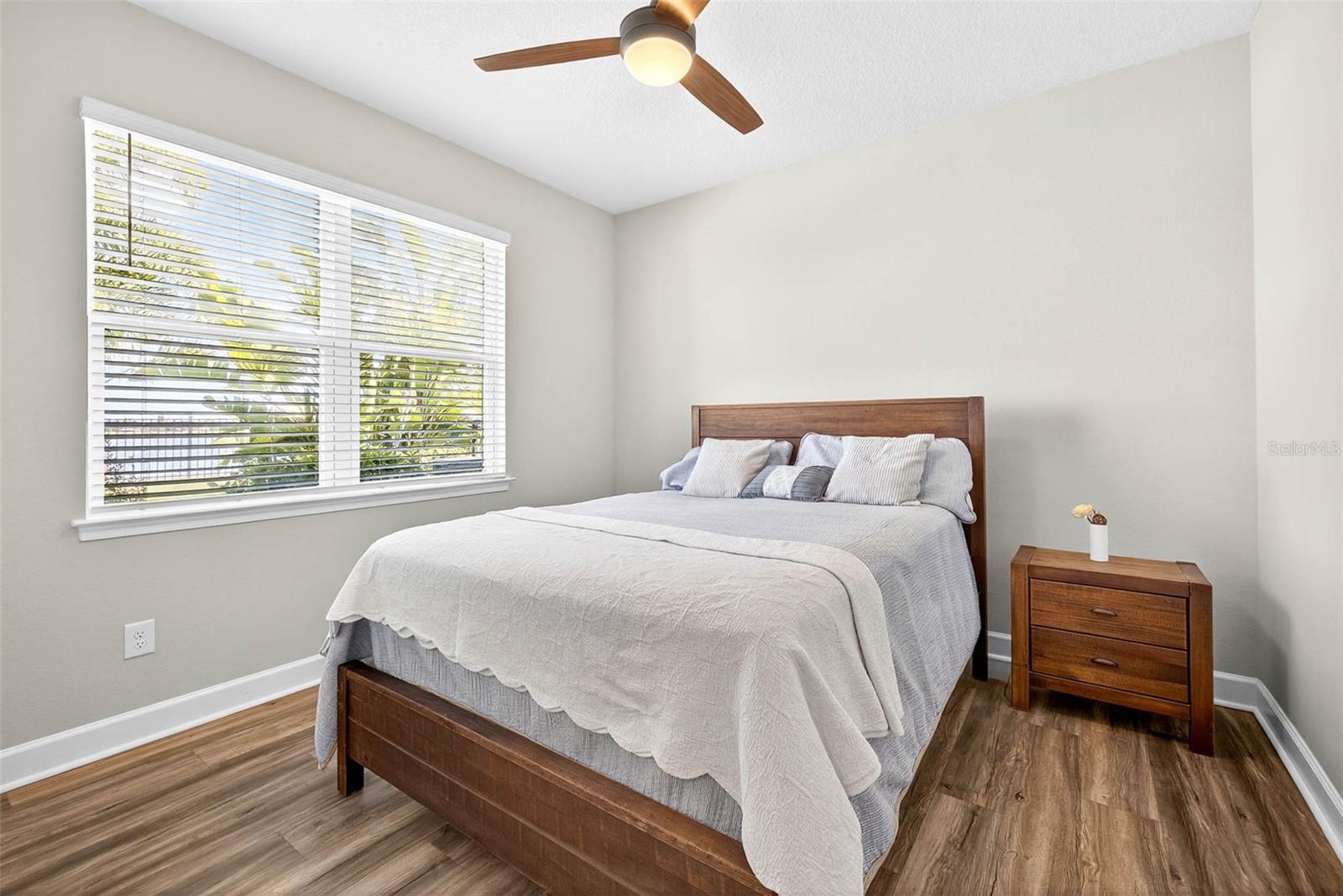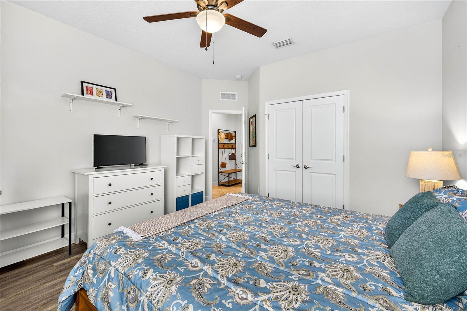Under contract-accepting backup offers. Welcome to this beautifully upgraded 5-bedroom, 3-bathroom home in the highly sought-after gated community of Lucaya Lake Club. With nearly $50,000 in upgrades, this residence blends thoughtful design, modern finishes, and versatile living spaces. From the curb, you’ll notice the professional landscaping, upgraded irrigation system, and wide paver driveway leading to the three-car garage. Step inside to find an open, light-filled layout with tile flooring in the main living areas and new hardwood flooring in all bedrooms and the bonus room. The heart of the home is the expansive living room with a tray ceiling, recessed lighting, and sliding glass doors that open to the lanai. The gourmet kitchen features granite countertops, stainless steel appliances including a new refrigerator, double wall ovens, herringbone backsplash, upgraded pendant lighting, and a large island with seating. A standout feature of this floorplan is its flexibility. In addition to the main living area, the home offers a second large living space that can be closed off to create a private in-law suite. This wing includes a wide-open bonus room, a spacious guest bedroom, and a full bathroom—ideal for multigenerational living, extended guests, or even a private retreat. The primary suite impresses with its size and spa-like ensuite bath featuring dual vanities, a makeup station, and a massive walk-in shower with decorative tile and a built-in bench. Additional bedrooms are generously sized, offering comfort and privacy for family and guests. At the front of the home, the fifth bedroom offers endless possibilities. With a custom Murphy bed built into the wall, this room is perfect for use as a home office, playroom, guest room, or anything else you desire. Its location and design make it one of the most versatile spaces in the home. Step outside to your private backyard oasis. The screened lanai, upgraded with tile flooring, opens to a custom paver patio with multiple seating areas, a fire pit, and a grilling station—perfect for entertaining or quiet evenings overlooking the lake. The backyard is enclosed with a black aluminum fence and professionally landscaped with mature palms and tropical plants, all with serene waterfront views of Lucaya Lake. For outdoor enthusiasts, this home is a dream—the lake is stocked with bass, tilapia, catfish, and bluegill, making it perfect for fishing right from your backyard. Additional upgrades include a whole-house water filtration and UV system, HVAC UV system, water softener with RO filter, and custom ceiling fans. Living in Lucaya Lake Club means enjoying resort-style amenities: a clubhouse, fitness center, zero-entry swimming pool, splash park, playgrounds, and access to the 78-acre lake for kayaking and paddleboarding. This is more than just a home—it’s a lifestyle of comfort, convenience, and community in one of Riverview’s most desirable neighborhoods.