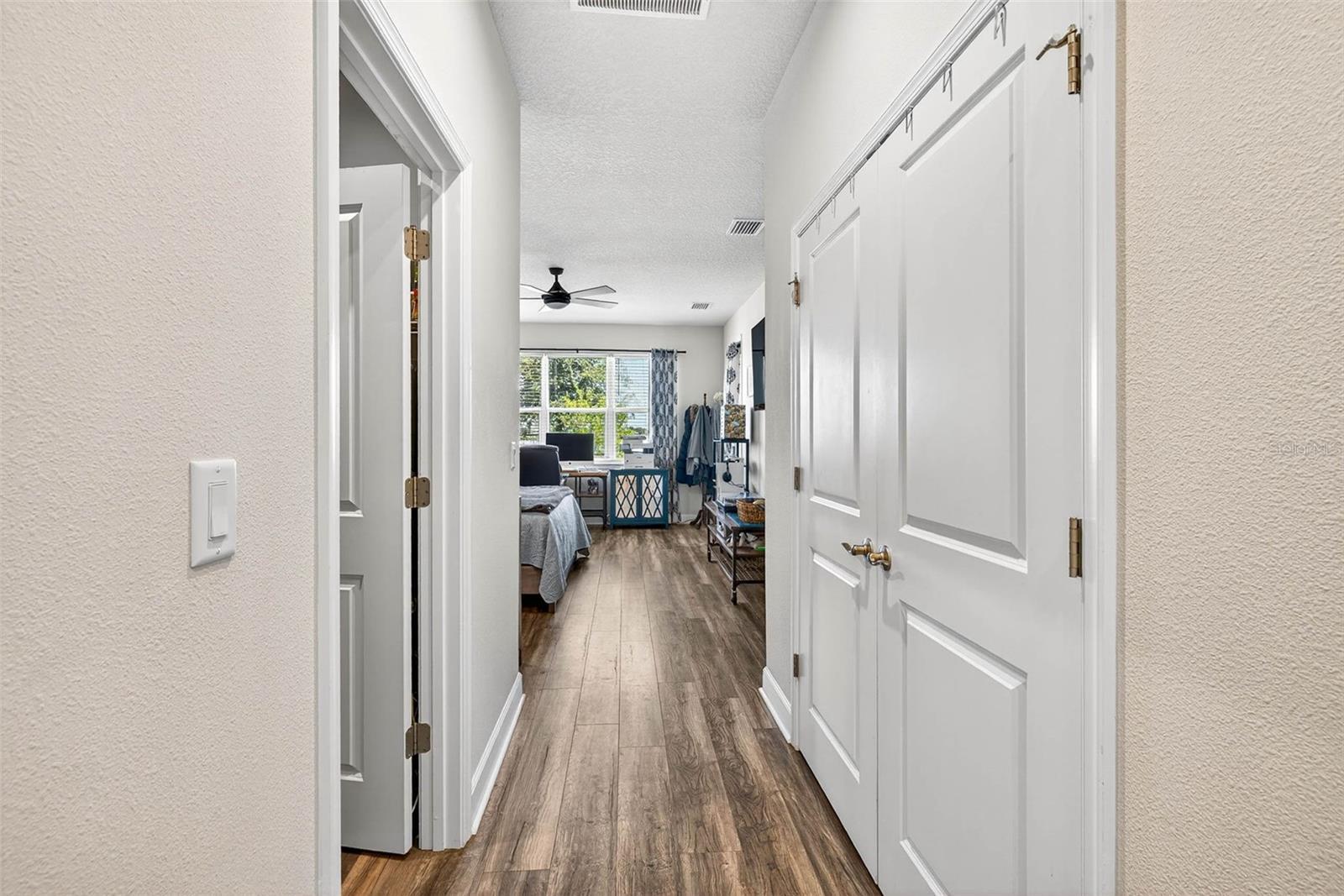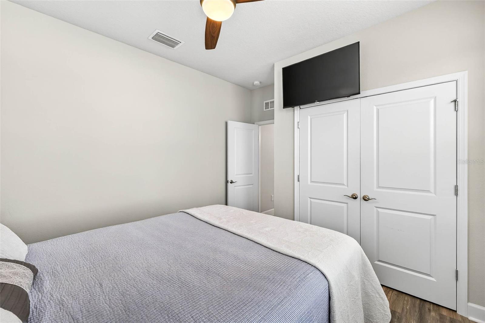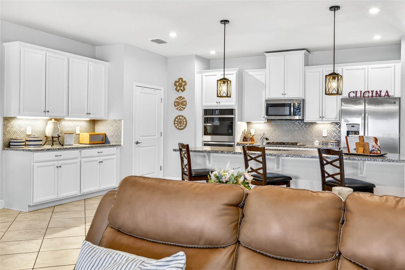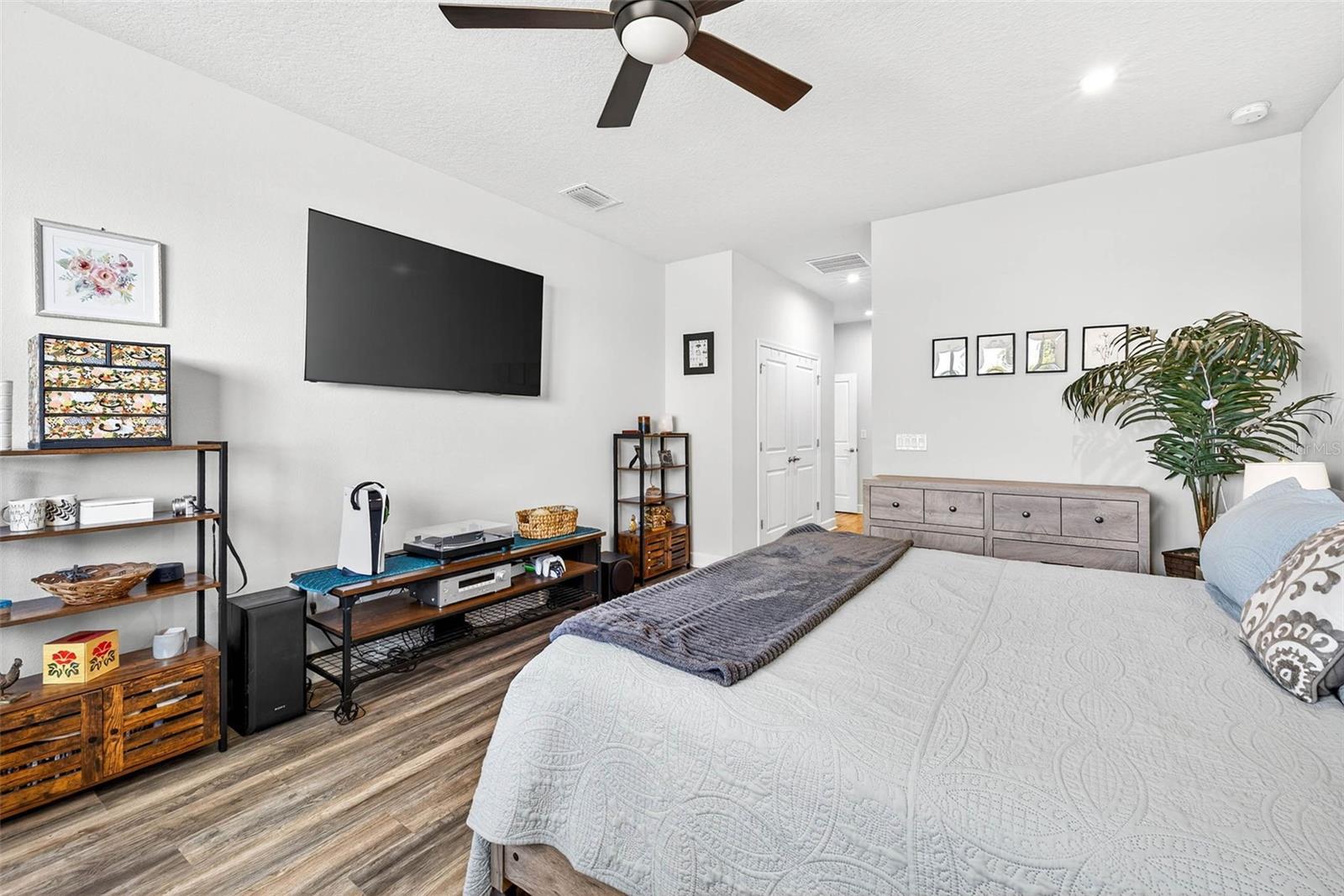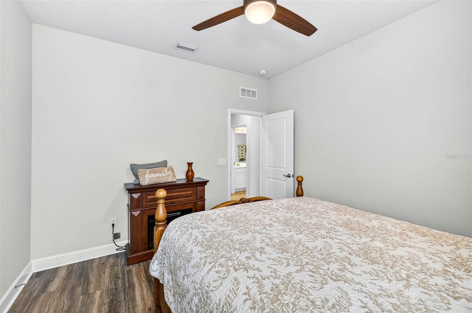 Under contract-accepting backup offers. Welcome to this beautifully upgraded 5-bedroom, 3-bathroom home in the highly sought-after gated community of Lucaya Lake Club. With nearly $50,000 in upgrades, this residence blends thoughtful design, modern finishes, and versatile living spaces. From the curb, you’ll notice the professional landscaping, upgraded irrigation system, and wide paver driveway leading to the three-car garage. Step inside to find an open, light-filled layout with tile flooring in the main living areas and new hardwood flooring in all bedrooms and the bonus room. The heart of the home is the expansive living room with a tray ceiling, recessed lighting, and sliding glass doors that open to the lanai. The gourmet kitchen features granite countertops, stainless steel appliances including a new refrigerator, double wall ovens, herringbone backsplash, upgraded pendant lighting, and a large island with seating. A standout feature of this floorplan is its flexibility. In addition to the main living area, the home offers a second large living space that can be closed off to create a private in-law suite. This wing includes a wide-open bonus room, a spacious guest bedroom, and a full bathroom—ideal for multigenerational living, extended guests, or even a private retreat. The primary suite impresses with its size and spa-like ensuite bath featuring dual vanities, a makeup station, and a massive walk-in shower with decorative tile and a built-in bench. Additional bedrooms are generously sized, offering comfort and privacy for family and guests. At the front of the home, the fifth bedroom offers endless possibilities. With a custom Murphy bed built into the wall, this room is perfect for use as a home office, playroom, guest room, or anything else you desire. Its location and design make it one of the most versatile spaces in the home. Step outside to your private backyard oasis. The screened lanai, upgraded with tile flooring, opens to a custom paver patio with multiple seating areas, a fire pit, and a grilling station—perfect for entertaining or quiet evenings overlooking the lake. The backyard is enclosed with a black aluminum fence and professionally landscaped with mature palms and tropical plants, all with serene waterfront views of Lucaya Lake. For outdoor enthusiasts, this home is a dream—the lake is stocked with bass, tilapia, catfish, and bluegill, making it perfect for fishing right from your backyard. Additional upgrades include a whole-house water filtration and UV system, HVAC UV system, water softener with RO filter, and custom ceiling fans. Living in Lucaya Lake Club means enjoying resort-style amenities: a clubhouse, fitness center, zero-entry swimming pool, splash park, playgrounds, and access to the 78-acre lake for kayaking and paddleboarding. This is more than just a home—it’s a lifestyle of comfort, convenience, and community in one of Riverview’s most desirable neighborhoods.