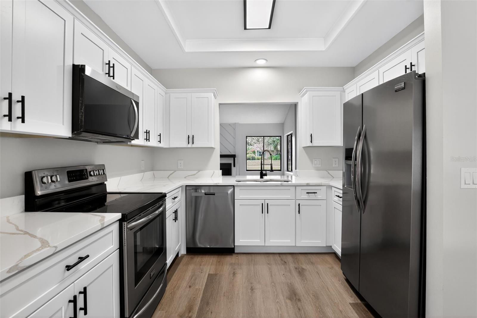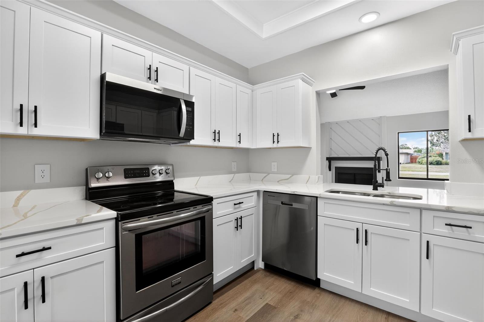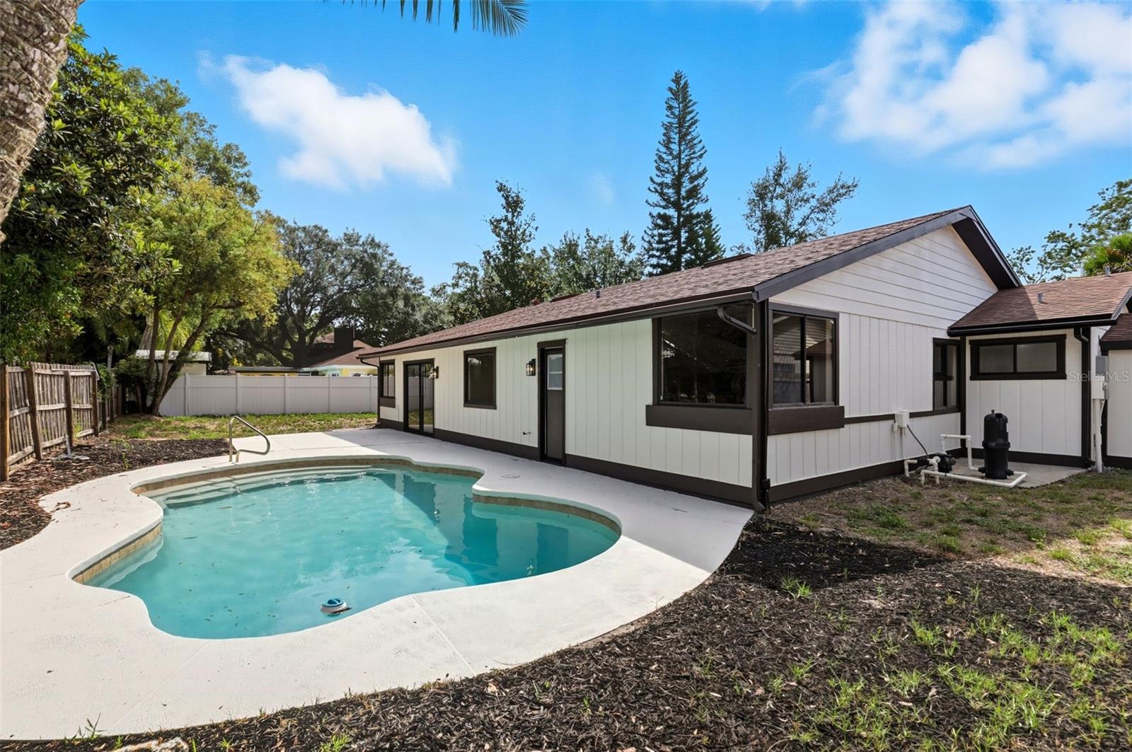 Beautifully renovated 4-bedroom, 2-bath pool home featuring a new fence, fresh exterior and interior paint, new baseboards, LVP flooring, plush carpet, and a fully refreshed kitchen with new shaker cabinets, quartz counters, and microwave. Bathrooms refreshed, plus new HVAC and electrical panel for worry-free living.