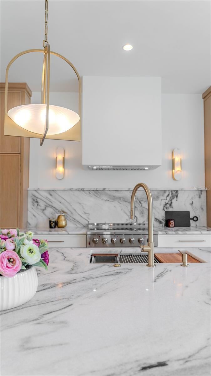 - High Ceilings, Kitchen/Family Room Combo, Open Floorplan, PrimaryBedroom Upstairs, Stone Counters, Tray Ceiling(s), Wet Bar