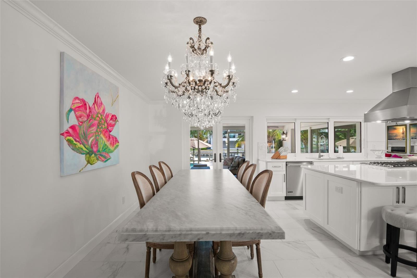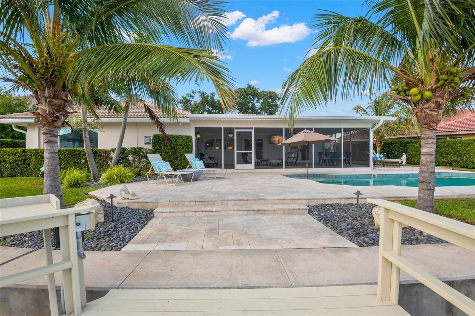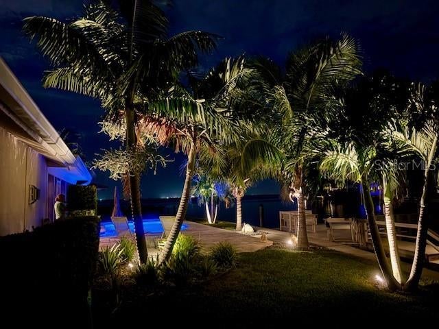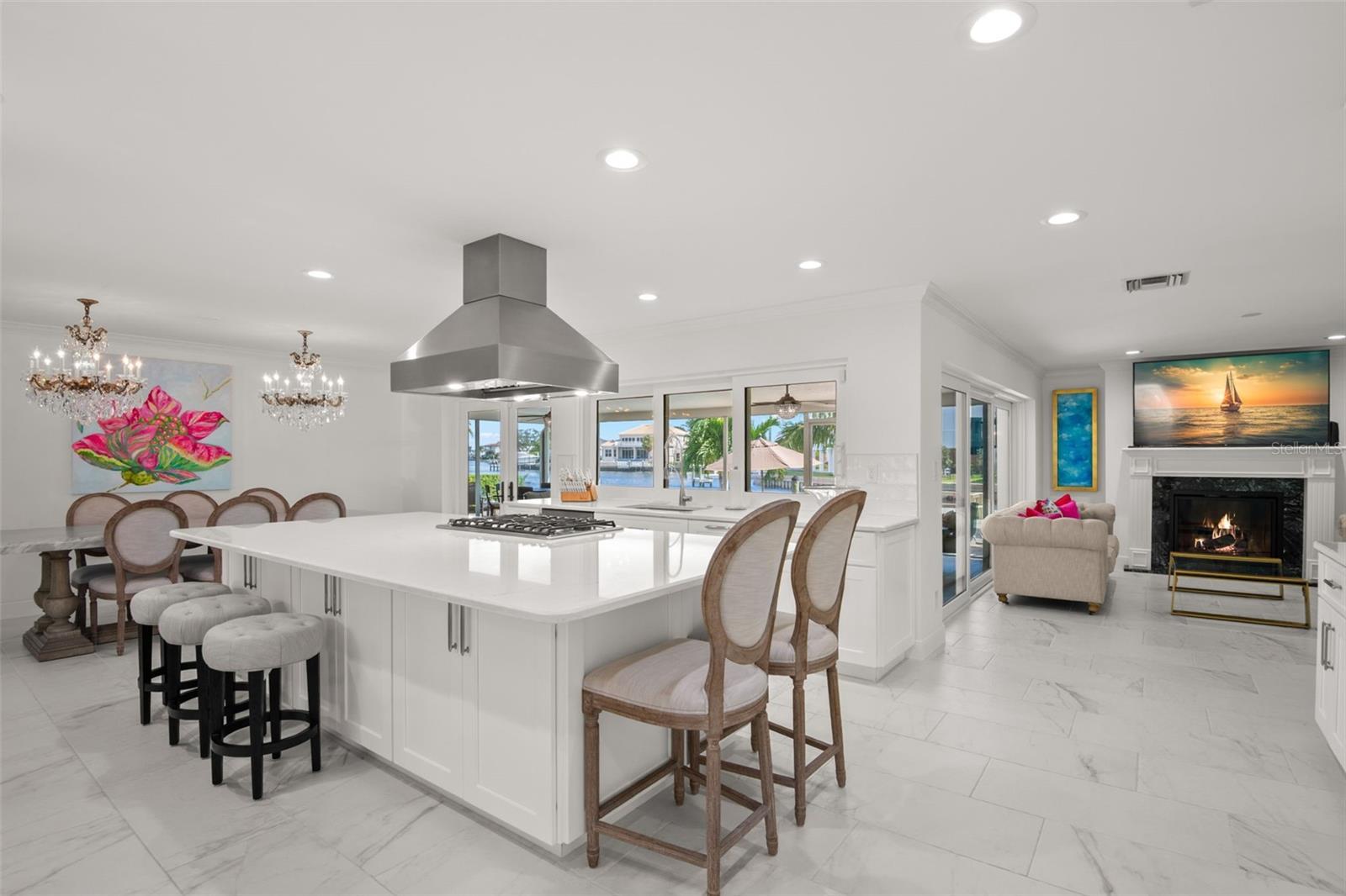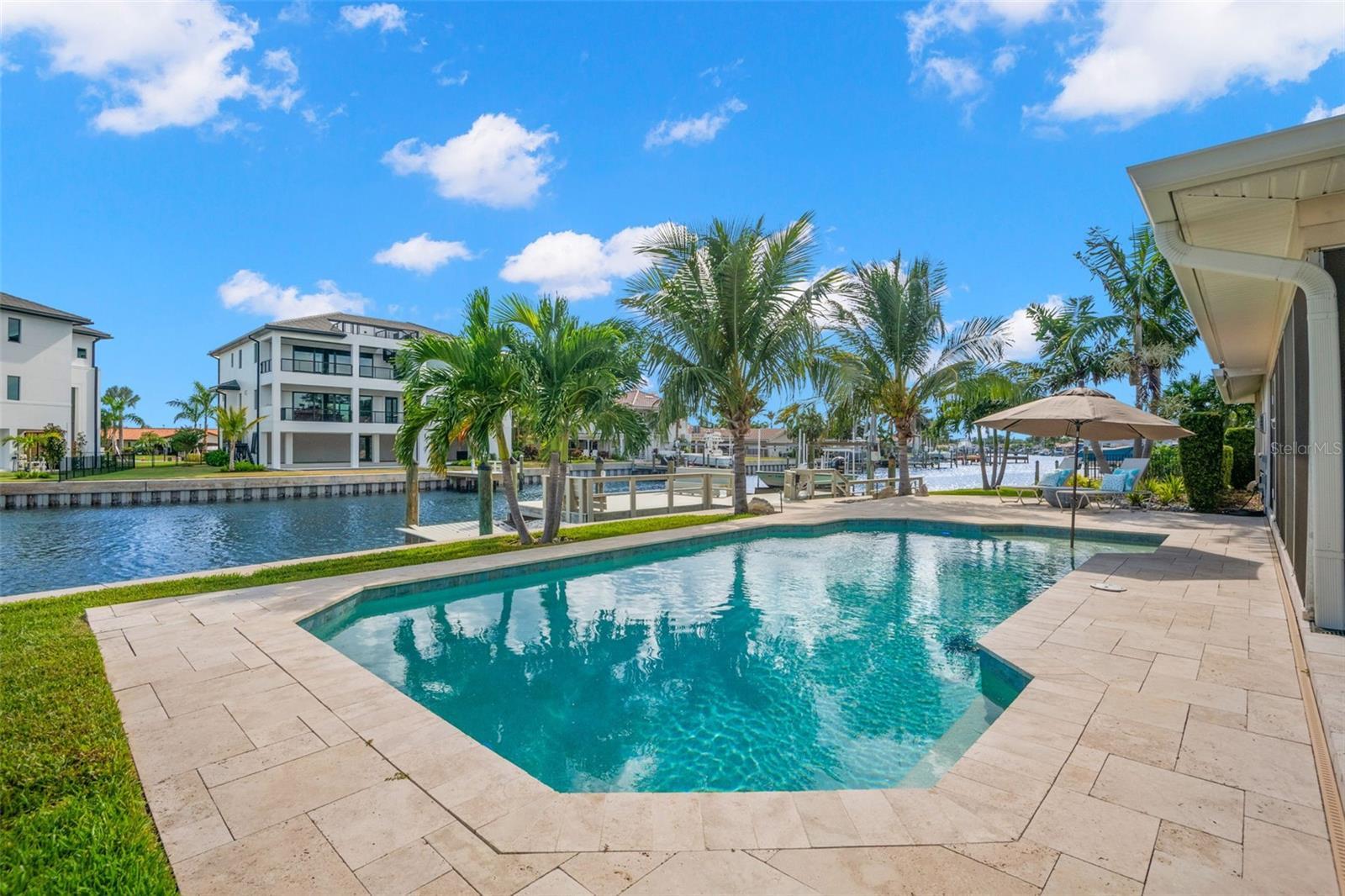 Under contract-accepting backup offers. Welcome to your private paradise located on Mermaid Point NE, a secluded street within the highly desirable waterfront neighborhood of Venetian Isles. The home was completely renovated in 2017/2018 with attention to every detail. It features a split-bedroom floor plan with 2,229 sq. ft. of living space, including 3 bedrooms, 2 ½ bathrooms, and an all-purpose utility room. The heart of the home is the Chef’s kitchen, featuring Viking appliances including a double French door wall oven, warming drawer, French door refrigerator, gas cooktop and hood, dishwasher, and microwave. The oversized full-slab island hosts the cooktop, microwave, seating, and plenty of countertop space. The kitchen also offers abundant storage, including three double pantries with custom rollout trays. A triple impact sliding glass window highlights the water views from every angle. The living space includes a formal sitting area, dining room, and a family room with a gas fireplace and a triple impact sliding glass door to capture sweeping bay views. The Owner’s suite features a large picture window overlooking the water, crown molding, custom window treatments, and an expanded spa-like bathroom with a large walk-in shower, slipper tub, private water closet, and double sinks. The enlarged walk-in closet includes custom cabinetry and a back door for easy access to the laundry room. The east side of the home offers two guest bedrooms, a guest bathroom, and a hall closet. The backyard has also undergone a complete transformation, creating a tropical oasis highlighted by open water views. It features a custom heated saltwater swimming pool with LED lighting, a swim shelf with bubblers and umbrella holder. A large travertine deck surrounds the pool. An additional outdoor entertaining area includes a large dock (20x12) with a walkway (4x30) leading to your boat lift. The dock features built-in benches, railings, a fish-cleaning table, lighting, power, and water. A large screened in patio (32x18) completes the entertaining area of the backyard. Additional improvements include: a raised seawall with oversized cap, aluminum black fencing, landscape lighting, and mature tropical landscaping. House systems have also been upgraded and added, including: a Generac whole-house generator, Carrier A/C system, impact windows, French doors, sliding glass door, and front door, Halo water system, Honeywell alarm system, upgraded electric panel, Rheem gas water heater, new hot and cold water plumbing lines, Turner Pest Control monitoring system, seamless gutters, sprinkler system, exterior lighting, and a stamped concrete driveway and walkway. You can also grab your kayak or paddleboard for a short trip to Weedon Island. The location allows for easy access to Downtown St. Petersburg, the beaches, and Tampa International Airport, which is just a short drive away.
