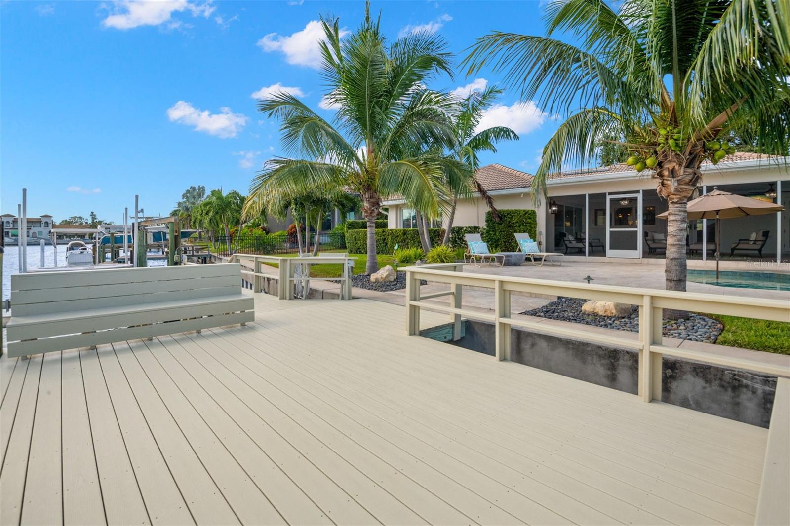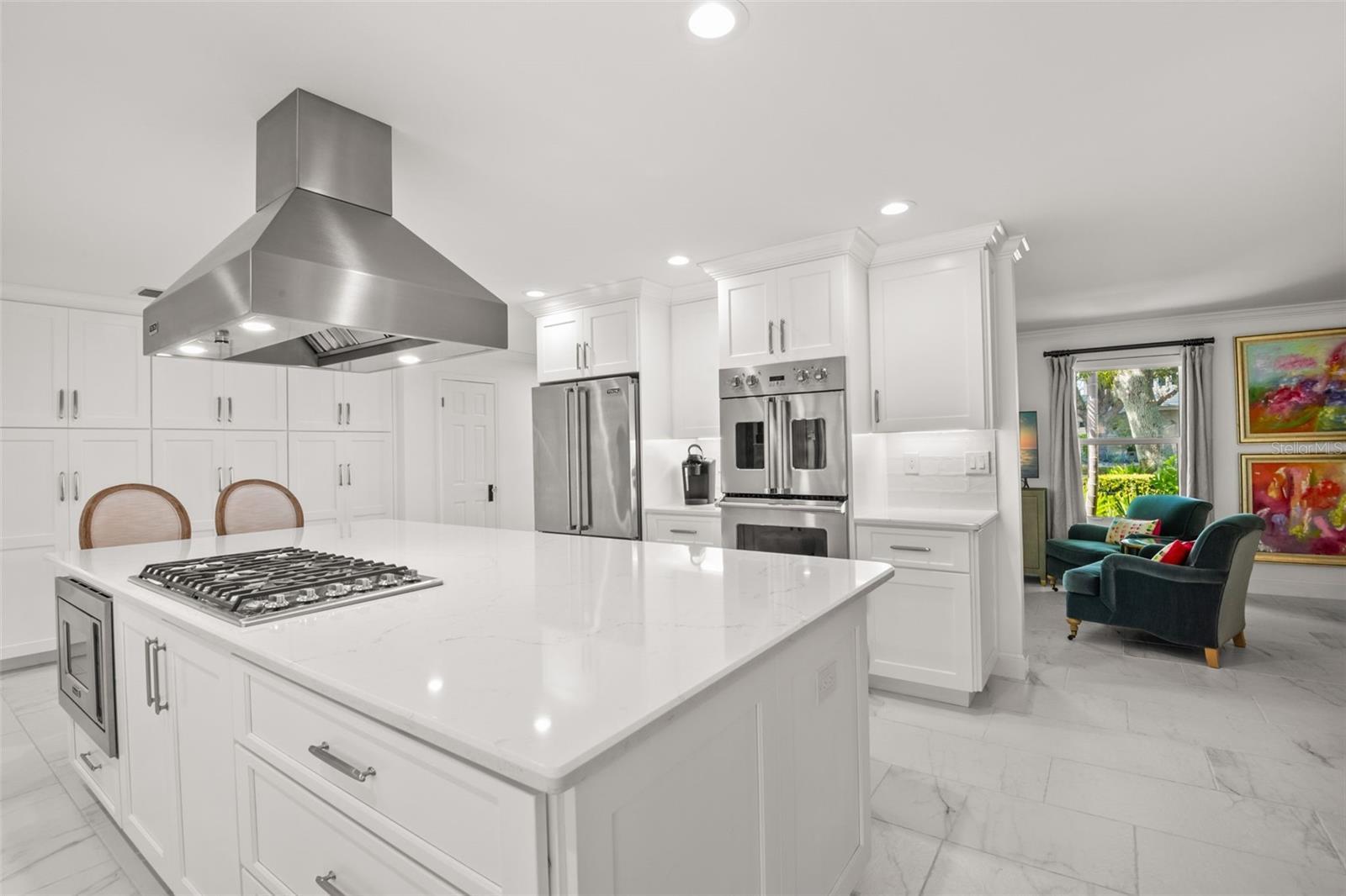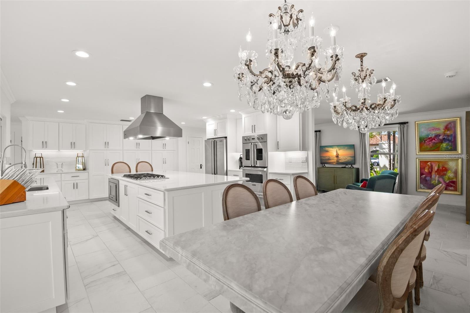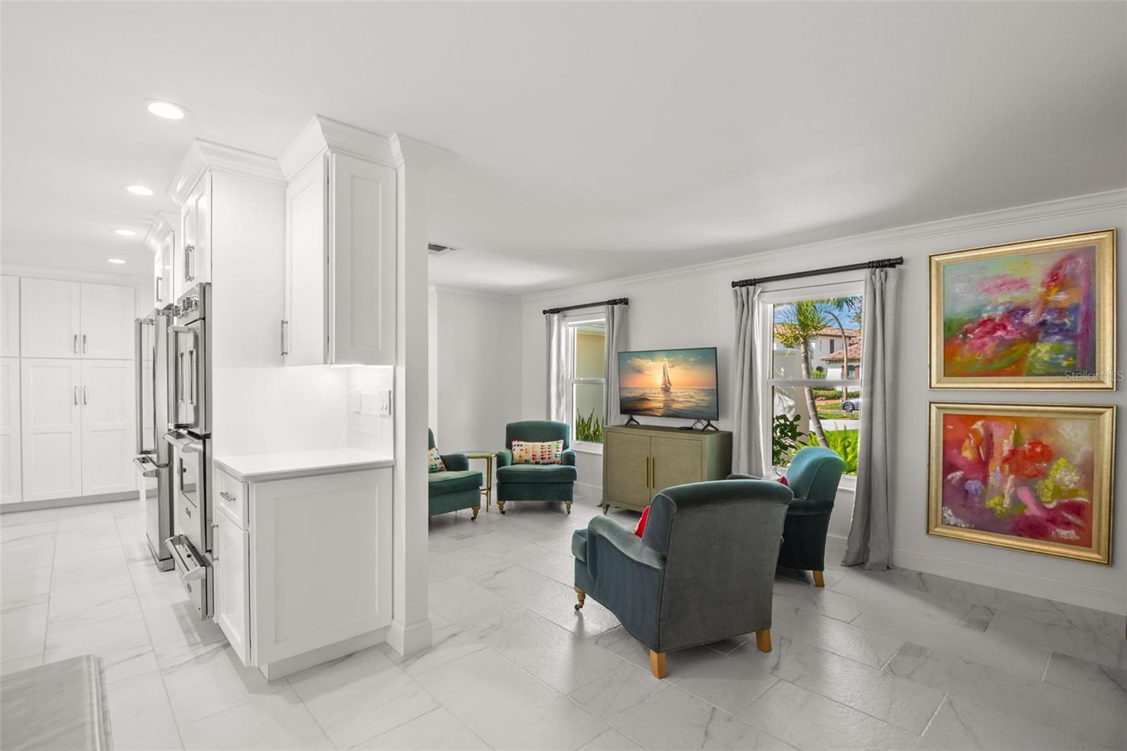 Under contract-accepting backup offers. Welcome to your private paradise located on Mermaid Point NE, a secluded street within the highly desirable waterfront neighborhood of Venetian Isles. The home was completely renovated in 2017/2018 with attention to every detail. It features a split-bedroom floor plan with 2,229 sq. ft. of living space, including 3 bedrooms, 2 ½ bathrooms, and an all-purpose utility room. The heart of the home is the Chef’s kitchen, featuring Viking appliances including a double French door wall oven, warming drawer, French door refrigerator, gas cooktop and hood, dishwasher, and microwave. The oversized full-slab island hosts the cooktop, microwave, seating, and plenty of countertop space. The kitchen also offers abundant storage, including three double pantries with custom rollout trays. A triple impact sliding glass window highlights the water views from every angle. The living space includes a formal sitting area, dining room, and a family room with a gas fireplace and a triple impact sliding glass door to capture sweeping bay views. The Owner’s suite features a large picture window overlooking the water, crown molding, custom window treatments, and an expanded spa-like bathroom with a large walk-in shower, slipper tub, private water closet, and double sinks. The enlarged walk-in closet includes custom cabinetry and a back door for easy access to the laundry room. The east side of the home offers two guest bedrooms, a guest bathroom, and a hall closet. The backyard has also undergone a complete transformation, creating a tropical oasis highlighted by open water views. It features a custom heated saltwater swimming pool with LED lighting, a swim shelf with bubblers and umbrella holder. A large travertine deck surrounds the pool. An additional outdoor entertaining area includes a large dock (20x12) with a walkway (4x30) leading to your boat lift. The dock features built-in benches, railings, a fish-cleaning table, lighting, power, and water. A large screened in patio (32x18) completes the entertaining area of the backyard. Additional improvements include: a raised seawall with oversized cap, aluminum black fencing, landscape lighting, and mature tropical landscaping. House systems have also been upgraded and added, including: a Generac whole-house generator, Carrier A/C system, impact windows, French doors, sliding glass door, and front door, Halo water system, Honeywell alarm system, upgraded electric panel, Rheem gas water heater, new hot and cold water plumbing lines, Turner Pest Control monitoring system, seamless gutters, sprinkler system, exterior lighting, and a stamped concrete driveway and walkway. You can also grab your kayak or paddleboard for a short trip to Weedon Island. The location allows for easy access to Downtown St. Petersburg, the beaches, and Tampa International Airport, which is just a short drive away.