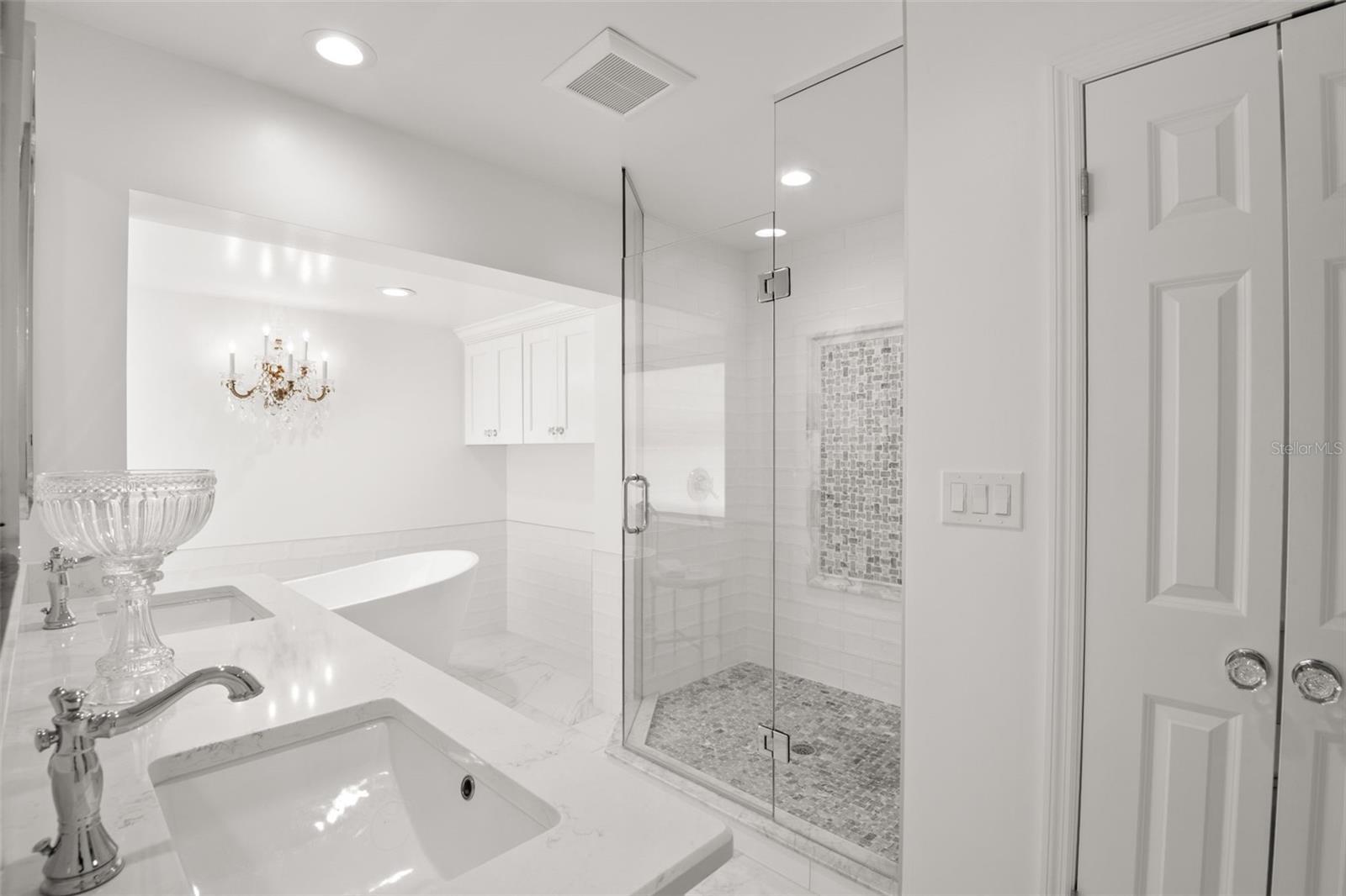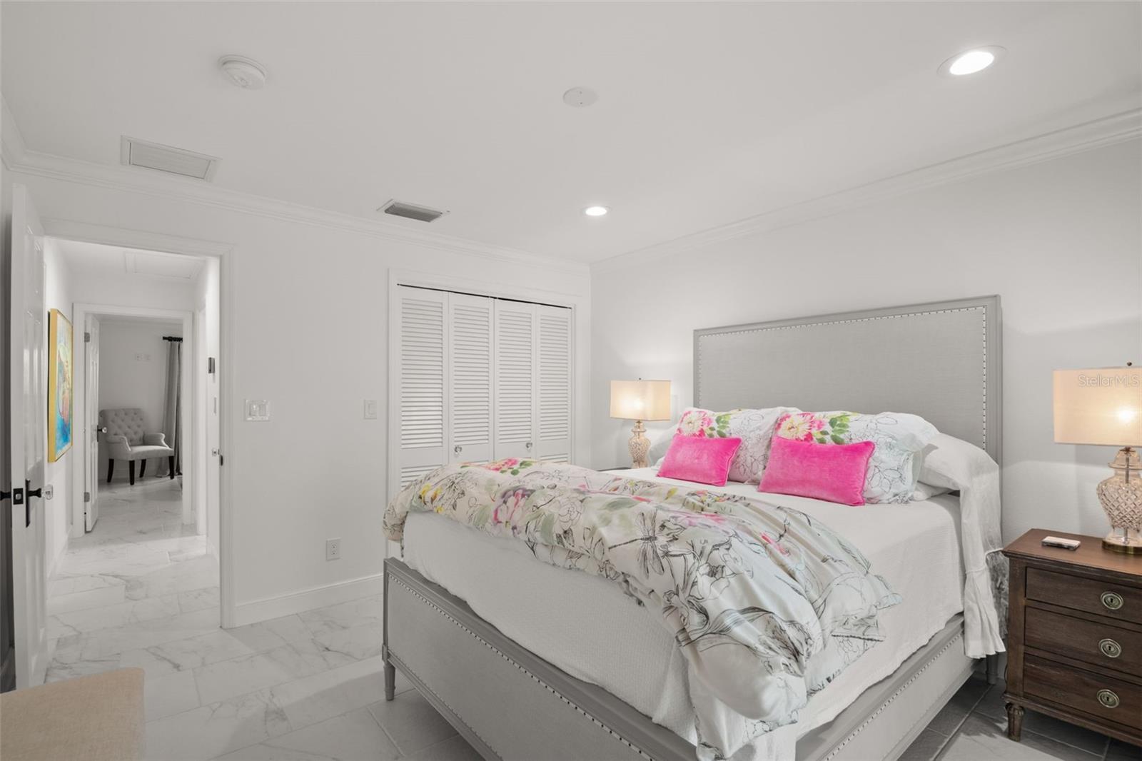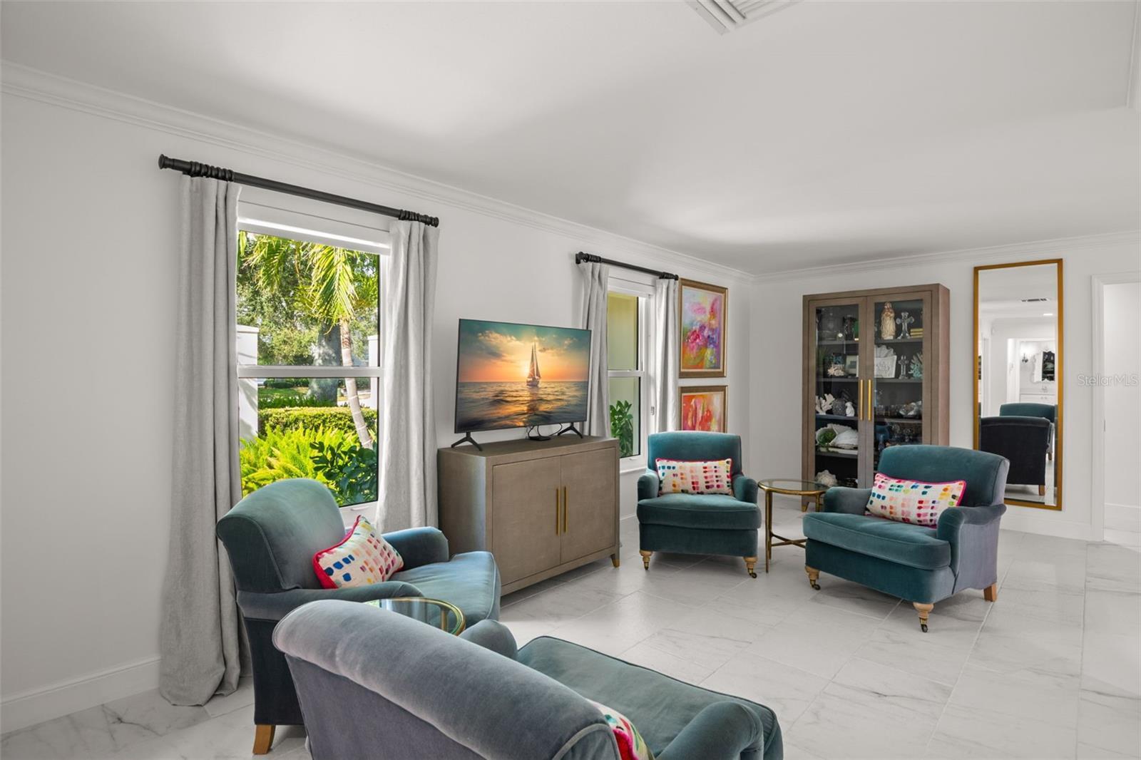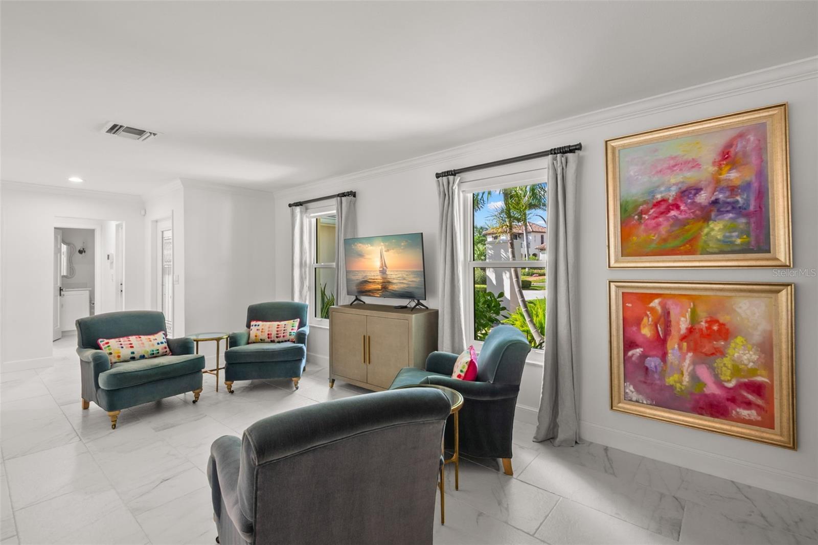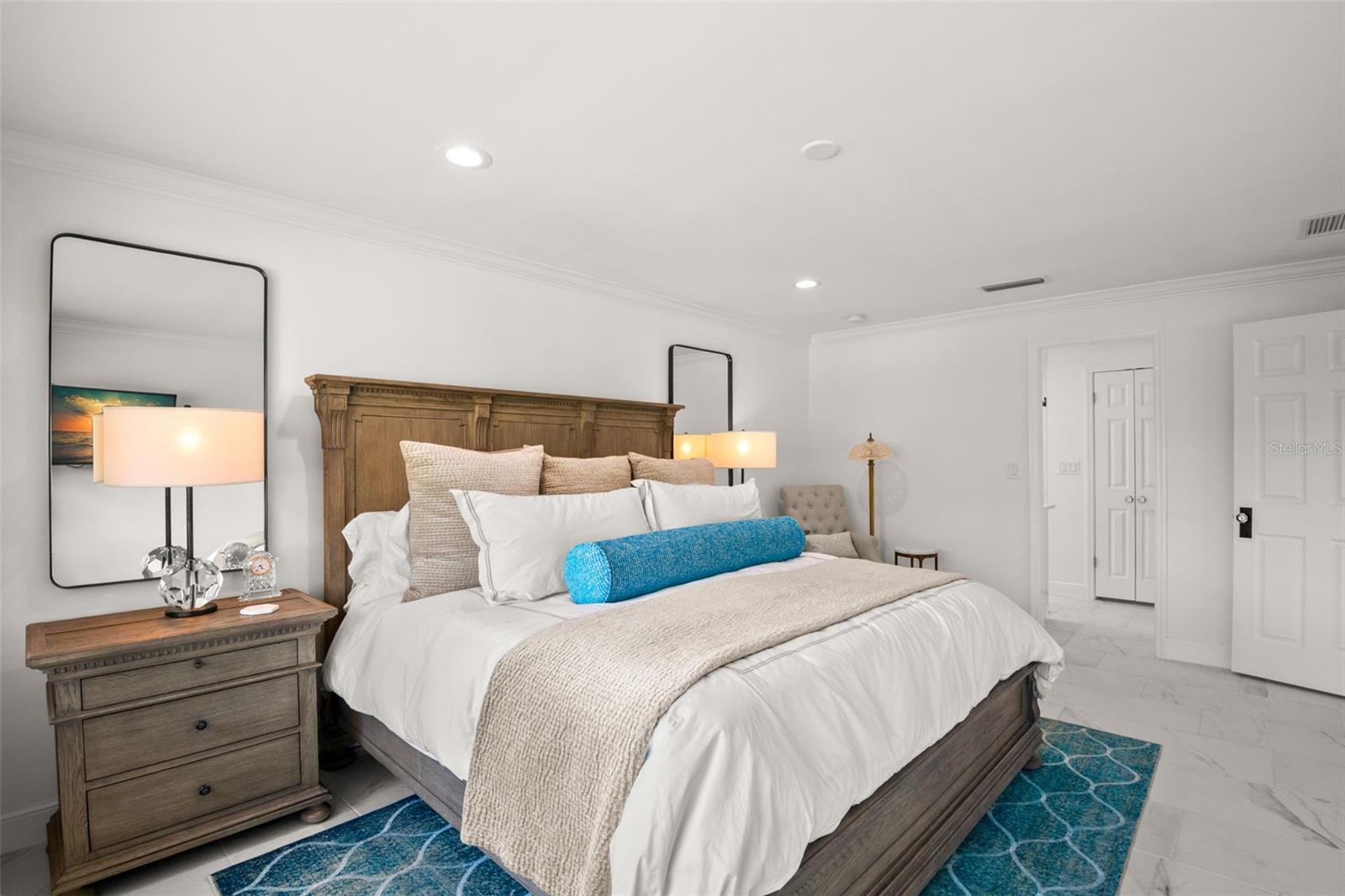 Under contract-accepting backup offers. Welcome to your private paradise located on Mermaid Point NE, a secluded street within the highly desirable waterfront neighborhood of Venetian Isles. The home was completely renovated in 2017/2018 with attention to every detail. It features a split-bedroom floor plan with 2,229 sq. ft. of living space, including 3 bedrooms, 2 ½ bathrooms, and an all-purpose utility room. The heart of the home is the Chef’s kitchen, featuring Viking appliances including a double French door wall oven, warming drawer, French door refrigerator, gas cooktop and hood, dishwasher, and microwave. The oversized full-slab island hosts the cooktop, microwave, seating, and plenty of countertop space. The kitchen also offers abundant storage, including three double pantries with custom rollout trays. A triple impact sliding glass window highlights the water views from every angle. The living space includes a formal sitting area, dining room, and a family room with a gas fireplace and a triple impact sliding glass door to capture sweeping bay views. The Owner’s suite features a large picture window overlooking the water, crown molding, custom window treatments, and an expanded spa-like bathroom with a large walk-in shower, slipper tub, private water closet, and double sinks. The enlarged walk-in closet includes custom cabinetry and a back door for easy access to the laundry room. The east side of the home offers two guest bedrooms, a guest bathroom, and a hall closet. The backyard has also undergone a complete transformation, creating a tropical oasis highlighted by open water views. It features a custom heated saltwater swimming pool with LED lighting, a swim shelf with bubblers and umbrella holder. A large travertine deck surrounds the pool. An additional outdoor entertaining area includes a large dock (20x12) with a walkway (4x30) leading to your boat lift. The dock features built-in benches, railings, a fish-cleaning table, lighting, power, and water. A large screened in patio (32x18) completes the entertaining area of the backyard. Additional improvements include: a raised seawall with oversized cap, aluminum black fencing, landscape lighting, and mature tropical landscaping. House systems have also been upgraded and added, including: a Generac whole-house generator, Carrier A/C system, impact windows, French doors, sliding glass door, and front door, Halo water system, Honeywell alarm system, upgraded electric panel, Rheem gas water heater, new hot and cold water plumbing lines, Turner Pest Control monitoring system, seamless gutters, sprinkler system, exterior lighting, and a stamped concrete driveway and walkway. You can also grab your kayak or paddleboard for a short trip to Weedon Island. The location allows for easy access to Downtown St. Petersburg, the beaches, and Tampa International Airport, which is just a short drive away.