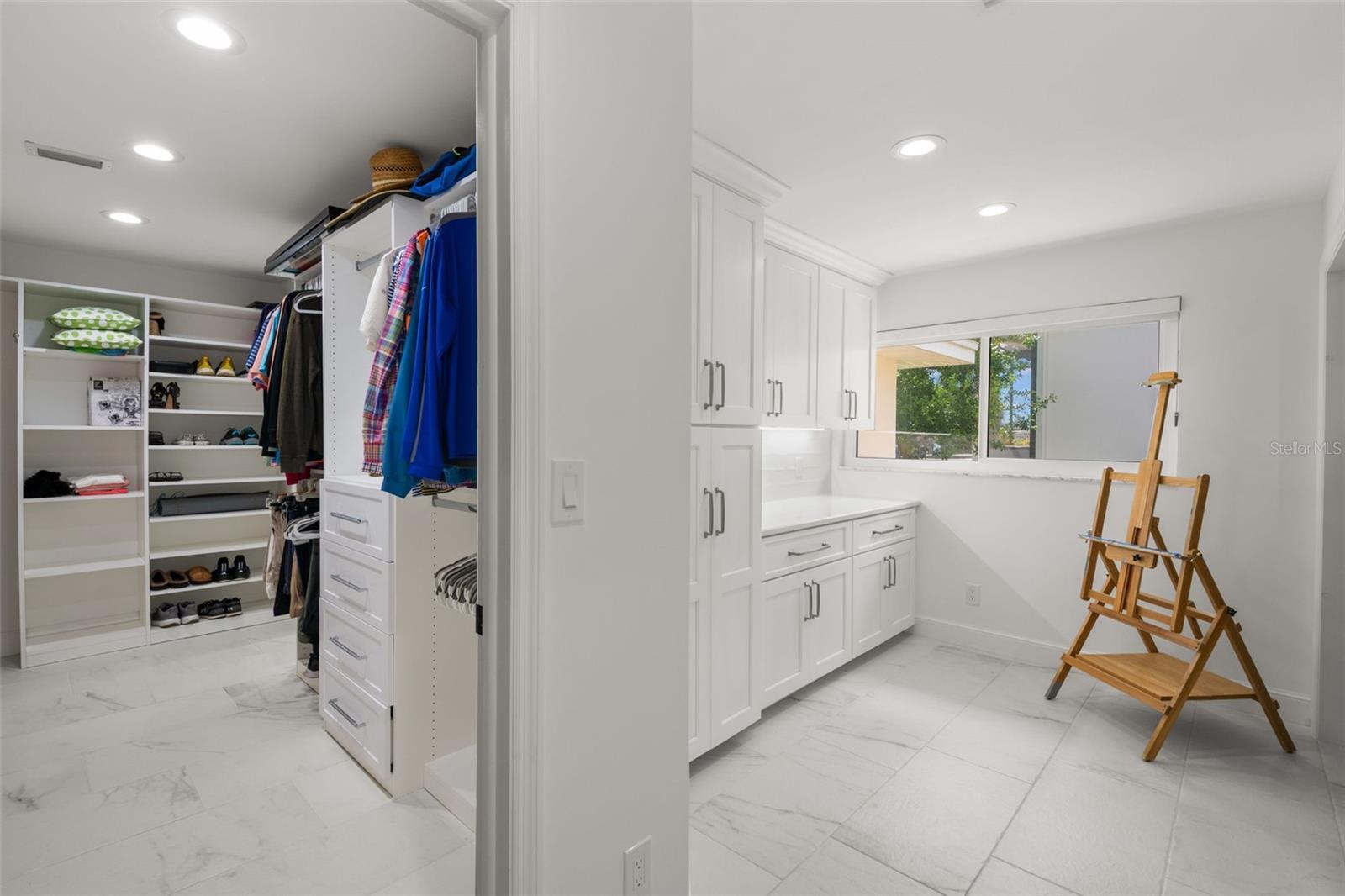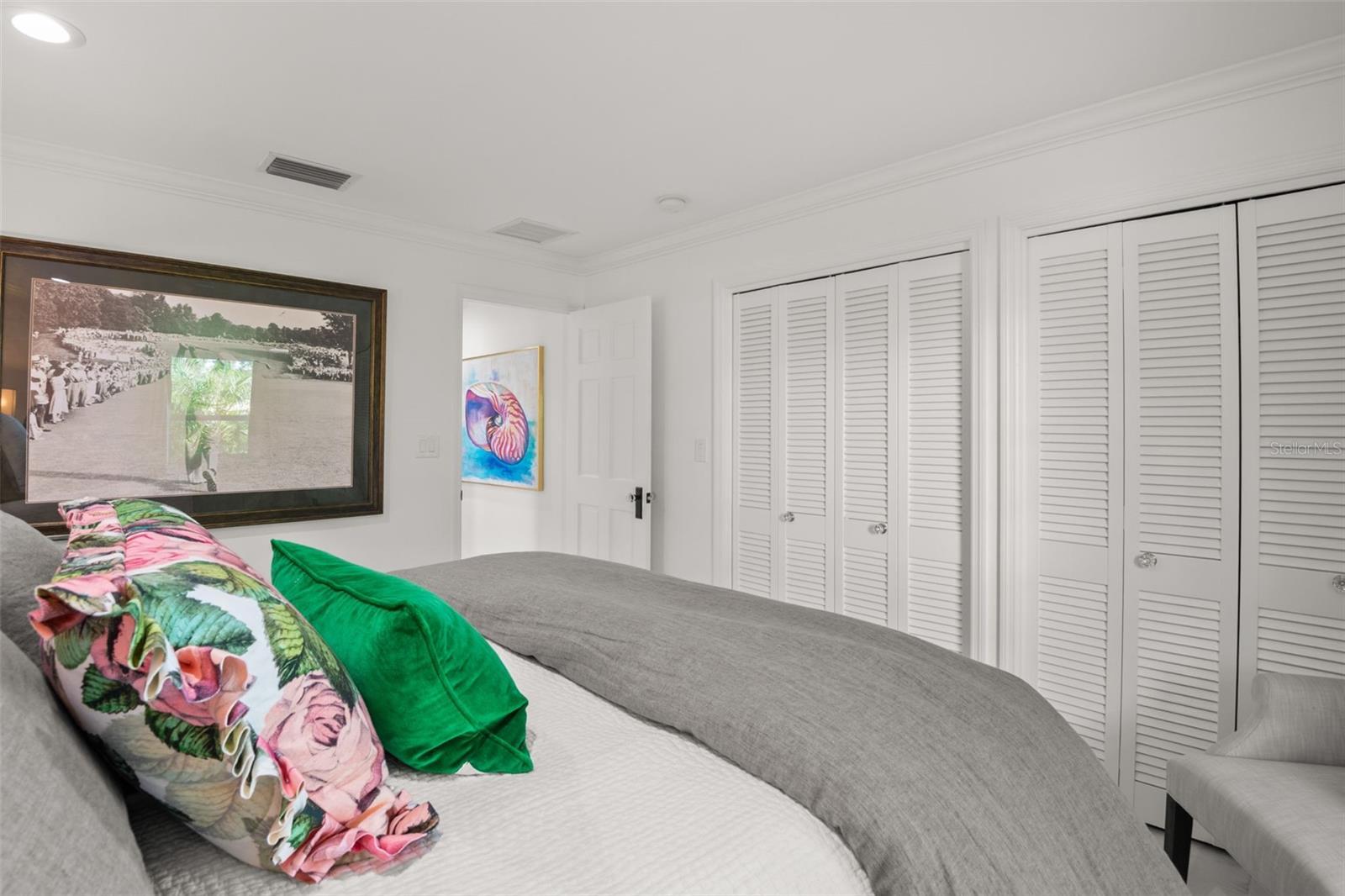 - Built-in Features, Crown Molding, Pest Guard System, Primary Bedroom Main Floor, Solid Surface Counters, Split Bedroom, Thermostat, Window Treatments