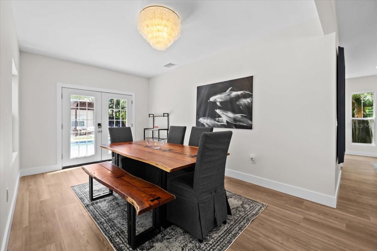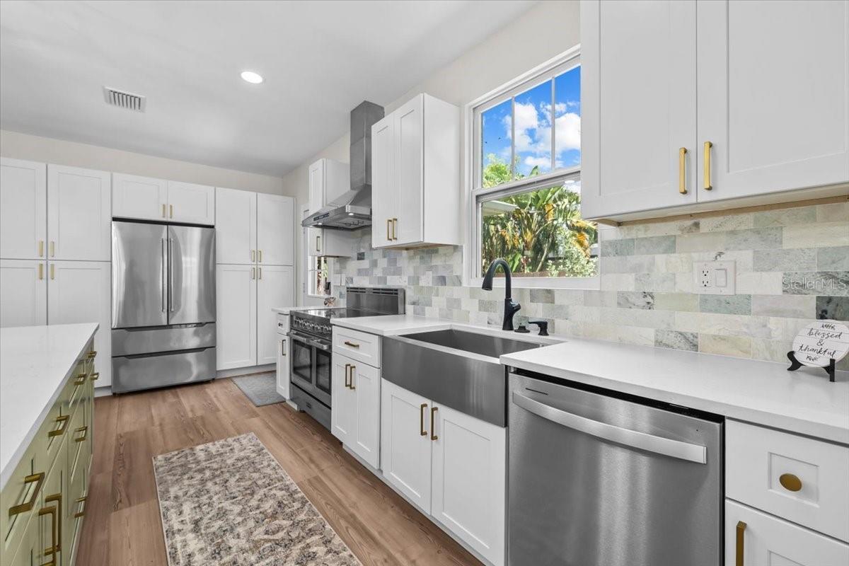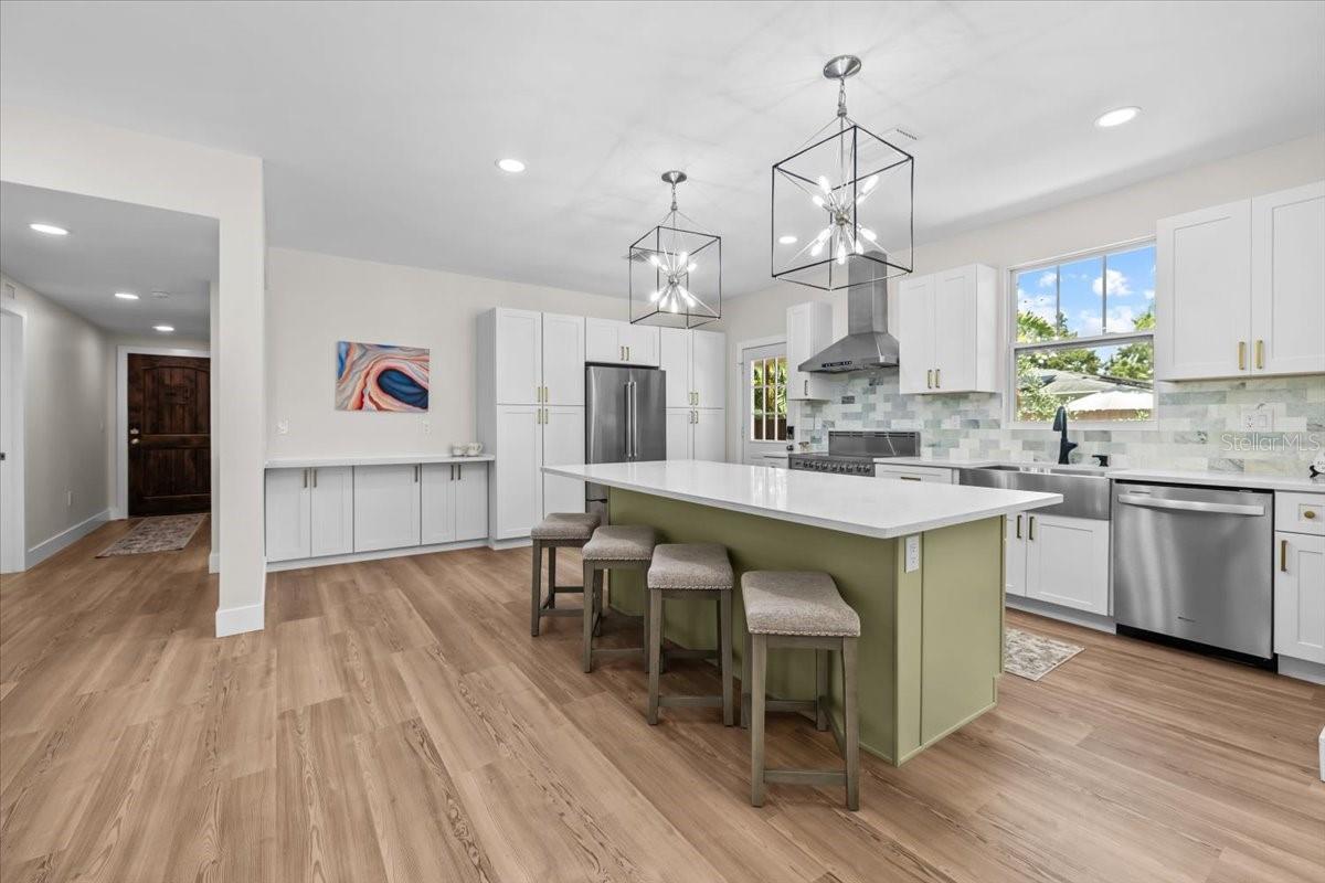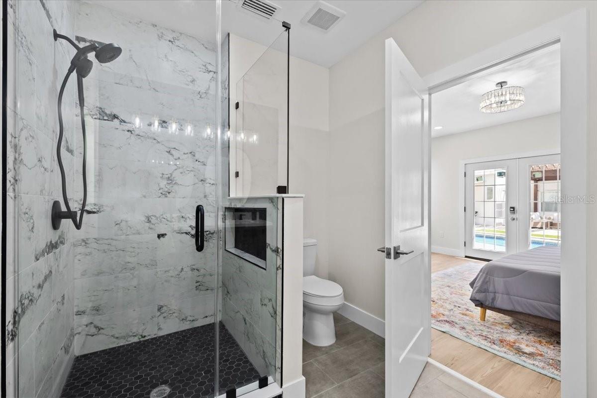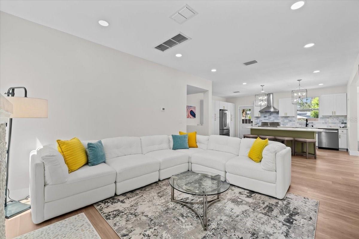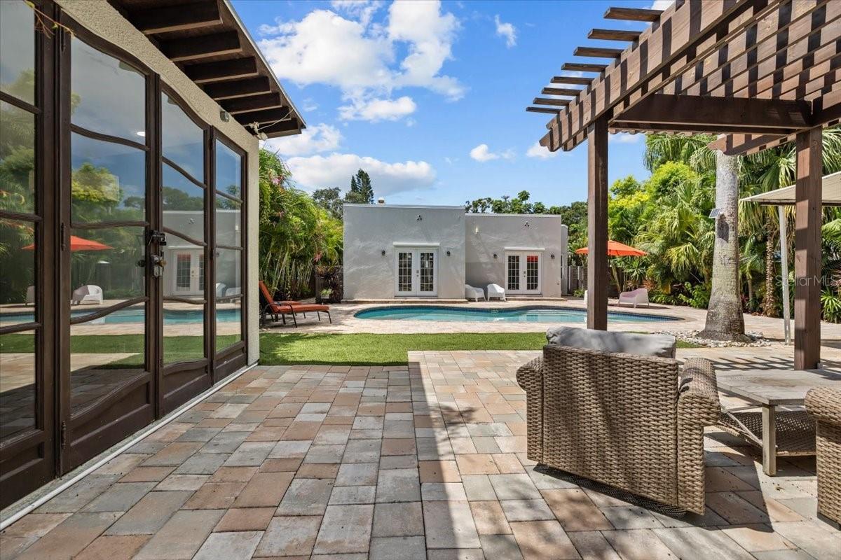 SELLER MOTIVATED, PRICE REDUCTION, & INCOME PRODUCING! Designer Renovation + Income Producing Guest Home in Sought-After Country Club Estates. Private living space RENTING for approx. $2,515/mo.- perfect for SECONDARY INCOME, guests, or multigenerational setup. Blocks from Clearwater Country Club, the estate blends modern luxury, historic charm, & income potential. Property consists of Main Home-3 bed, 2 bath Spanish/Mediterranean retreat, Detached 1 bed, 1 bath ADU, Bonus studio structure, and extra pool 1/2 bath. NO FLOOD INSURANCE required & is in NON EVAC ZONE. From the street, tasteful curb appeal sets the tone, & inside the quality of a fully permitted renovation is undeniable. Engineer plans showcase meticulous care behind every detail. Major upgrades: reinforced stem walls/foundation, floor structure w/ joists/beams/footers, drywall, interior doors/trim/baseboards, updated sewer/plumbing, electrical panel/wiring, electric tankless water heater, & HVAC ductwork. HVAC system (approx. 2021) includes a fan motor & UV light (2025 for air sanitation/mold prevention). 2022 roof w/ warranty & hurricane-rated windows/doors provide lasting peace of mind. Inside, the home exudes a modern coastal vibe, filled w/ natural light, neutral tones, & crisp lines for calm sophistication. Split floor plan offers privacy, while luxury waterproof vinyl floors flow throughout. Home is west facing, w/ main areas on the east side overlooking the backyard, capturing serene morning light & warm evening glow. The heart of the home is the open living area. High ceilings enhance the bright, airy design. A beautiful stone fireplace adds warmth, while the layout makes entertaining effortless. Chef’s kitchen boasts soft-close cabinetry, elegant quartz countertops, oversized island w/ breakfast bar, stainless apron sink, 36" electric Verona range w/ dual ovens, a Verona French door refrigerator w/ dual freezer drawers, built-in side desk/bar, & striking pendant lighting. The spacious primary suite features French doors to the backyard, sparkling chandelier, & vast 5'x12' walk-in closet ready for custom organization. Its ensuite bath showcases stylish tile, dual vanity, modern lighting, & a walk-in shower. Two add'l bedrooms share an updated guest bath w/ tub/shower combo, fresh tile, & contemporary fixtures. Detached guest house is equally impressive w/ high ceilings, modern finishes, full kitchen, dining area, energy-efficient tile flooring, spacious bath w/ walk-in shower, & a large bedroom w/ French doors overlooking the backyard entertaining firepit. Designed for privacy/comfort, this ADU offers flexibility & strong income potential. An air-conditioned detached bonus room adds more versatility. Adorned w/ bold, artistic 100-yr-old Italian doors, it currently serves as a gym & could function as an office, art studio, or meditation retreat. The grounds are a private oasis w/ lush tropical landscaping, many lounge areas, a convenient half bath/storage room, & a heated/cooled saltwater pool for your enjoyment. Pavered patio & low-maintenance artificial turf keep upkeep minimal. Add'l upgrades: insulated subfloor w/ vapor barrier, foam wall insulation, pool heater/cooler (3-yr warranty), 2025 saltwater system power center, etc. Located near Pinellas Trail & Clearwater Beach, downtown Clearwater, Coachman Park, Dunedin, shopping, & restaurants, home offers unmatched quality, thoughtful design, & the rare ability to live, relax, & EARN- all in one remarkable home!