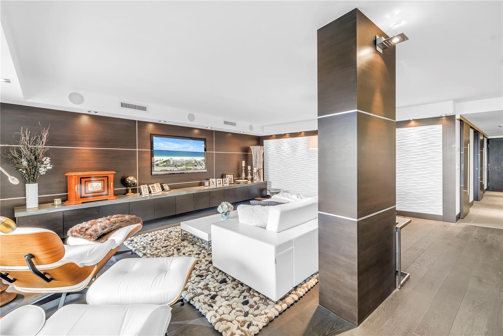 How do you make one of the most stunning beachfront condos even better? A new price adjustment makes this exceptional residence a must-see to truly appreciate. This one-of-a-kind second-level Gulf-front home at the desirable Lido Condominiums has been completely reimagined with the finest materials, finishes, and craftsmanship. Designed by acclaimed Toronto-based designer Conner Braemer and executed by award-winning contractor Kevin McClure, the transformation converted a 1,692-square-foot three-bedroom, two-bath residence into an expansive two-bedroom, two-bath layout, thoughtfully placing all living areas along the Gulf-facing side to maximize breathtaking views. Upon entry, custom solid birch and white oak barn doors immediately set the tone for the home’s meticulous attention to detail. Flooring includes Petra Piasentina tile in the foyer and baths, complemented by dark smoked white oak imported from Germany throughout the main living spaces. The gourmet kitchen showcases Blizzard Caesarstone on the perimeter and island, with striking Raven Caesarstone at the high bar and built-in desk. Premium lighting design features recessed fixtures, soffit illumination, and MDF wave accent panels, creating a warm, modern ambiance throughout. The kitchen is fully equipped with top-of-the-line appliances, including a Thermador oven and induction cooktop, SubZero refrigerator, wine refrigerator, refrigerated drawer, and roll-out pantries. Bathrooms feature floating vanities with under-cabinet lighting, continuing the home’s sleek and sophisticated design. Additional features include motorized roller shades in the living area, motorized hurricane shutters, newer sliders and windows, and a central vacuum system. Significant 2025 upgrades include a new HVAC system, washer and dryer, and a hot water heater with remote-controlled access. Unit 113 includes one assigned under-building parking space, along with ample guest and open parking. Lido Condominiums offers outstanding amenities, including a new roof (2025), recently updated pool and spa (2023), fitness room, tennis court, community room, and on-site maintenance staff available seven days a week. Ideally located on St. Pete Beach, this premier community is close to shopping, dining, and local conveniences, just 7 minutes to I-275, 12 minutes to vibrant downtown St. Petersburg, and approximately 35 minutes to Tampa International Airport or Clearwater/St. Pete–Clearwater International Airport. This Gulf-front residence seamlessly blends award-winning design, luxury finishes, and breathtaking views—now offered at an exceptional value.