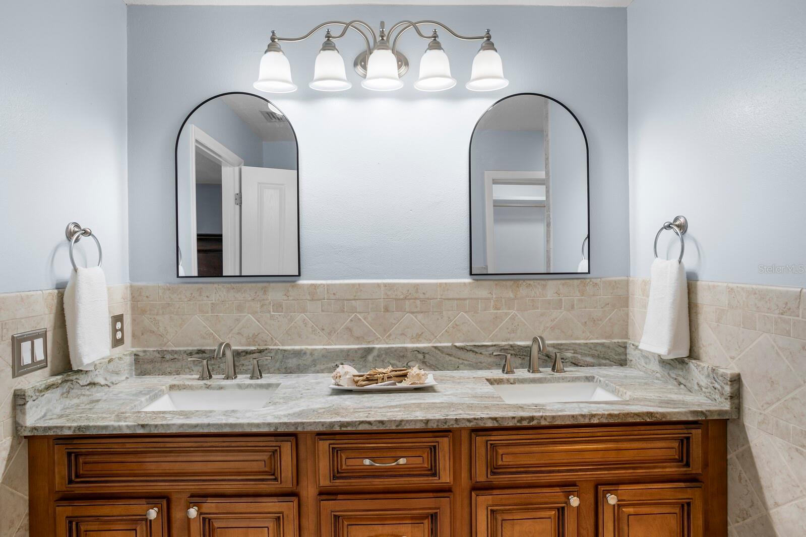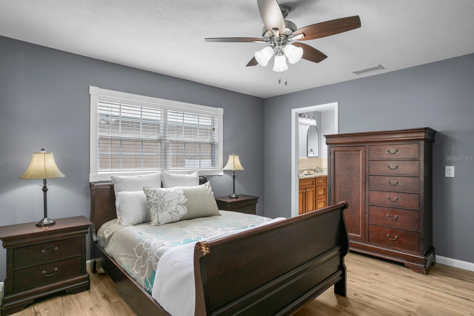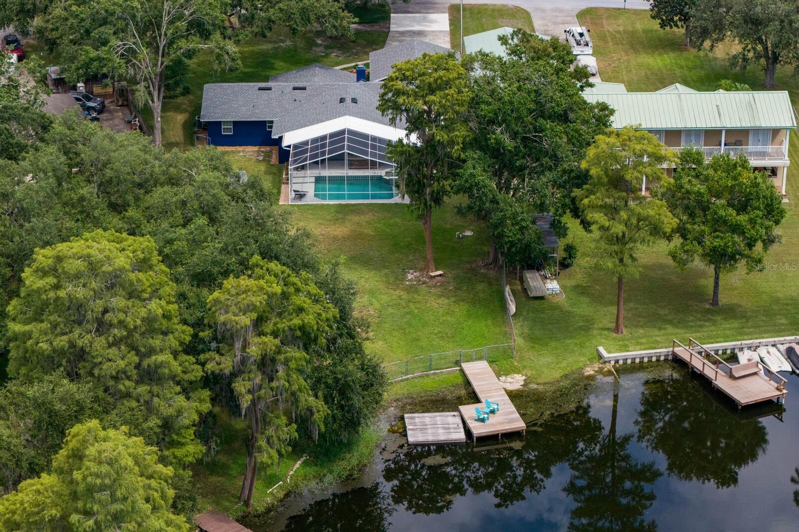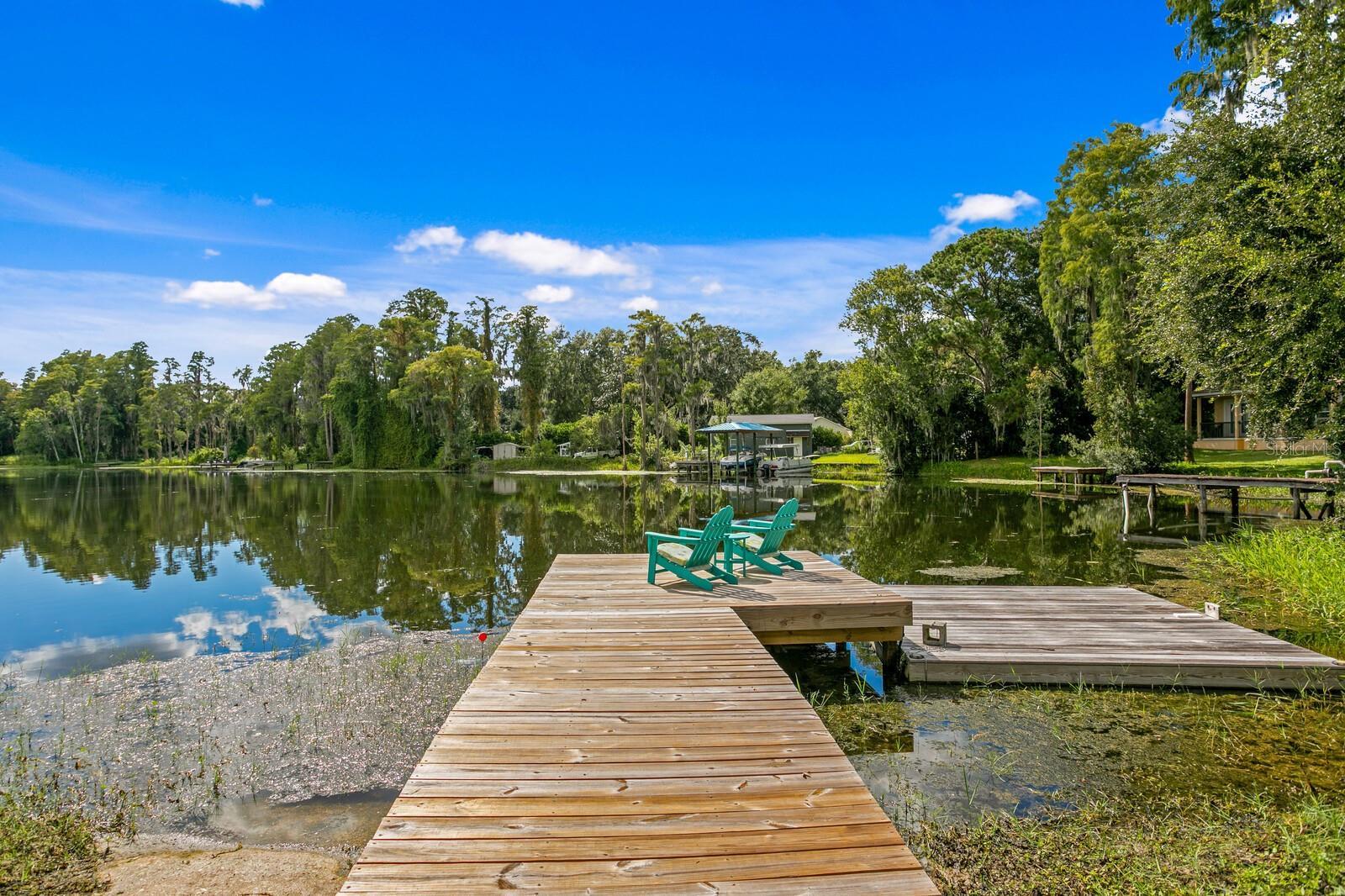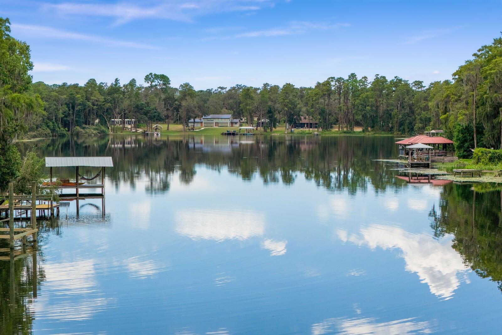 PRICE IMPROVEMENT! Get ready to enjoy the Odessa lake life in your beautifully updated pool home. Situated under mature Oak trees and on a tranquil, nearly half-acre lakefront, non-flood zone lot, this home is zoned for one of Hillsborough County’s premier school districts – all A-rated schools (Hammond/Martinez/Steinbrenner)! With nearly, 2,300sqft of living space, this home features 4 bedrooms, 2 baths and an oversized 2-car carport. With no HOA or CDD restrictions, you can bring all of your toys and enjoy your large, lakefront lot. As you arrive, you’ll find a large front yard and two majestic Oak trees that perfectly frame your newly painted ranch home. A brand-new dimensional shingle roof was just installed, along with a new front door. There’s plenty of parking on the long driveway along with additional storage under carport that can be easily converted into a 2-car garage. Upon entering, you’ll find hardwood floors and an open-concept floor plan with a combined living and dining room. The living room features a beautiful wood-burning fireplace flanked by custom built-in, lighted shelves. The dining room offers plenty of space for sharing meals with family and friends. Beyond the living room is the kitchen that includes thick granite counters, a complete set of updated Kitchen-Aid stainless appliances and loads of cabinets for storage. The split-bedroom floor plan provides privacy for the residents. The primary suite includes luxury vinyl plank floors, a ceiling fan, large primary bath and walk-in closet with custom shelving. The primary bath includes a new vanity, granite counters, dual sinks, updated fixtures, an oversized garden tub and separate shower. On the opposite side of the home, the 2nd and 3rd bedrooms are spacious and share an updated full bath, complete with granite counters, dual sinks and a tub/shower combo. A spacious utility room offers cabinet storage and a tankless water heater for unlimited hot water. Beyond the kitchen is a large family room with dual French doors that open to your private pool. Adjacent is the 4th bedroom that also has French doors that open to the pool and it would make for a perfect home office space. As you step outside, you’ll find a large, freshly re-screened, 1,000sqft enclosed lanai. A freshly updated pool deck sparkles in the Florida sun and you’ll enjoy preparing meals in your outdoor kitchen with granite counters. The private pool includes a gas-heated spillover spa. Step outside to your large, fully-fenced backyard that includes a separate storage shed and lakeside fire pit. The private dock has been recently replaced and includes a separate detachable floating dock that you can bring out to the middle of the 18-acre Lake Wood for boating, swimming and fishing fun. Don’t wait to make this your new lakefront oasis today!