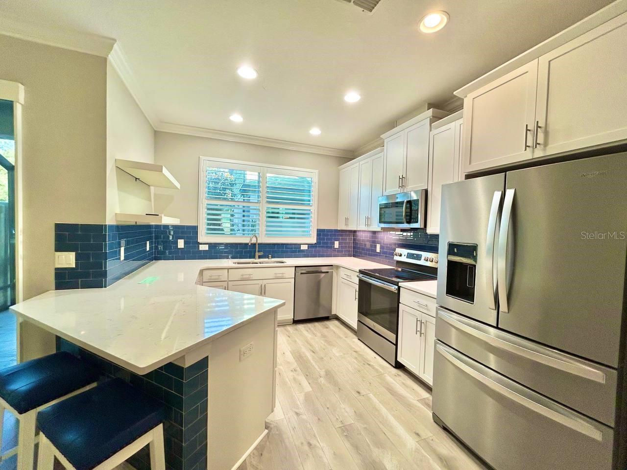 Welcome to this beautifully appointed 3-bedroom, 2.5-bath townhouse with a one-car garage, located in the highly sought-after gated community of Belleair Grove. This spacious and modern home combines comfort, style, and convenience in one of Clearwater’s most desirable locations. Step inside to discover custom lighting throughout, setting the tone for a warm and inviting ambiance. The chef’s kitchen is a true standout, featuring stainless steel appliances, stone countertops, a custom tile backsplash, and ample cabinetry—perfect for cooking, entertaining, or simply enjoying a quiet meal at home. Upstairs, each bedroom is outfitted with custom California closets for optimal storage and organization. The primary suite serves as a serene retreat with a walk-in closet and a luxurious en-suite bathroom boasting dual sinks, a long vanity, and a spacious walk-in shower. Enjoy laminate flooring in the main living areas and plush carpet in the bedrooms for added comfort. Step outside to a screened-in lanai, ideal for relaxing, grilling, or entertaining guests in your private outdoor space. Please note: this property is offered unfurnished. Belleair Grove is a gated community offering residents access to a community pool and is ideally located near Clearwater’s top beaches, major highways, restaurants, shopping, and vibrant entertainment options. In addition to the advertised base rent, all residents are enrolled in the Resident Benefits Package (RBP) for $50.00/month, which includes HVAC air filter delivery, credit building to help boost your credit score with timely rent payments, utility concierge service for easy utility connections during move-in, and much more! More details provided upon application. Sewer, water, trash, and lawn care are included in rent. Pets welcome (maximum of 2). Vacant and available now!