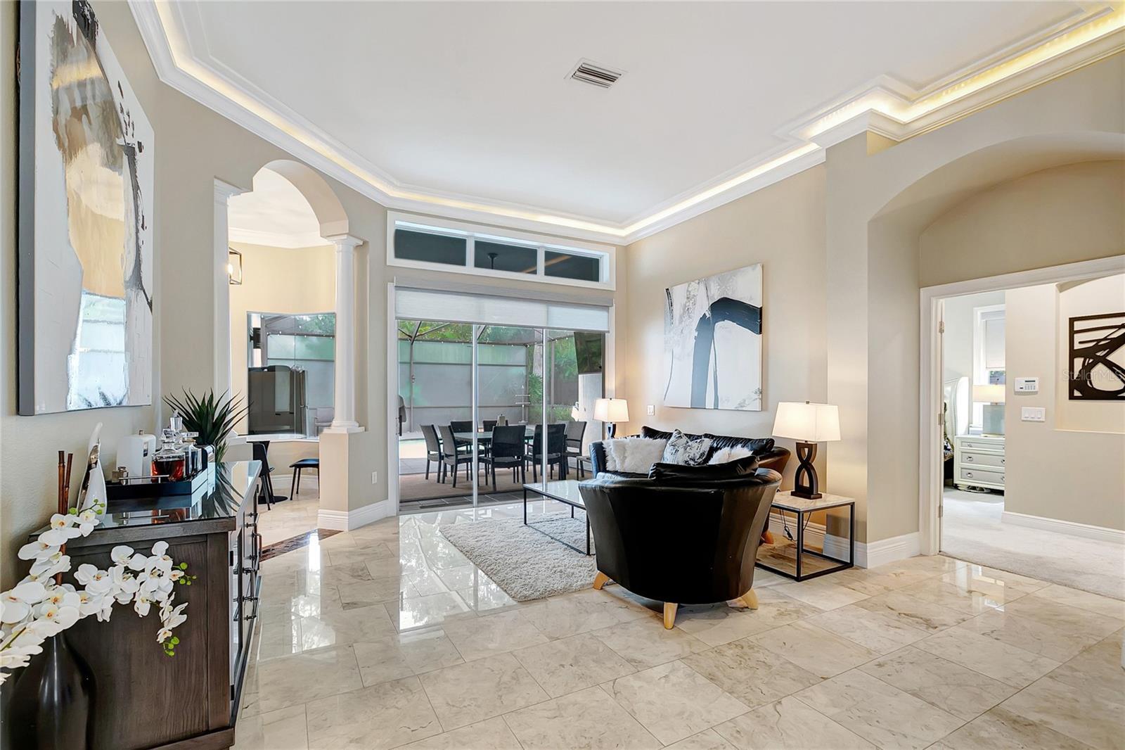 Captivating, Updated, and Move-In Ready — Your Dream Home Awaits in the Gated Community of Riverwoods. This home has STUNNING recent new upgrades with no detail overlooked! Flooded with natural light and designed for effortless living, this bright and airy residence stands out the moment you step inside. With a spacious open layout, thoughtful upgrades, and modern comforts throughout, this 4-bedroom, 3-bath home offers the perfect blend of style, flexibility, and peace of mind. Located in the highly sought-after gated community of Riverwoods, this meticulously maintained home features a versatile split floor plan with a dedicated office and a generous upstairs loft—ideal as a second living area, playroom, media room, or customizable flex space. Recent Upgrades & Exceptional Comfort Enjoy worry-free living with a 3-year-old roof, whole-home Generac generator powered by TECO natural gas, smart thermostat, and energy-efficient tankless water heater. Comfort is enhanced year-round with mini-split systems in both the garage and the primary bedroom. A Reme HALO air purification system (2025) and whole-home water softener elevate air and water quality, bringing an added layer of luxury and wellness to everyday life. Elegant Primary Retreat The spacious primary suite offers a true escape, featuring a fully renovated bathroom with a freestanding soaking tub, large walk-in shower, and refined modern finishes. New carpeting and upgraded lighting throughout the home add to its fresh, contemporary vibe. Chef’s Kitchen & Ideal Entertaining Spaces The well-appointed kitchen includes a gas stove, walk-in pantry, abundant cabinetry, and a cozy dining nook. A formal dining room and additional sitting area provide the perfect backdrop for hosting gatherings or enjoying comfortable day-to-day living. Your Private Outdoor Oasis Step outside to a screened-in saltwater pool surrounded by low-maintenance, modern landscaping. With abundant natural light and a rear property line bordered by lush vegetation, the backyard offers enhanced privacy and serenity. This home effortlessly blends comfort, style, and practicality in a peaceful, secure community. Homes like this don’t come along often—schedule your private showing today! Bonus: Seller’s Preferred Lender is offering a closing cost and pre-paid credit with their financing. Contact us for details!
