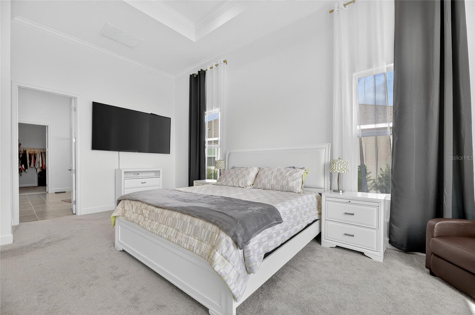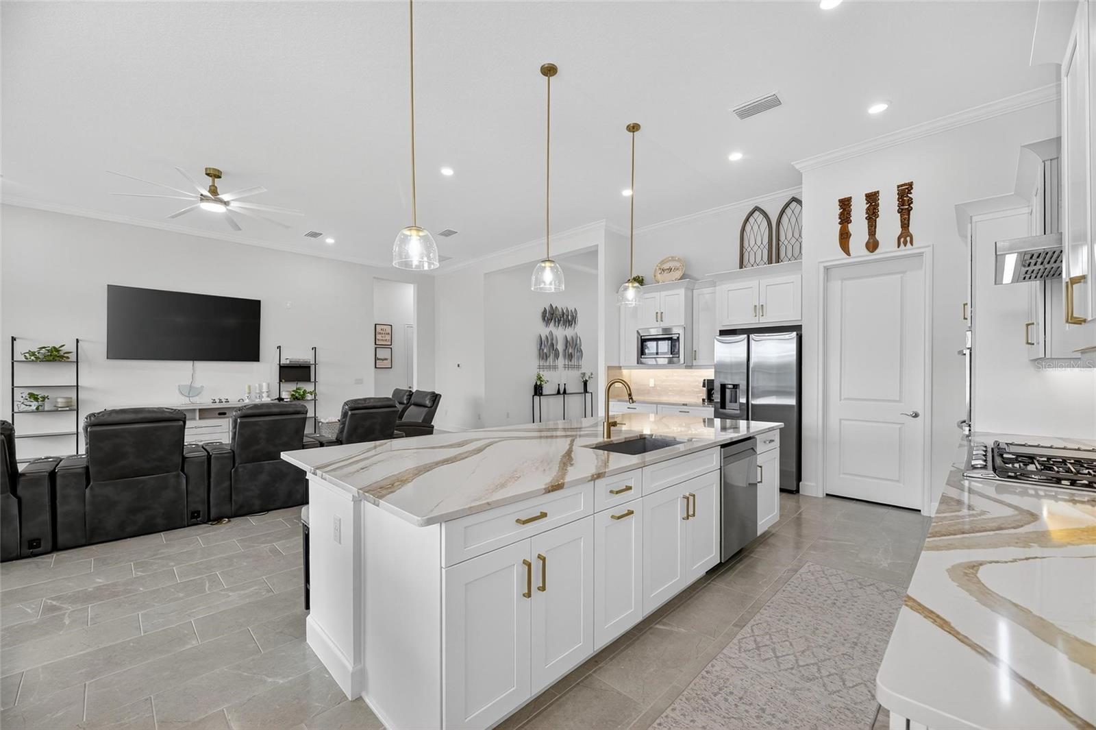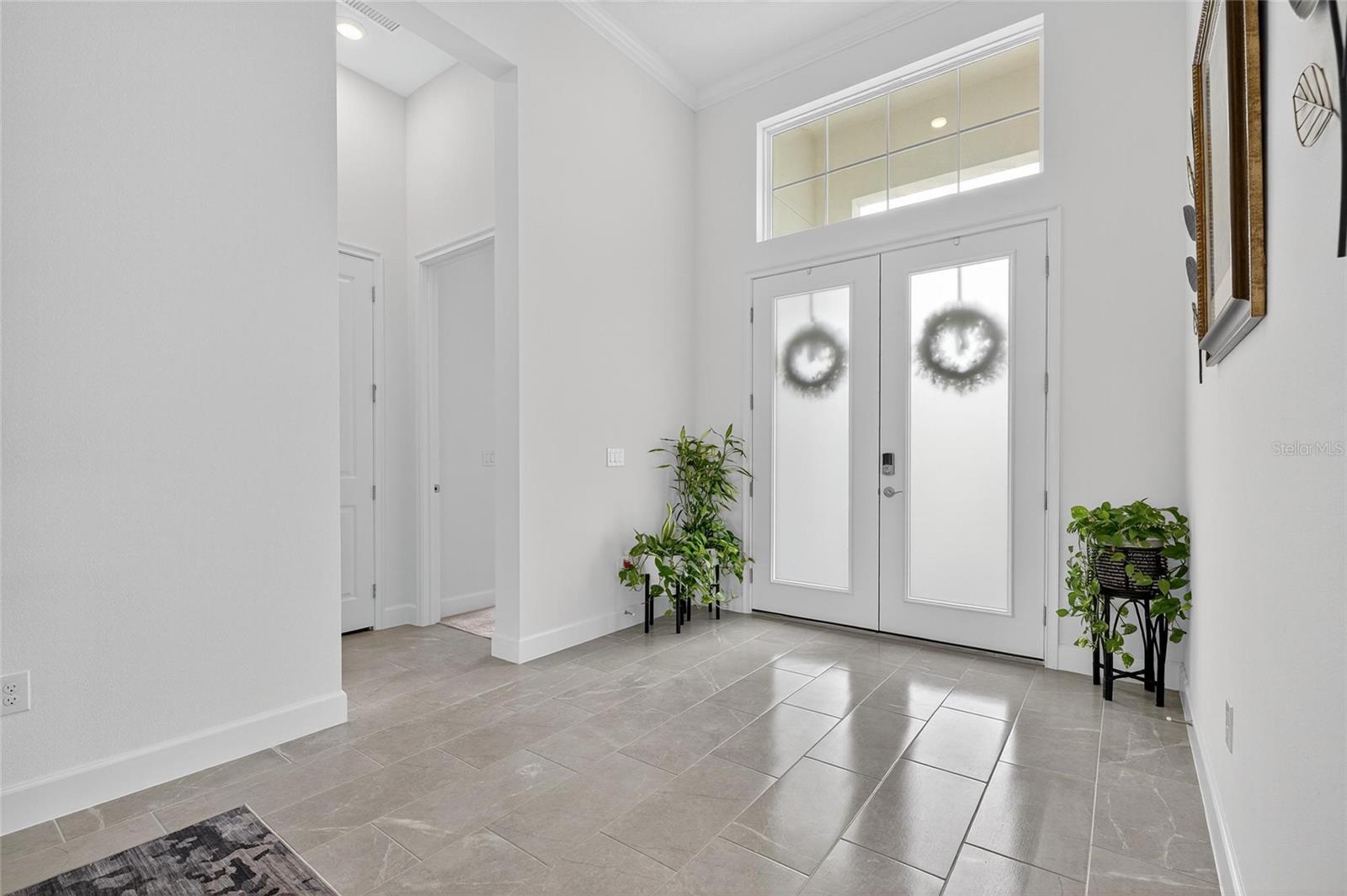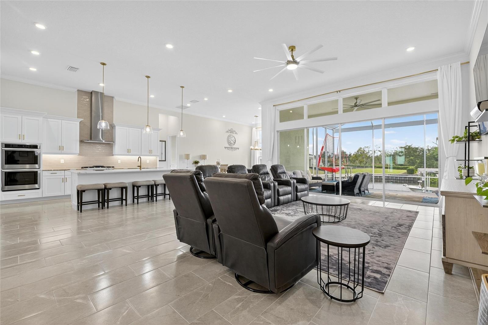 - Ceiling Fans(s), Crown Molding, High Ceilings, Kitchen/Family Room Combo, Open Floorplan, Primary Bedroom Main Floor, Smart Home, Stone Counters, Thermostat, Walk-In Closet(s), Window Treatments