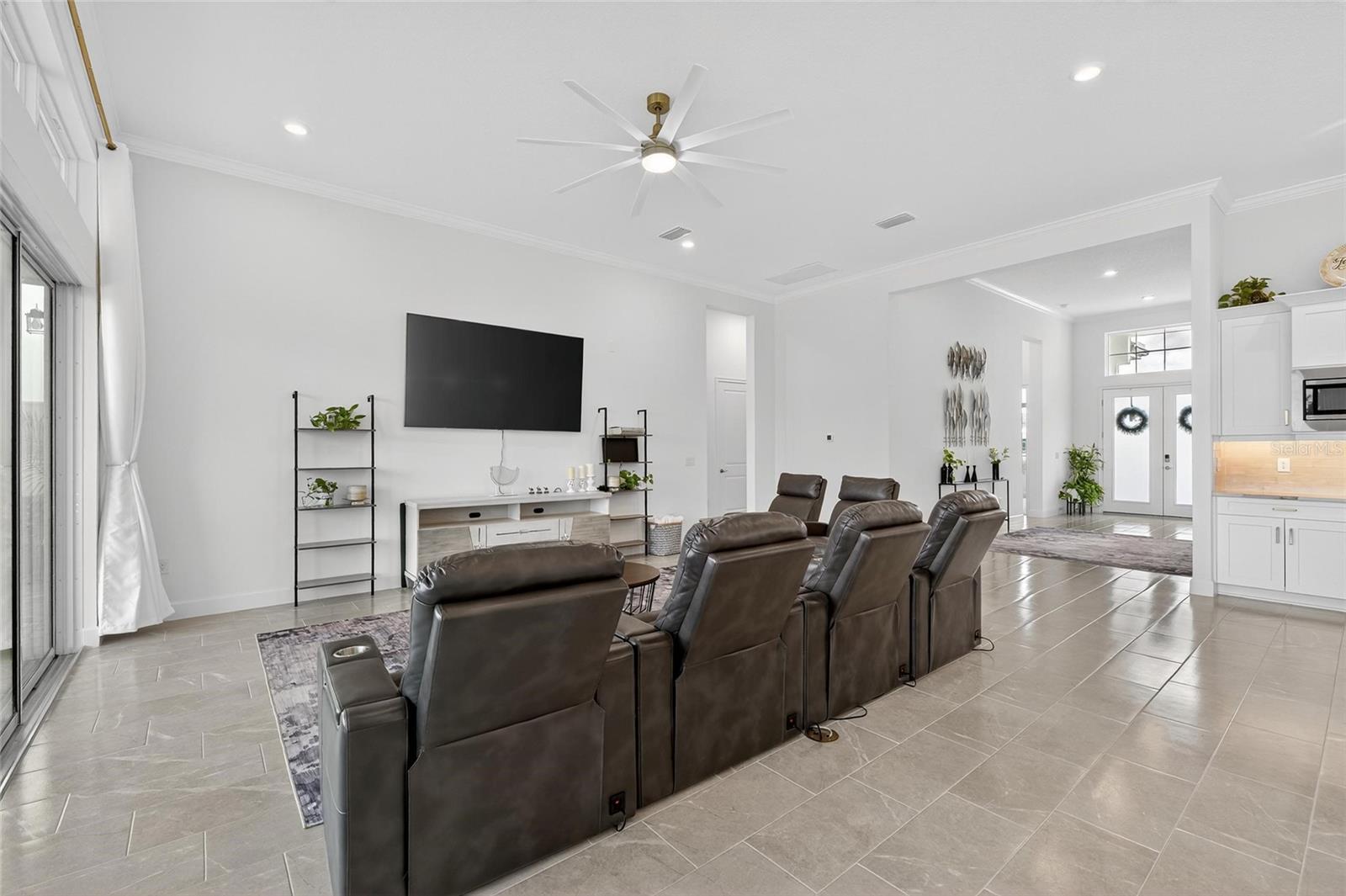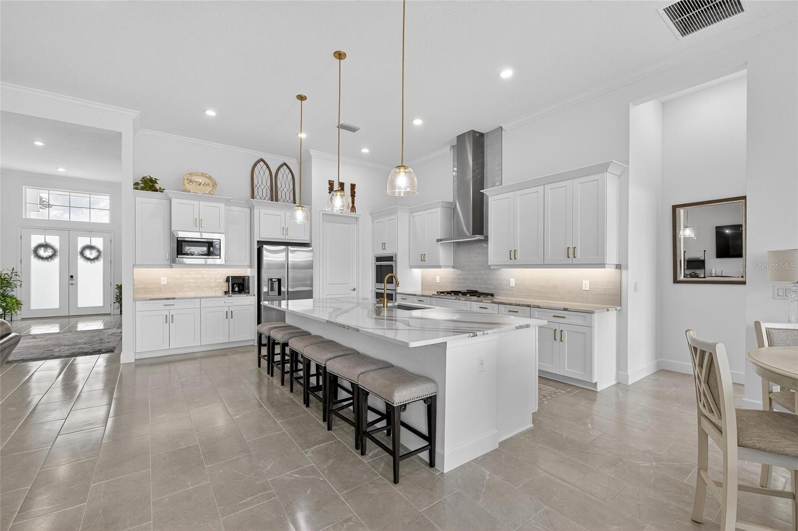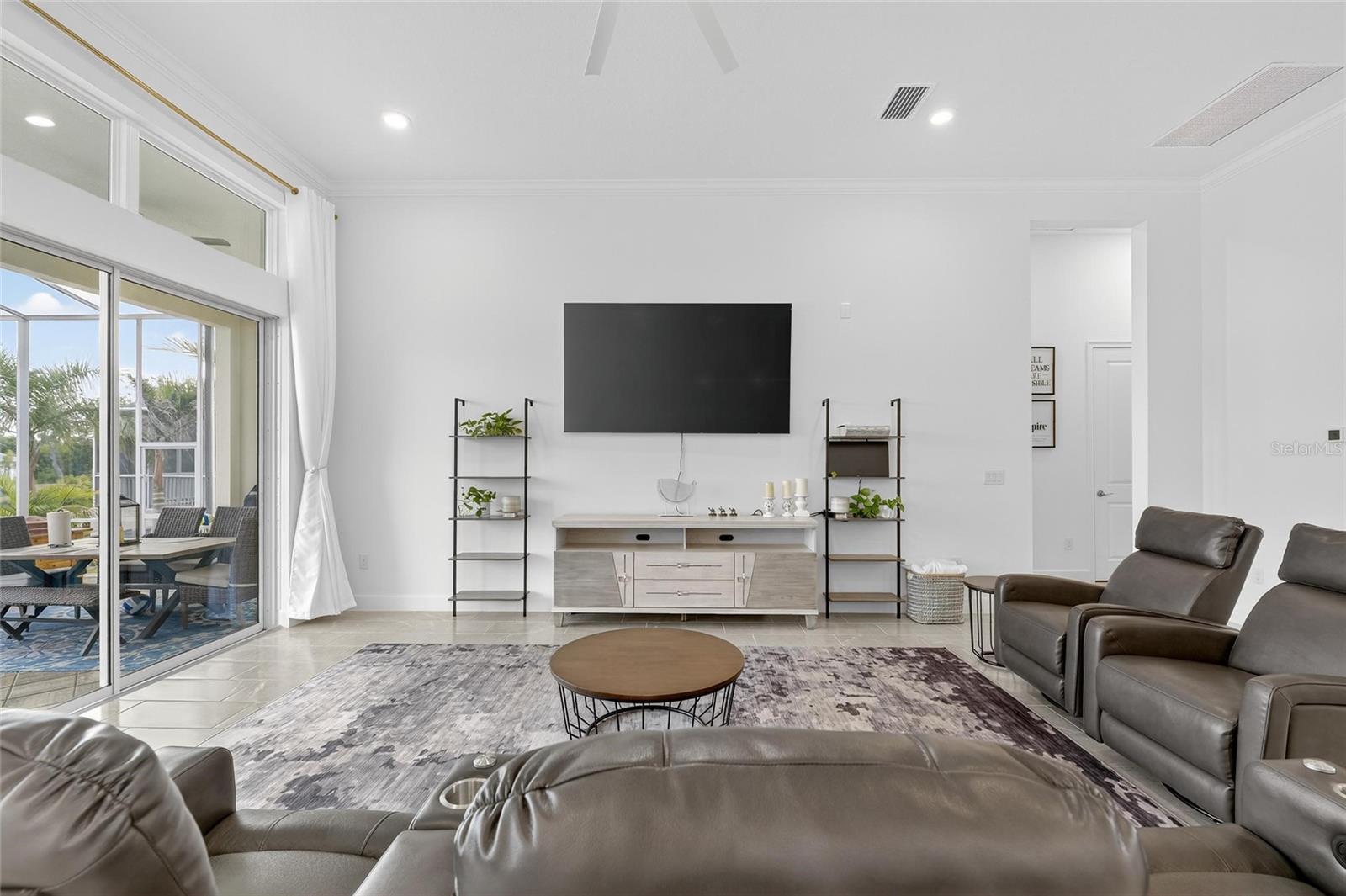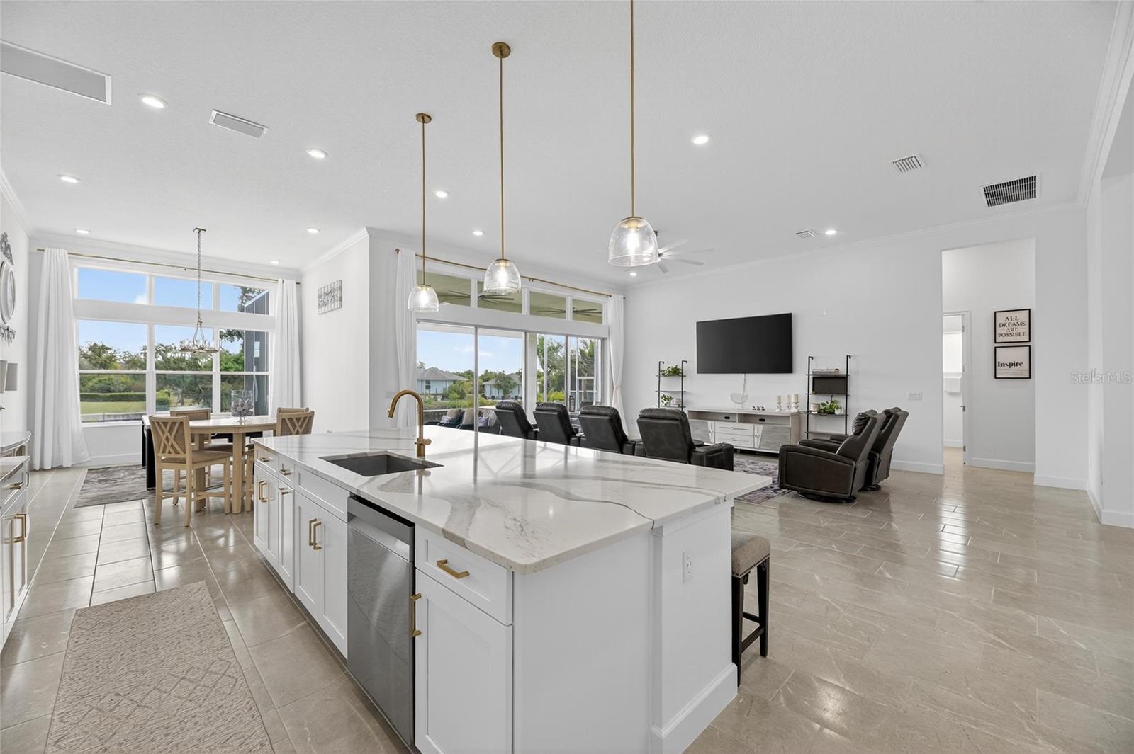 - Ceiling Fans(s), Crown Molding, High Ceilings, Kitchen/Family Room Combo, Open Floorplan, Primary Bedroom Main Floor, Smart Home, Stone Counters, Thermostat, Walk-In Closet(s), Window Treatments