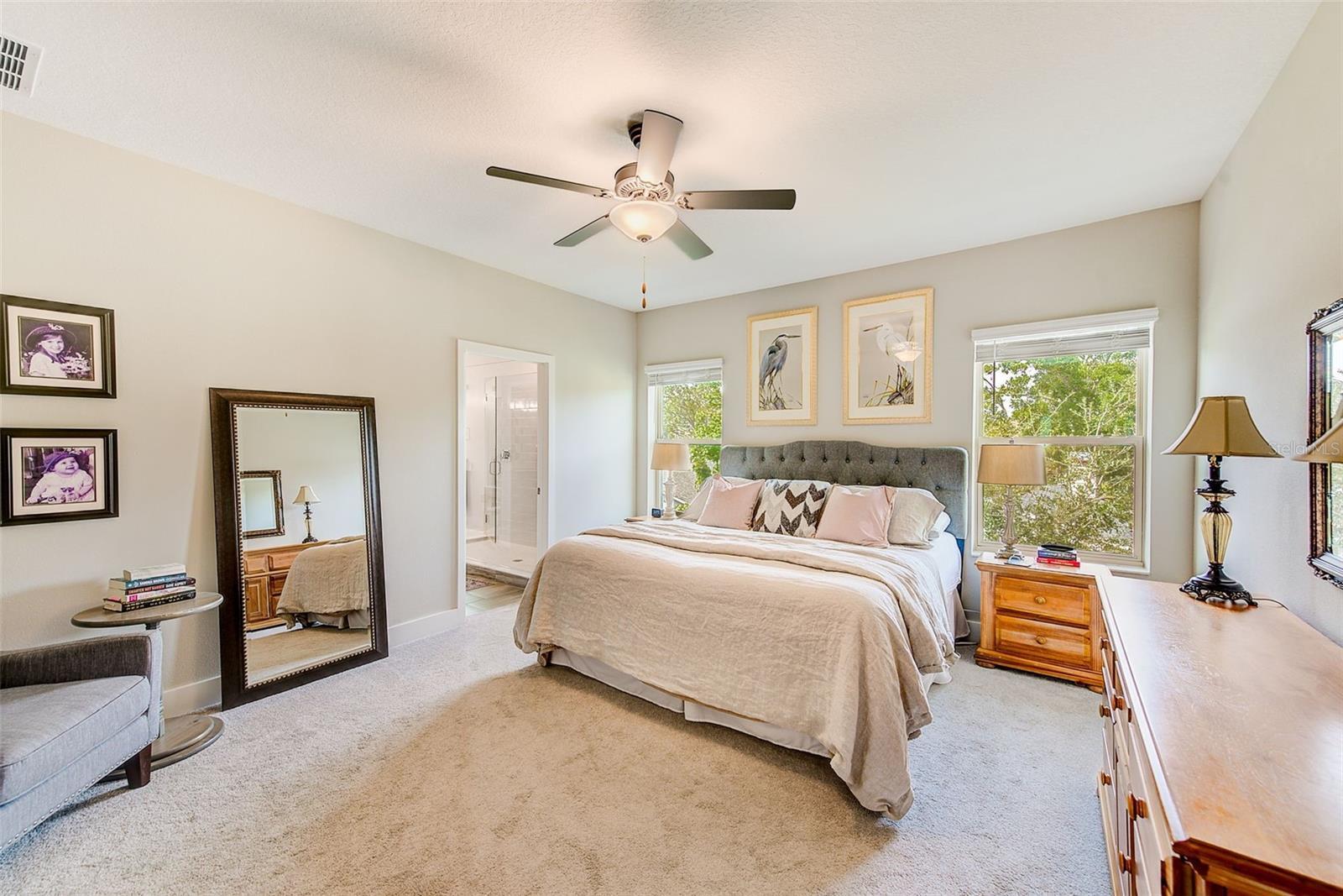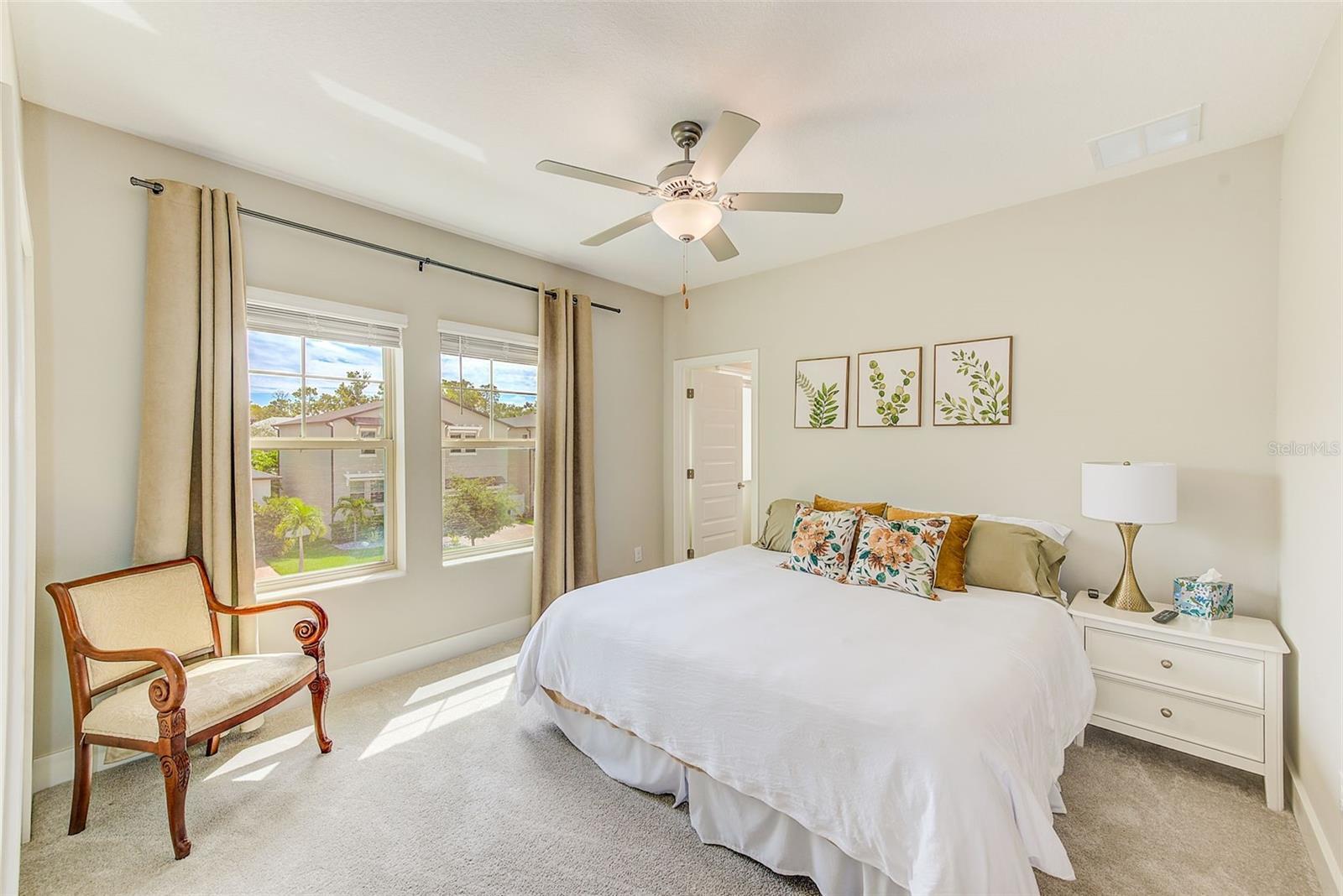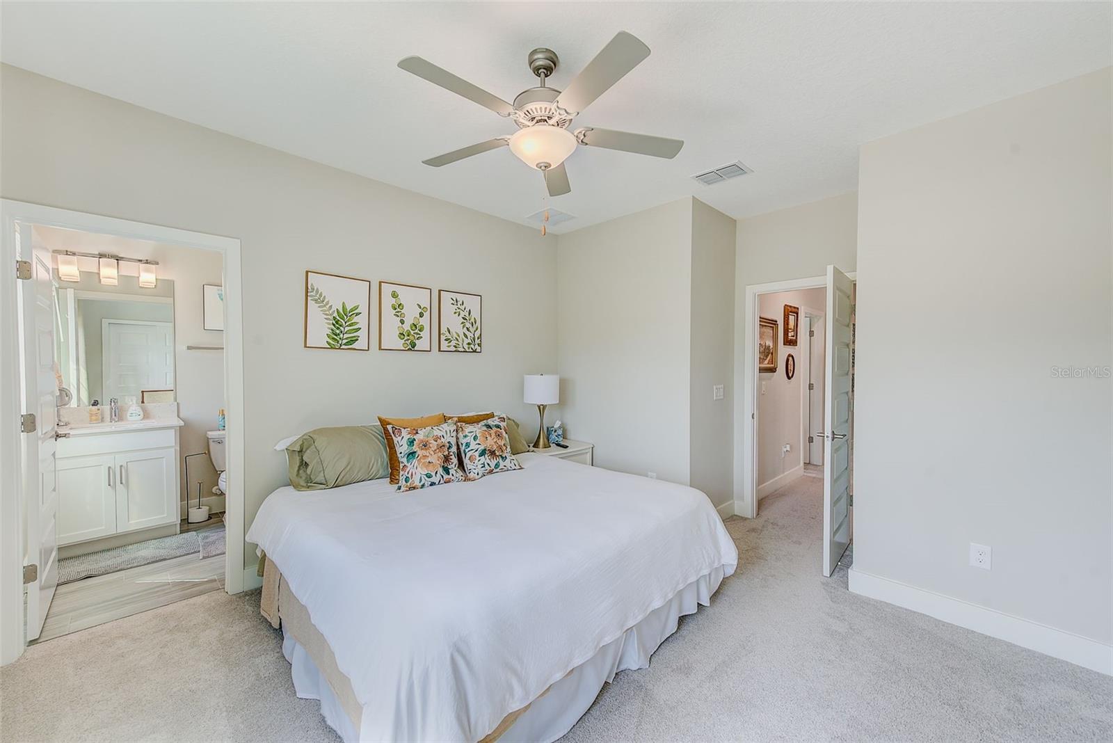- Ceiling Fans(s), High Ceilings, Open Floorplan, Pest Guard System, PrimaryBedroom Upstairs, Solid Surface Counters, Walk-In Closet(s)